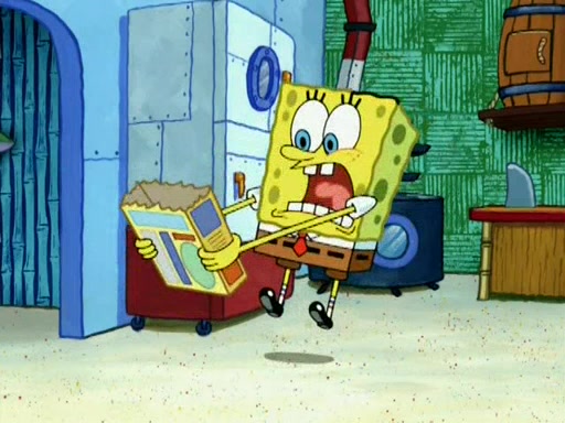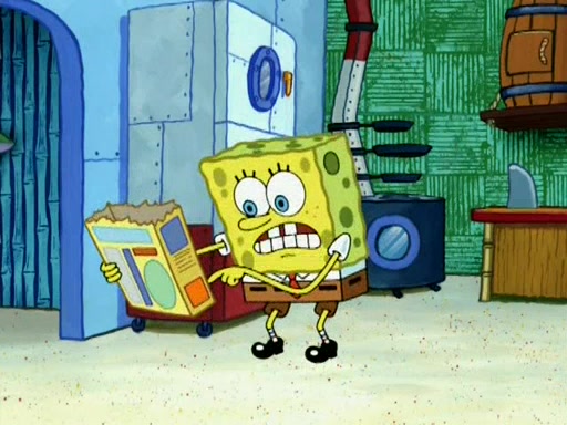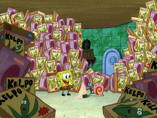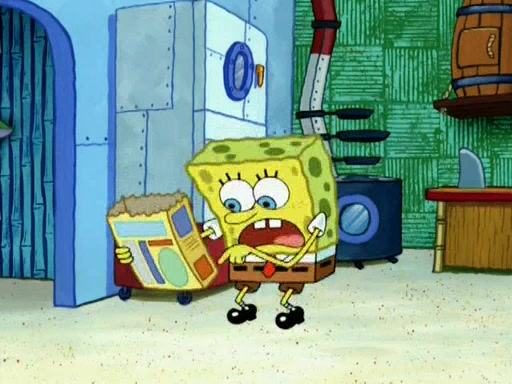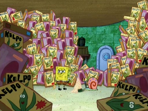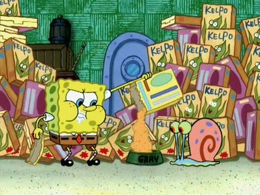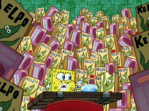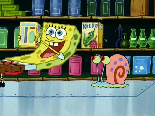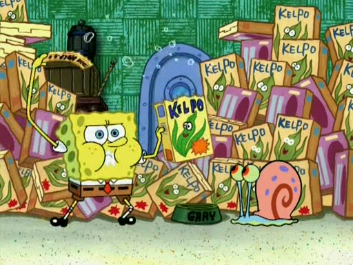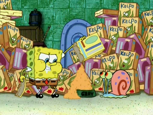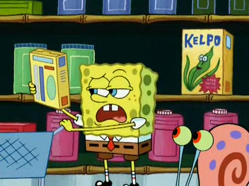 SpongeBob and Gary are shopping at the Barg'N-Mart and SpongeBob sees a Kelpo cereal box that says there is a "free toy inside." SpongeBob then rushes home, eats the cereal, and sees that there is no toy inside. SpongeBob looks at the cereal box more closely and sees it says "offer inside!" Must send in 99 box tops. SpongeBob goes and buys even more cereal boxes. When SpongeBob puts cereal in Gary's food bowl, Gary reminds him to send in the box tops before eating all the cereal. SpongeBob then sends an envelope with the box tops. Now, SpongeBob must wait patiently for the toy to arrive. Patrick also comes nearby and waits with him.