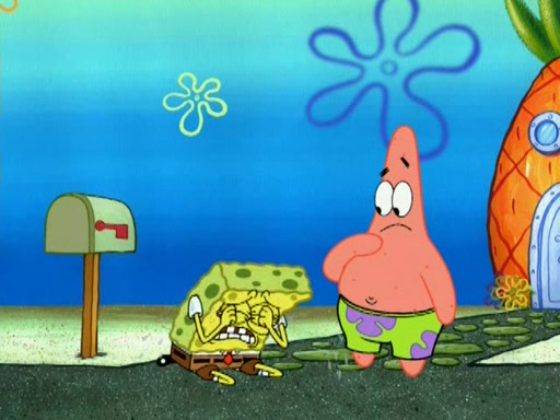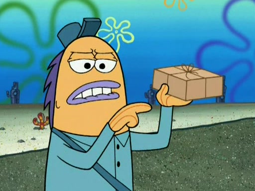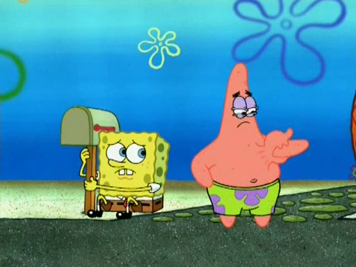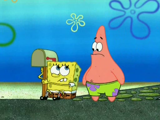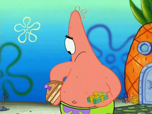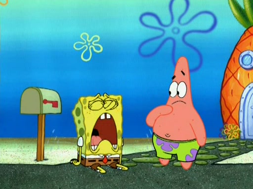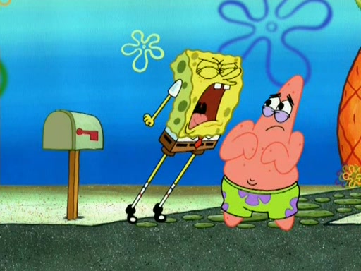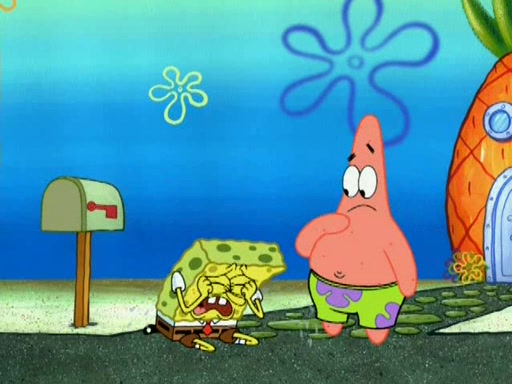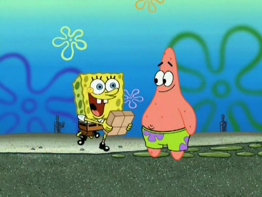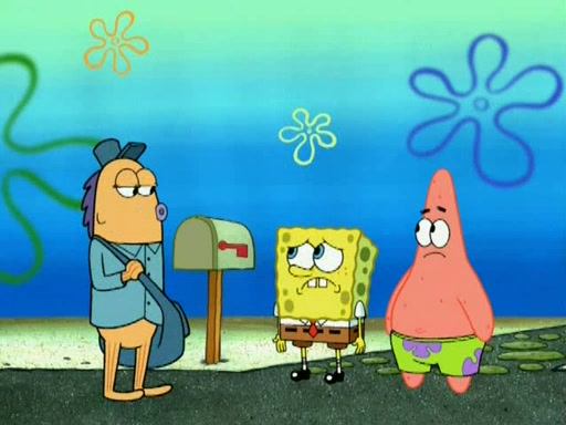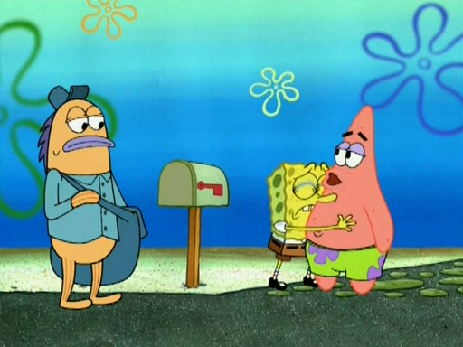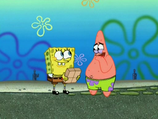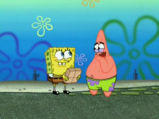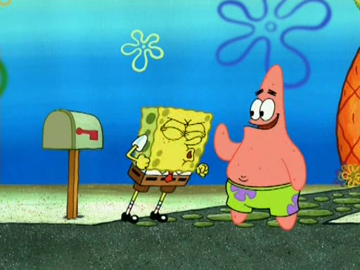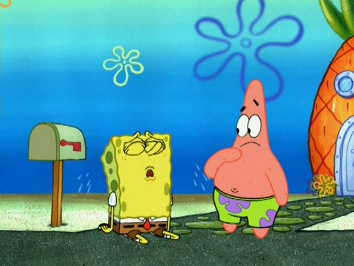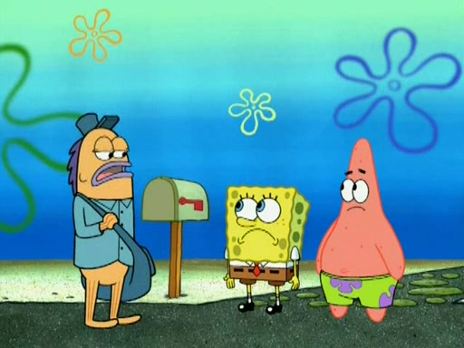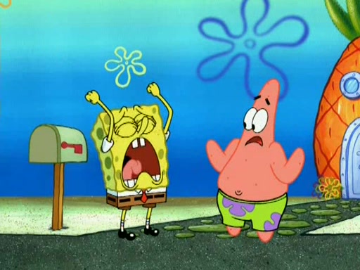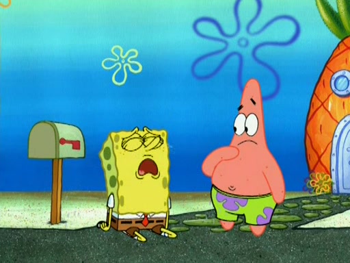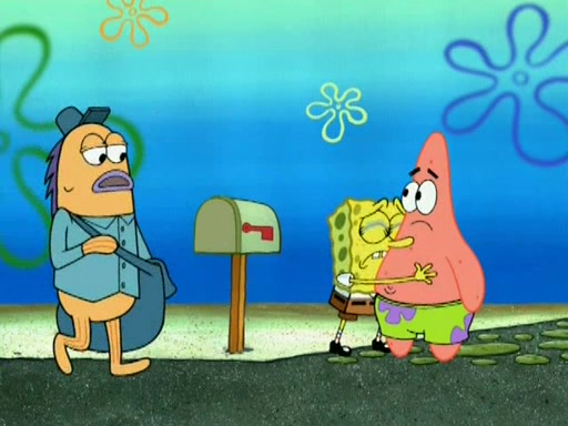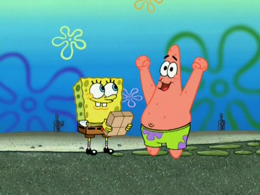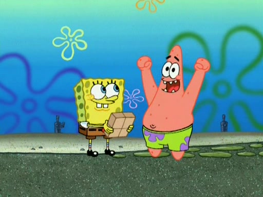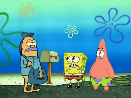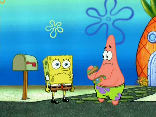 The Mailfish comes by and gives SpongeBob 3 envelopes but no toy. SpongeBob and Patrick must wait even longer now! SpongeBob and Patrick soon become hungry. Patrick suggests that he and SpongeBob go to the Krusty Krab for a Krabby Patty, but SpongeBob is afraid of the mailman coming with the toy when he's gone. So Patrick instead goes to Krusty Krab by himself. He gets frustrated when Sandy and Gary distract him with karate and feeding. Soon, Patrick comes back and tells SpongeBob he missed his surprise birthday party at the Krusty Krab. He also brought SpongeBob a present and some cake. While trying to find the fork, Patrick accidentally eats the cake. Patrick then realizes that the present was the fork. SpongeBob then whines about him being a big jerk. Eventually, the toy arrives and SpongeBob and Patrick become happy and open it. Patrick pushes the button on toy and springs comes out. SpongeBob thinks Patrick "ruined" the toy and furious and sad. Squidward comes home to see them crying. Once he can't take it, he asks what wrong with them. SpongeBob explains to Squidward that he sent in box tops, waited mailman, and Patrick broke the toy. Squidward then shows him that its head, arms, and legs are supposed to spring off, and reattaches them. SpongeBob and Patrick then hug Squidward, asking if there is anything they could for him, and Squidward replies that they should move to another neighborhood.