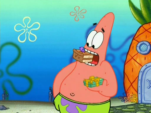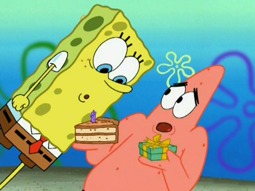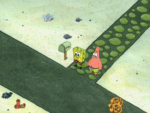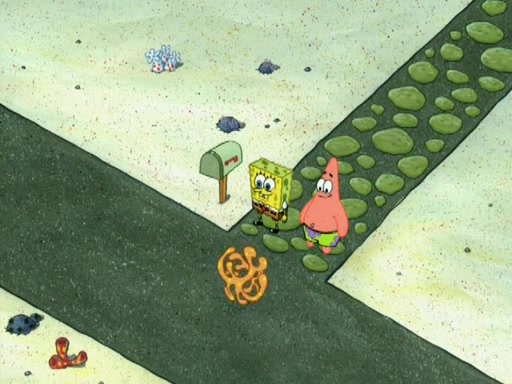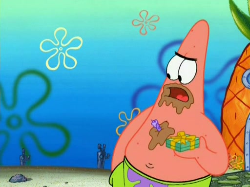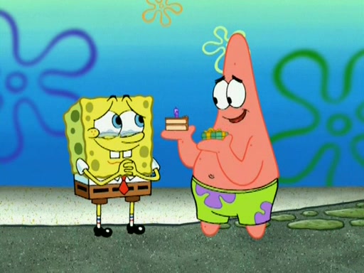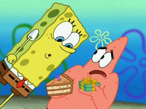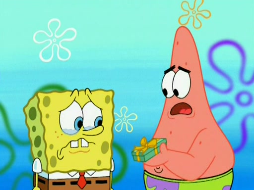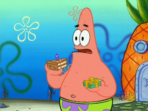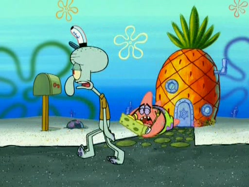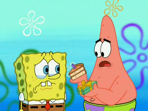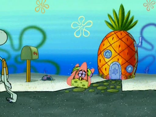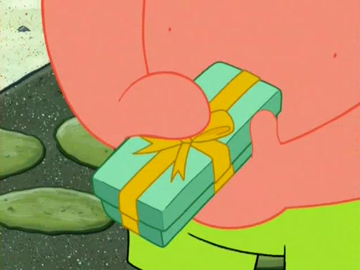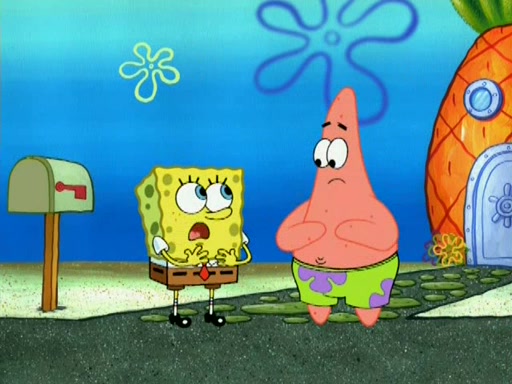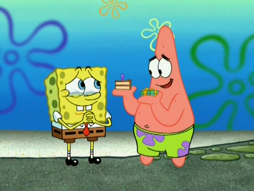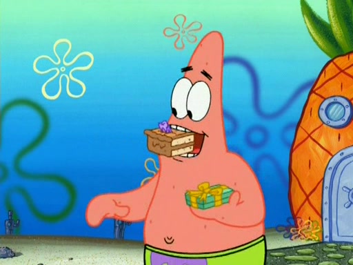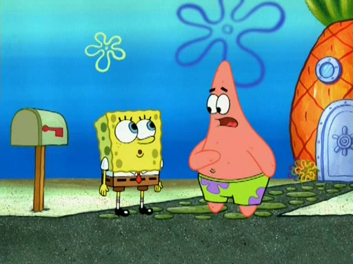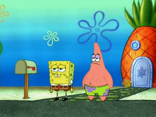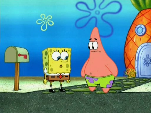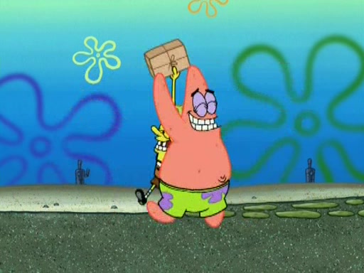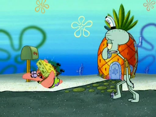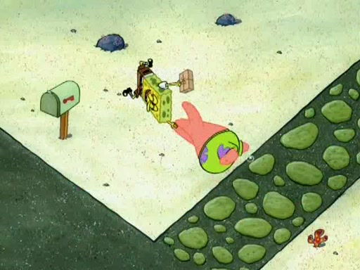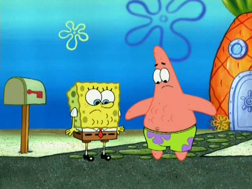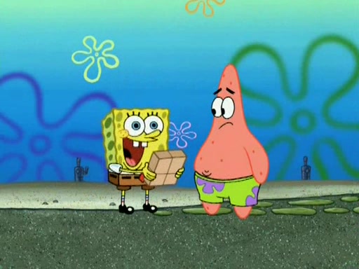 The Mailfish comes by and gives SpongeBob 3 envelopes but no toy. SpongeBob and Patrick must wait even longer now! SpongeBob and Patrick soon become hungry. Patrick suggests that he and SpongeBob go to the Krusty Krab for a Krabby Patty, but SpongeBob is afraid of the mailman coming with the toy when he's gone. So Patrick instead goes to Krusty Krab by himself. He gets frustrated when Sandy and Gary distract him with karate and feeding. Soon, Patrick comes back and tells SpongeBob he missed his surprise birthday party at the Krusty Krab. He also brought SpongeBob a present and some cake. While trying to find the fork, Patrick accidentally eats the cake. Patrick then realizes that the present was the fork. SpongeBob then whines about him being a big jerk. Eventually, the toy arrives and SpongeBob and Patrick become happy and open it. Patrick pushes the button on toy and springs comes out. SpongeBob thinks Patrick "ruined" the toy and furious and sad. Squidward comes home to see them crying. Once he can't take it, he asks what wrong with them. SpongeBob explains to Squidward that he sent in box tops, waited mailman, and Patrick broke the toy. Squidward then shows him that its head, arms, and legs are supposed to spring off, and reattaches them. SpongeBob and Patrick then hug Squidward, asking if there is anything they could for him, and Squidward replies that they should move to another neighborhood.