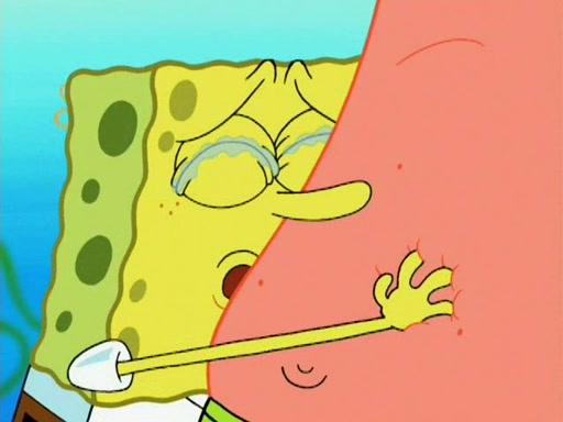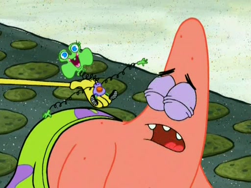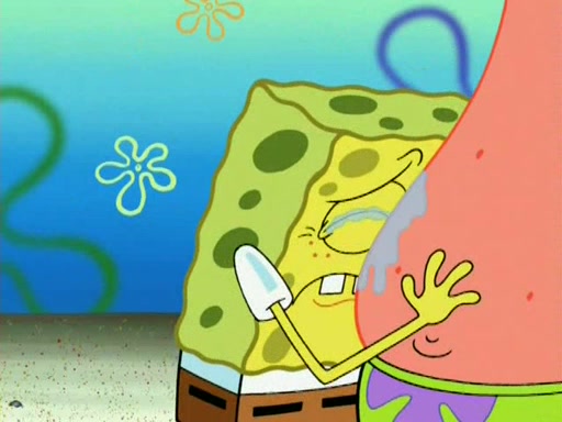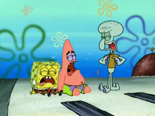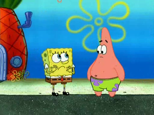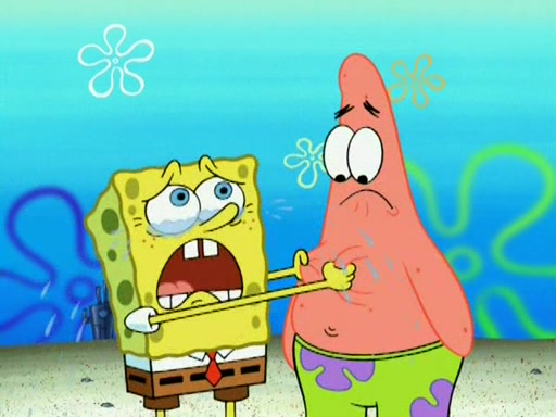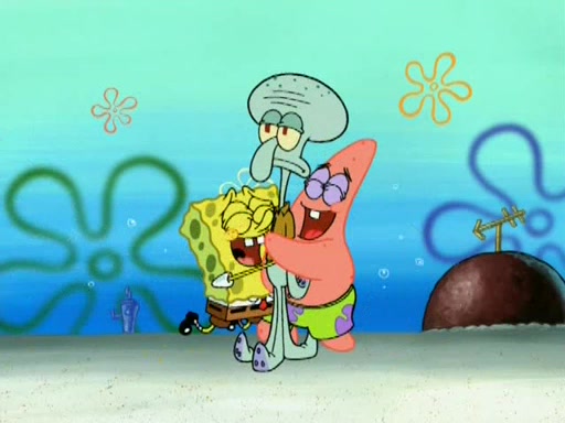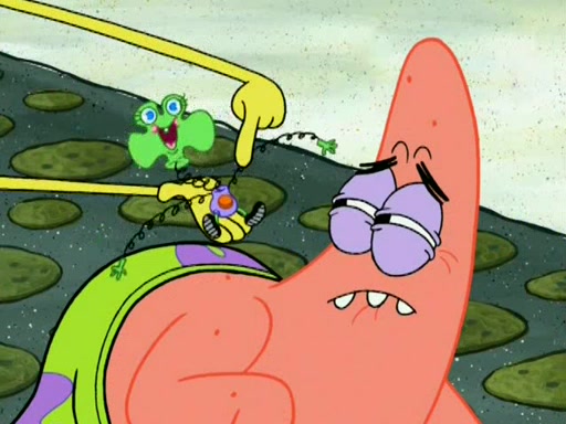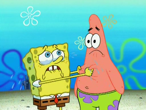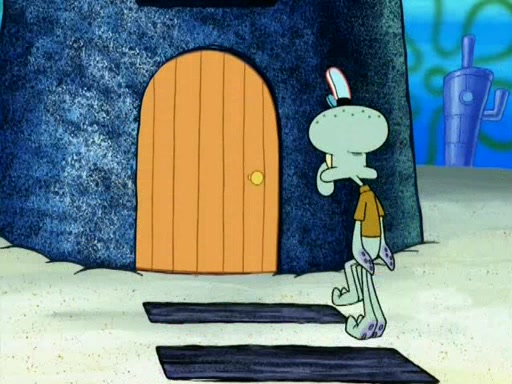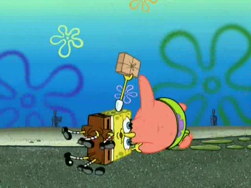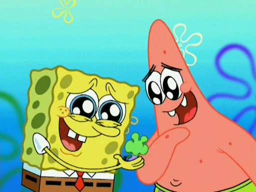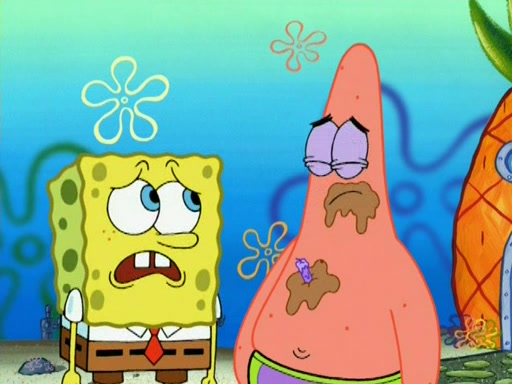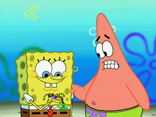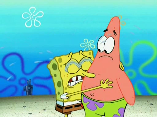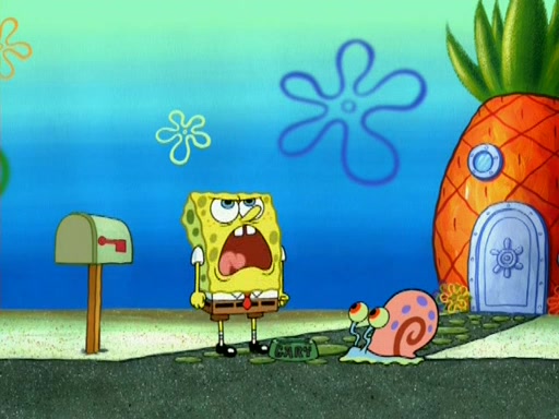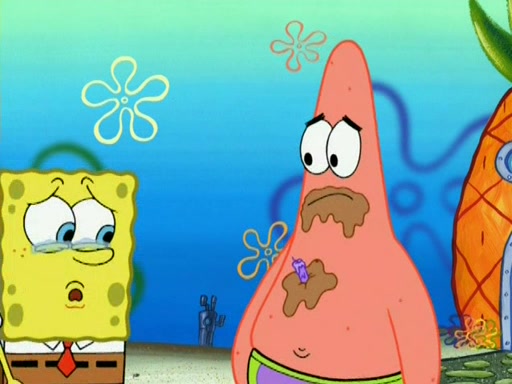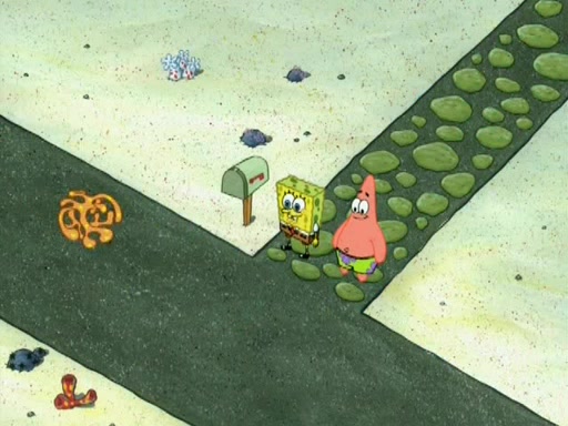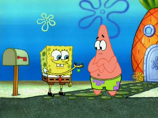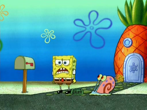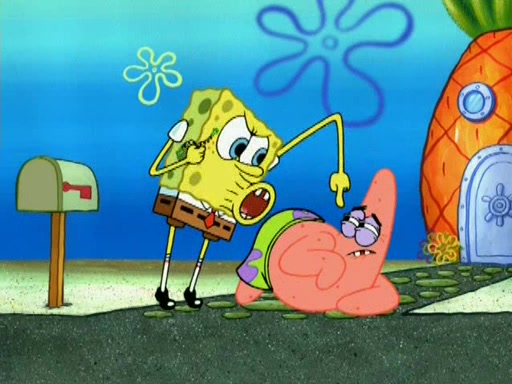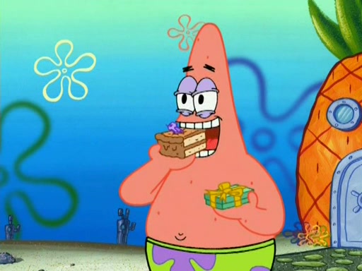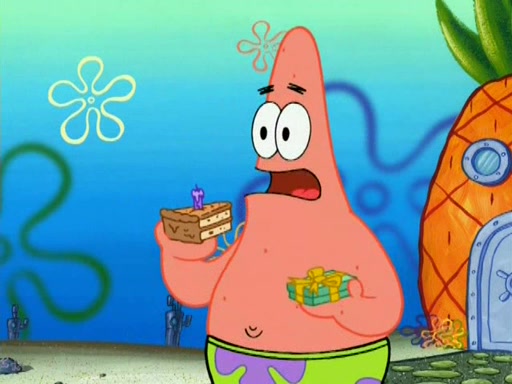 The Mailfish comes by and gives SpongeBob 3 envelopes but no toy. SpongeBob and Patrick must wait even longer now! SpongeBob and Patrick soon become hungry. Patrick suggests that he and SpongeBob go to the Krusty Krab for a Krabby Patty, but SpongeBob is afraid of the mailman coming with the toy when he's gone. So Patrick instead goes to Krusty Krab by himself. He gets frustrated when Sandy and Gary distract him with karate and feeding. Soon, Patrick comes back and tells SpongeBob he missed his surprise birthday party at the Krusty Krab. He also brought SpongeBob a present and some cake. While trying to find the fork, Patrick accidentally eats the cake. Patrick then realizes that the present was the fork. SpongeBob then whines about him being a big jerk. Eventually, the toy arrives and SpongeBob and Patrick become happy and open it. Patrick pushes the button on toy and springs comes out. SpongeBob thinks Patrick "ruined" the toy and furious and sad. Squidward comes home to see them crying. Once he can't take it, he asks what wrong with them. SpongeBob explains to Squidward that he sent in box tops, waited mailman, and Patrick broke the toy. Squidward then shows him that its head, arms, and legs are supposed to spring off, and reattaches them. SpongeBob and Patrick then hug Squidward, asking if there is anything they could for him, and Squidward replies that they should move to another neighborhood.
