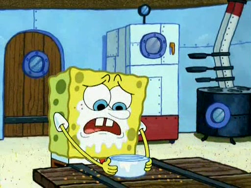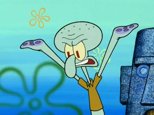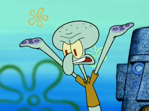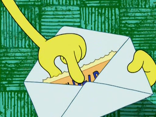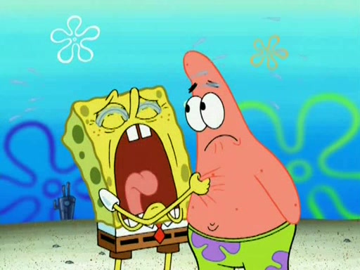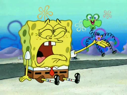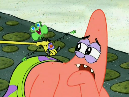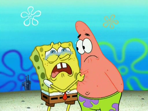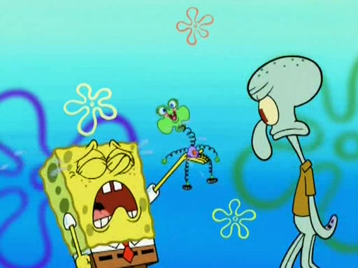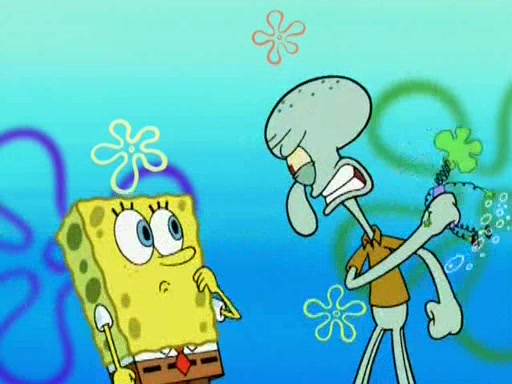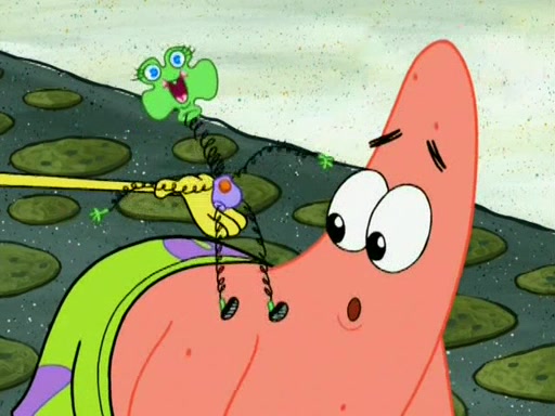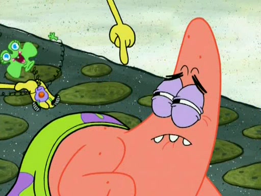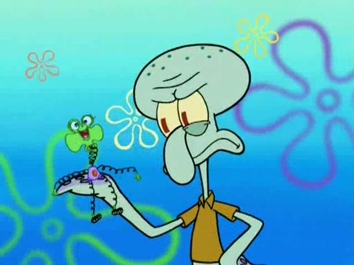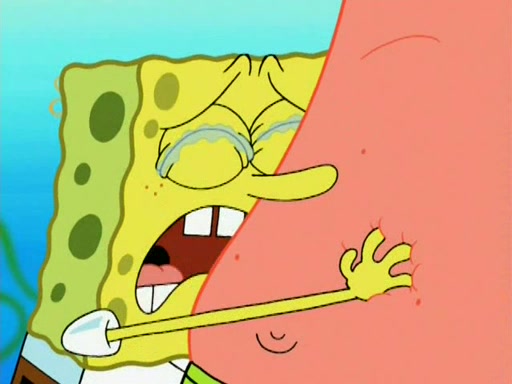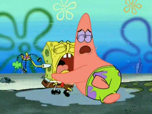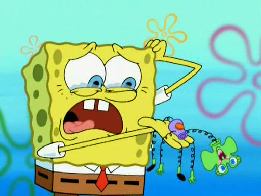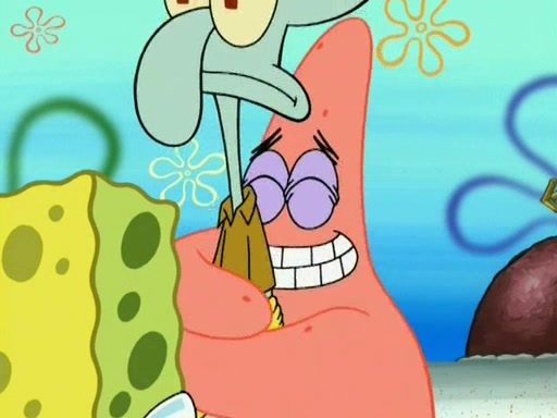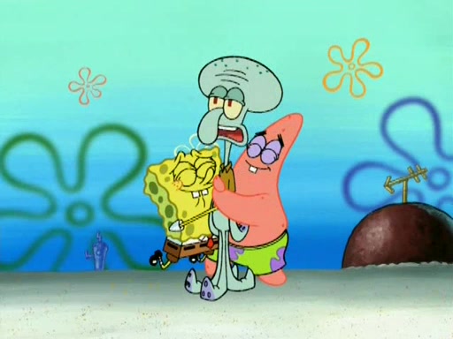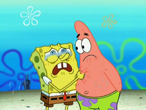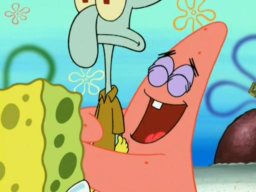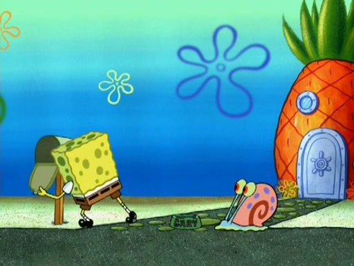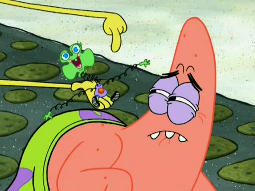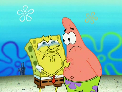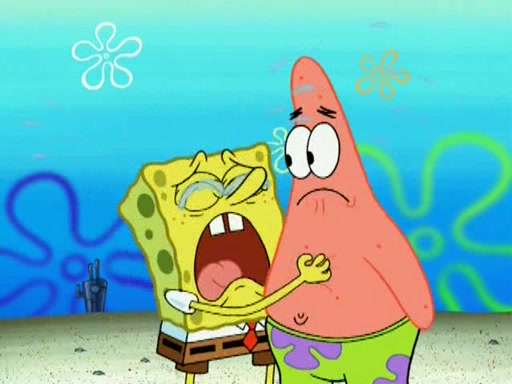 The Mailfish comes by and gives SpongeBob 3 envelopes but no toy. SpongeBob and Patrick must wait even longer now! SpongeBob and Patrick soon become hungry. Patrick suggests that he and SpongeBob go to the Krusty Krab for a Krabby Patty, but SpongeBob is afraid of the mailman coming with the toy when he's gone. So Patrick instead goes to Krusty Krab by himself. He gets frustrated when Sandy and Gary distract him with karate and feeding. Soon, Patrick comes back and tells SpongeBob he missed his surprise birthday party at the Krusty Krab. He also brought SpongeBob a present and some cake. While trying to find the fork, Patrick accidentally eats the cake. Patrick then realizes that the present was the fork. SpongeBob then whines about him being a big jerk. Eventually, the toy arrives and SpongeBob and Patrick become happy and open it. Patrick pushes the button on toy and springs comes out. SpongeBob thinks Patrick "ruined" the toy and furious and sad. Squidward comes home to see them crying. Once he can't take it, he asks what wrong with them. SpongeBob explains to Squidward that he sent in box tops, waited mailman, and Patrick broke the toy. Squidward then shows him that its head, arms, and legs are supposed to spring off, and reattaches them. SpongeBob and Patrick then hug Squidward, asking if there is anything they could for him, and Squidward replies that they should move to another neighborhood.
