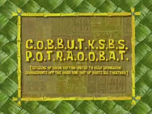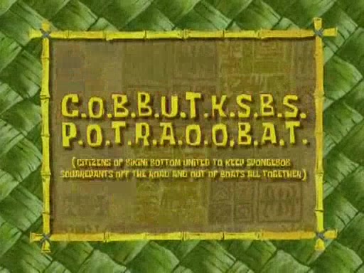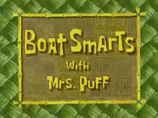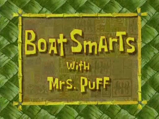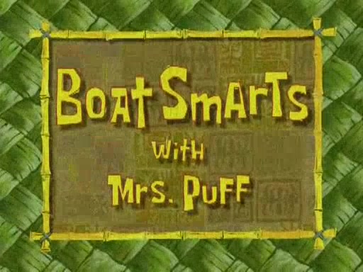 This is a boating video put together by Mrs. Puff, and sponsored by C.O.B.B.U.T.K.S.B.S.P.O.T.R.A.O.O.B.A.T.: (Citizens Of Bikini Bottom United To Keep SpongeBob SquarePants Off The Road And Out Of Boats All Together). Then Mrs. Puff introduces herself and discusses the good and bad drivers (Squidward is the one with Boat Smarts, and SpongeBob is the one without it).