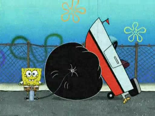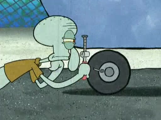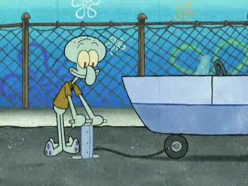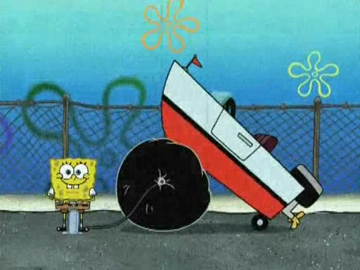 A driver with boat smarts fills his (or her) tire up to the appropriate level, but a driver without boat smarts pays no attention to how much air he (or she) is using. Squidward fills it up to the exact measurement while SpongeBob pumps it up too much, making the boat tip over, crushing half of Squidward's boat and having the wheel pop right in front of his face.