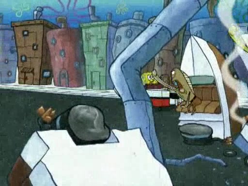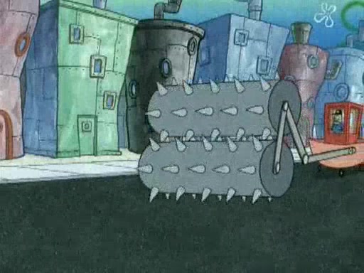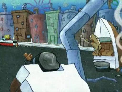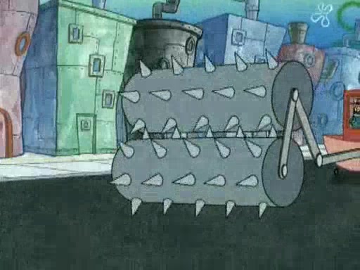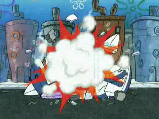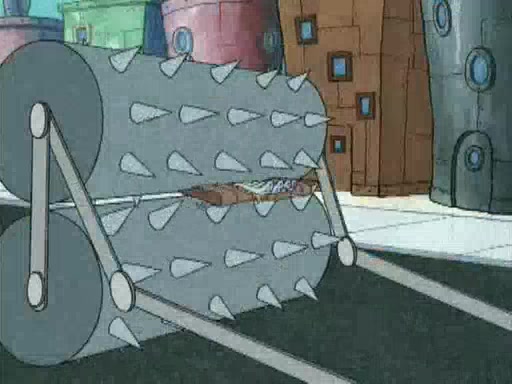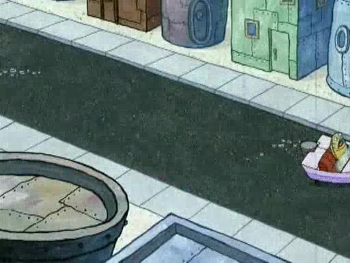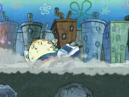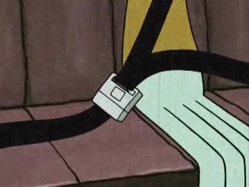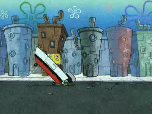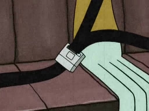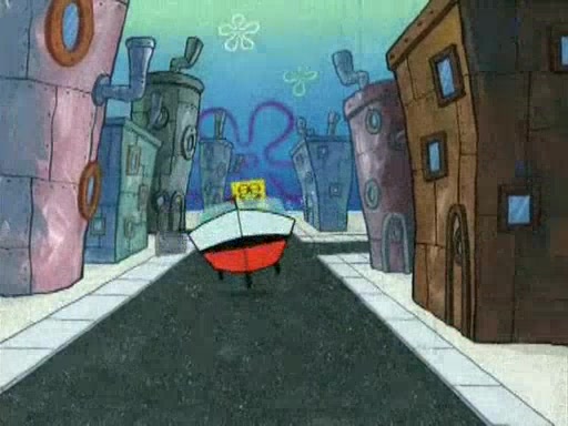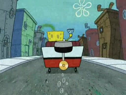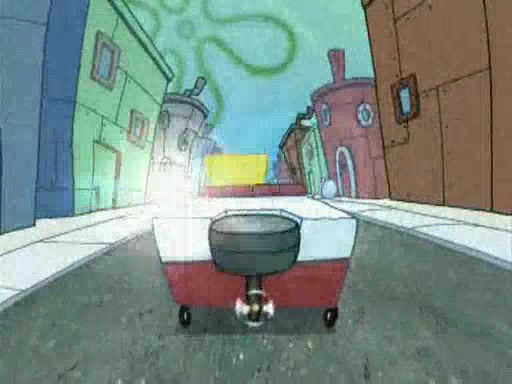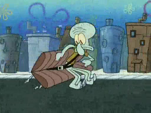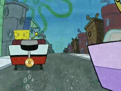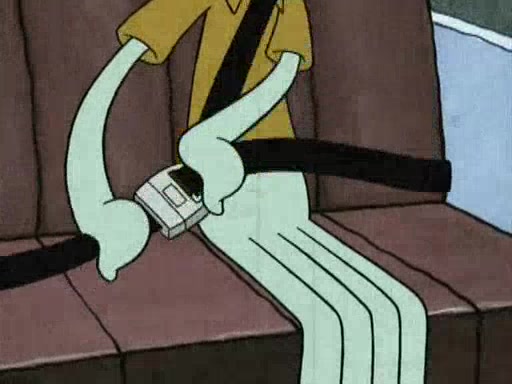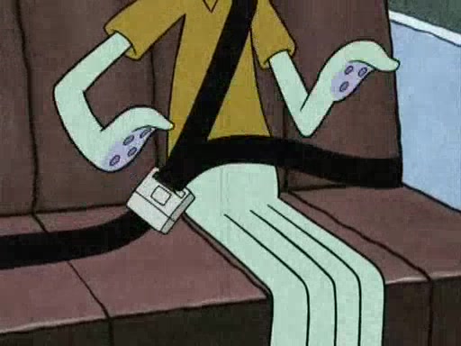 The next section is about buckling up. This shows Squidward in a boat mobile with his seatbelt in the proper manner. He then starts driving until he sees a Bikini Bottom Traffic lights and he stops. Once Squidward stops, we see SpongeBob crazily speeding around a corner with no regard for safety and probably with no seatbelt on. He hits Squidward who goes flying into a steamroller. He gets severely hurt.