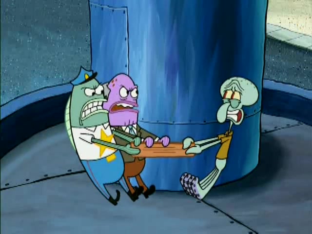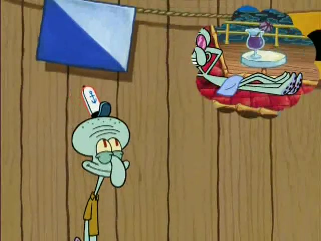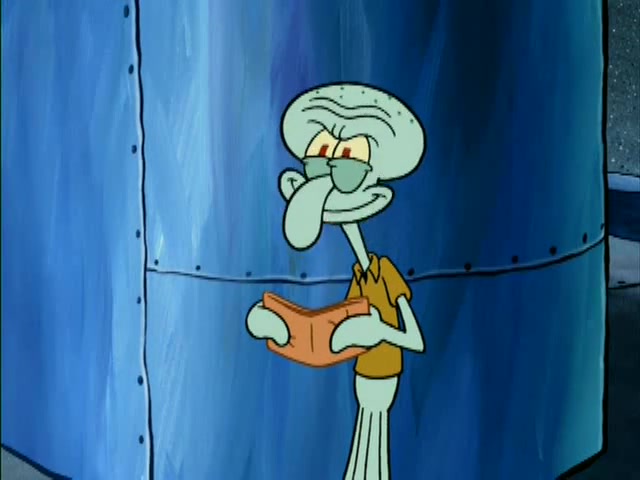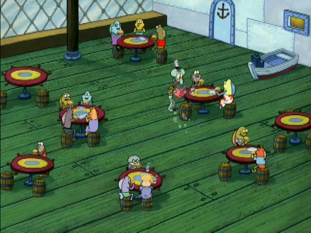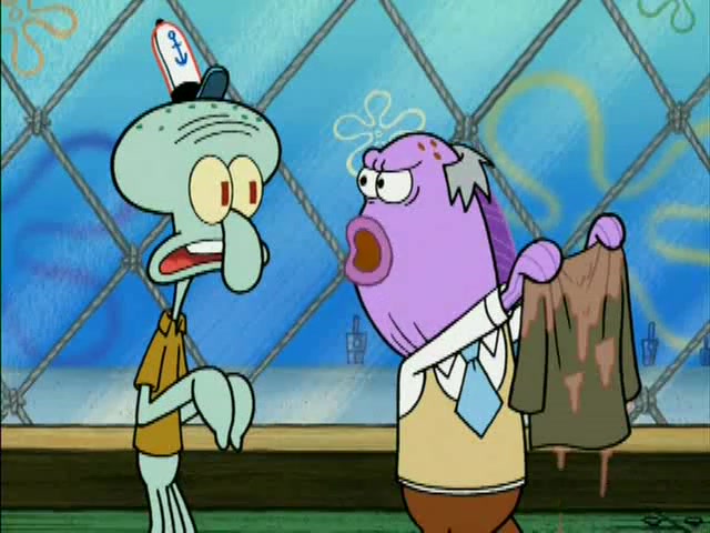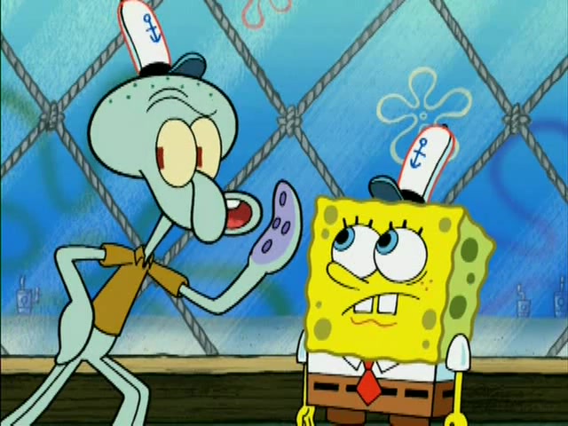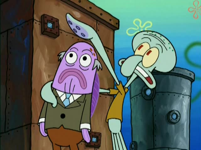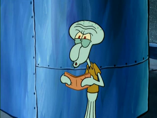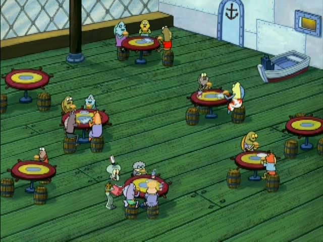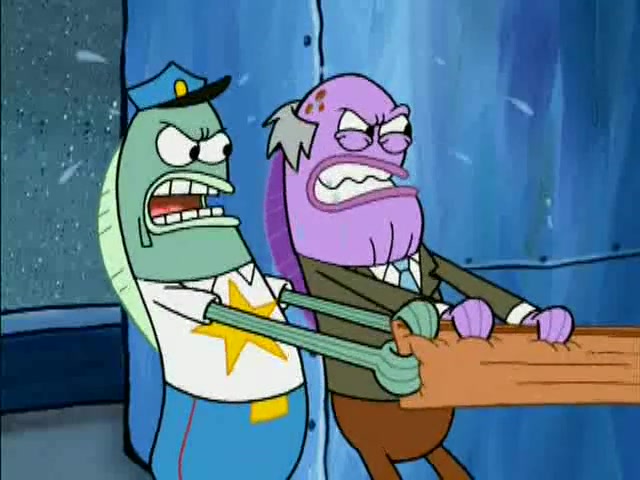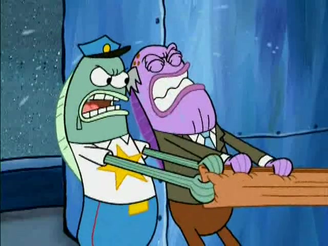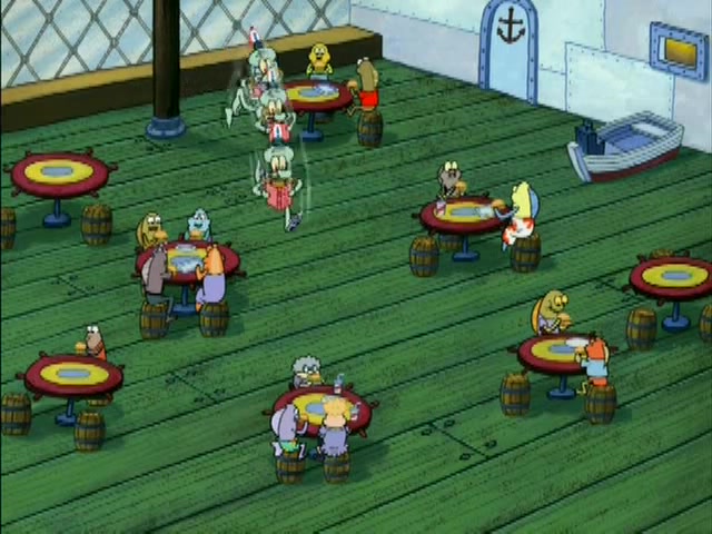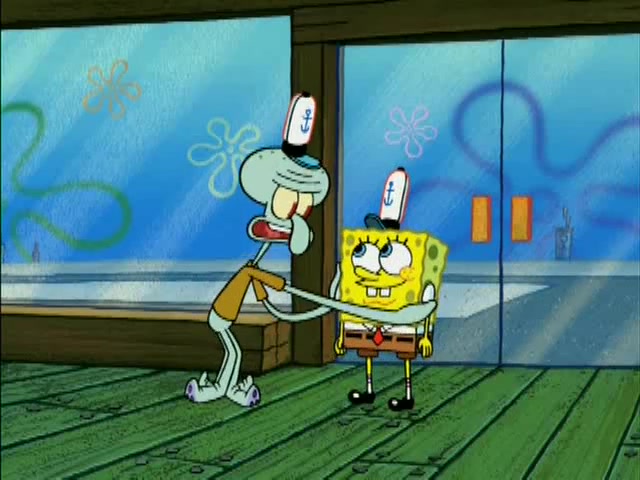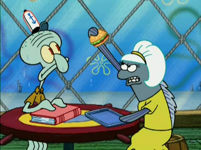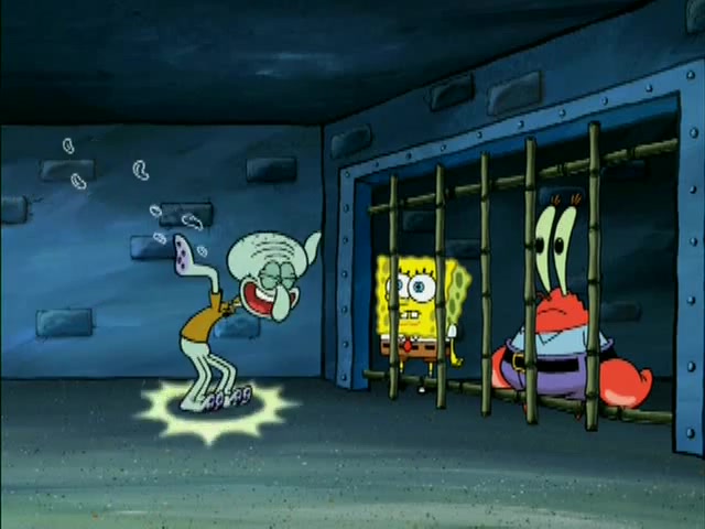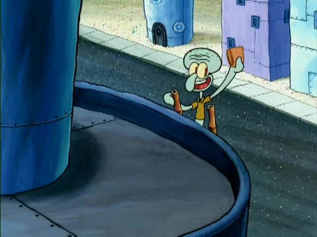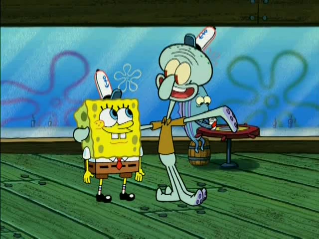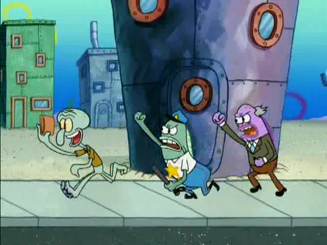 Mr. Krabs puts SpongeBob against Squidward in a work contest, telling them there will be a prize. He shows them a brochure for a cruise vacation, leading Squidward to believe the vacation is the prize. They have to name all the customers in the Krusty Krab. Somehow, SpongeBob knows everyone's name and Squidward is confused by this, so he asks SpongeBob why this is so. SpongeBob then he reveals he has a book with everybody's name in it. Squidward then swipes the book and says the names in the book. He told Mr. Krabs that he has more points than SpongeBob. Mr. Krabs didn't tally the scores but, he claims that they both were neck and neck to the winner and that they're was one costumer who's name was a mystery and whoever gets his name wins the competition. Squidward and SpongeBob were in a sudden death to know the last customer's name. After a struggle or trying to remember, Squidward then gets SpongeBob out of the way and asks the fish his name. He responds "What's it to ya". After three attempts to find out his name, Squidward snatched his wallet and ran. He attracted a cop who chased him because he ran a stop sign, and more so after he realizes he stole a wallet too. Squidward then makes it on top of the roof and after a tug-of-war for the wallet, Squidward manages to get his driver's license, which the name reads "Mr. What Zit Too Ya." He then is arrested. In jail, he gets the prize from Mr. Krabs and it turns out the prize is just a brochure for the trip. Squidward believes he is safe from SpongeBob and Patrick, but it turns out Patrick is his cellmate. He offers to play Parcheesi with Squidward, but Squidward just falls apart (literally).