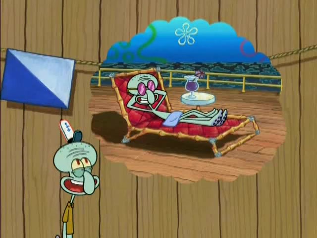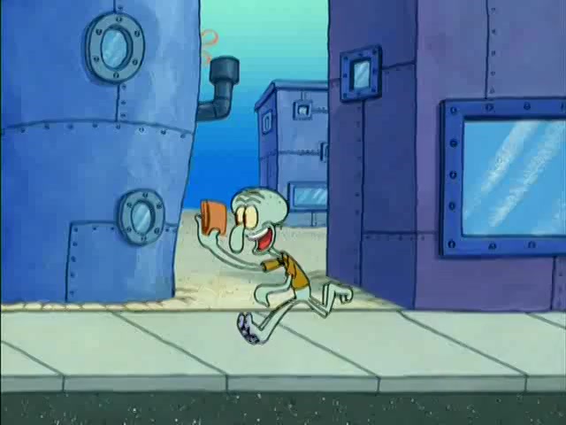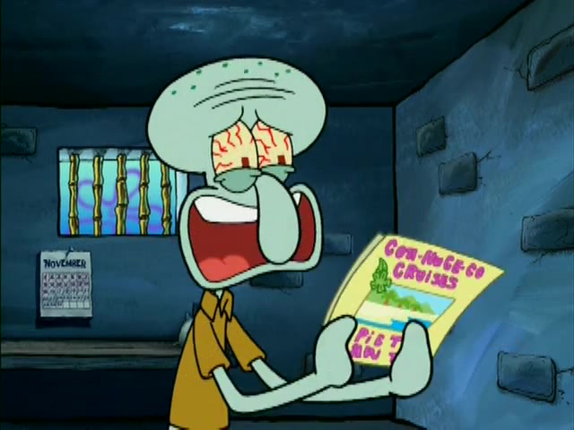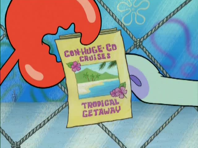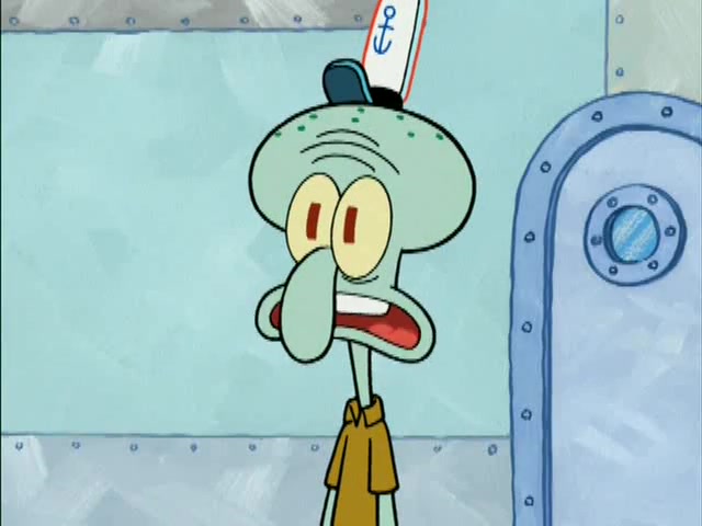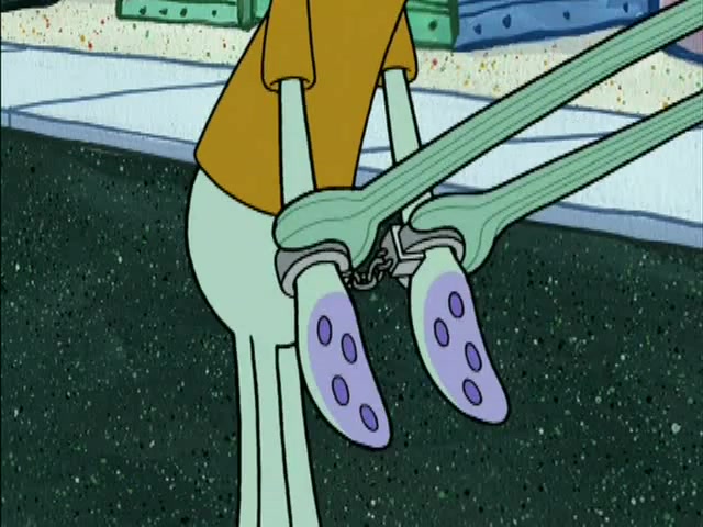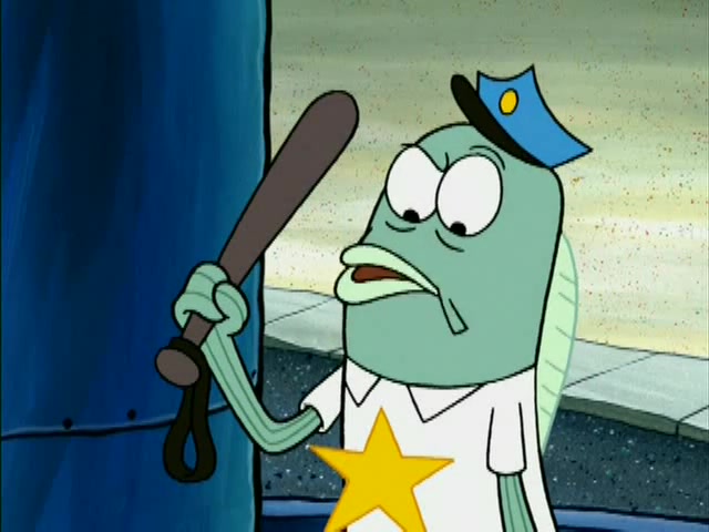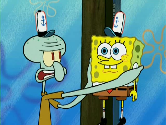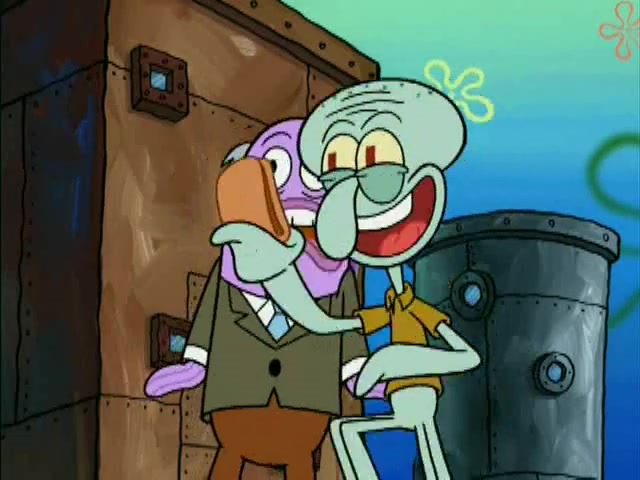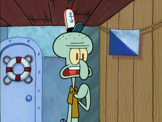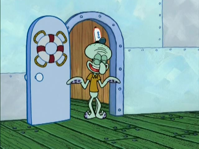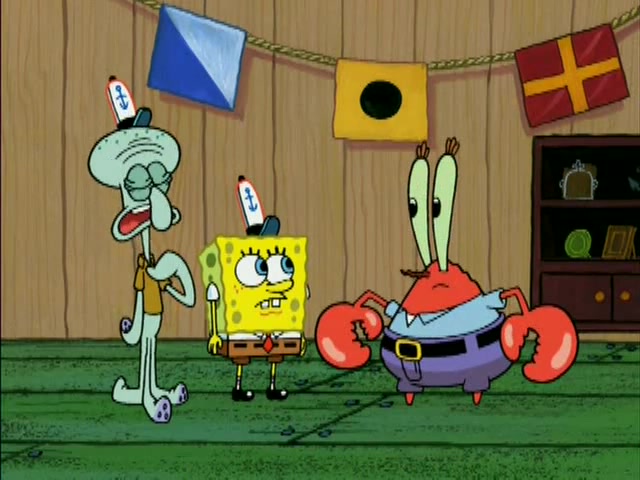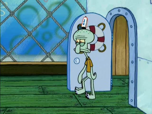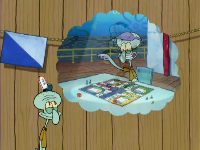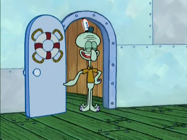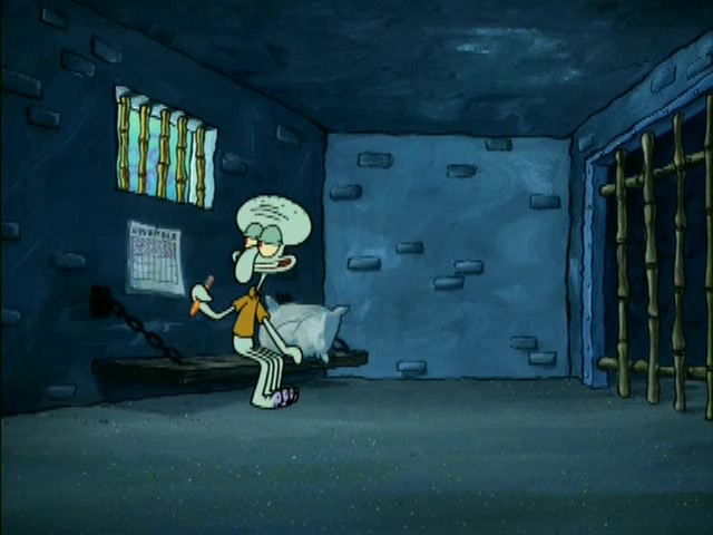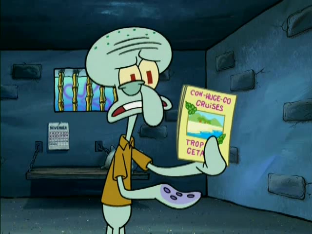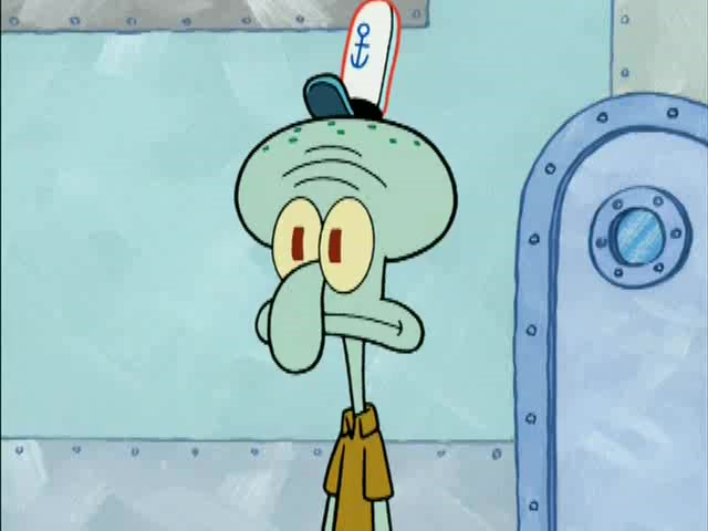 Mr. Krabs puts SpongeBob against Squidward in a work contest, telling them there will be a prize. He shows them a brochure for a cruise vacation, leading Squidward to believe the vacation is the prize. They have to name all the customers in the Krusty Krab. Somehow, SpongeBob knows everyone's name and Squidward is confused by this, so he asks SpongeBob why this is so. SpongeBob then he reveals he has a book with everybody's name in it. Squidward then swipes the book and says the names in the book. He told Mr. Krabs that he has more points than SpongeBob. Mr. Krabs didn't tally the scores but, he claims that they both were neck and neck to the winner and that they're was one costumer who's name was a mystery and whoever gets his name wins the competition. Squidward and SpongeBob were in a sudden death to know the last customer's name. After a struggle or trying to remember, Squidward then gets SpongeBob out of the way and asks the fish his name. He responds "What's it to ya". After three attempts to find out his name, Squidward snatched his wallet and ran. He attracted a cop who chased him because he ran a stop sign, and more so after he realizes he stole a wallet too. Squidward then makes it on top of the roof and after a tug-of-war for the wallet, Squidward manages to get his driver's license, which the name reads "Mr. What Zit Too Ya." He then is arrested. In jail, he gets the prize from Mr. Krabs and it turns out the prize is just a brochure for the trip. Squidward believes he is safe from SpongeBob and Patrick, but it turns out Patrick is his cellmate. He offers to play Parcheesi with Squidward, but Squidward just falls apart (literally).