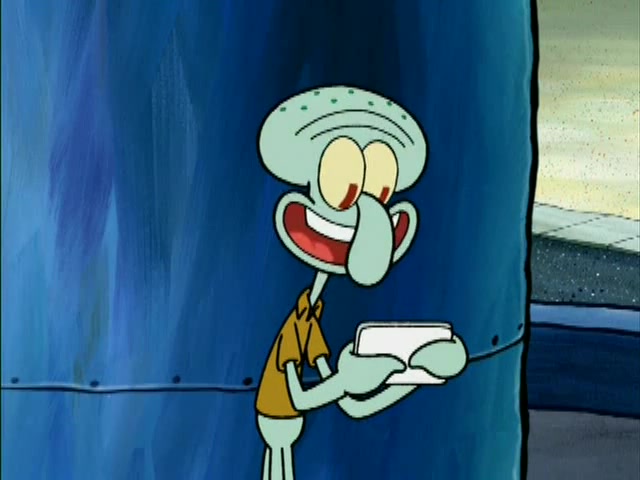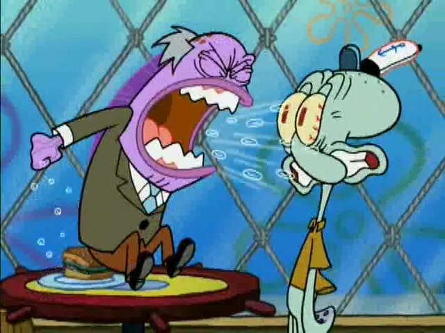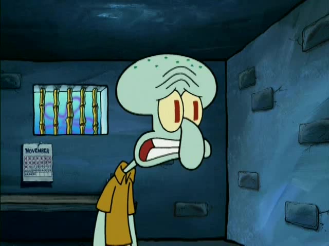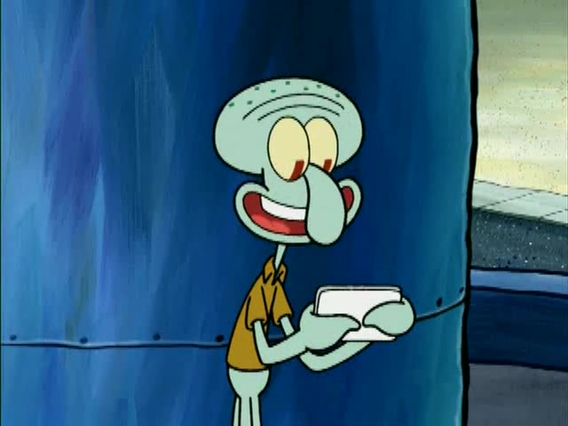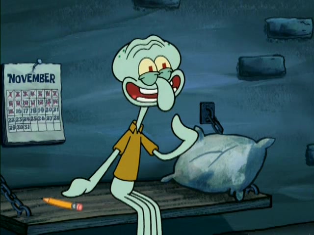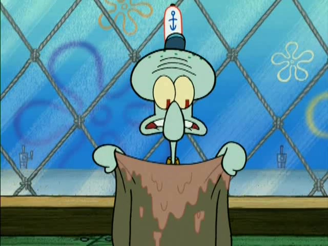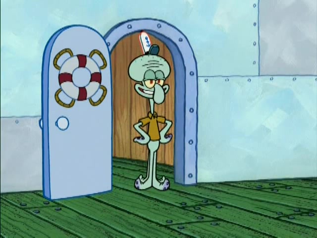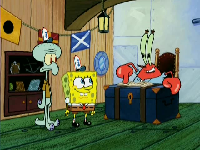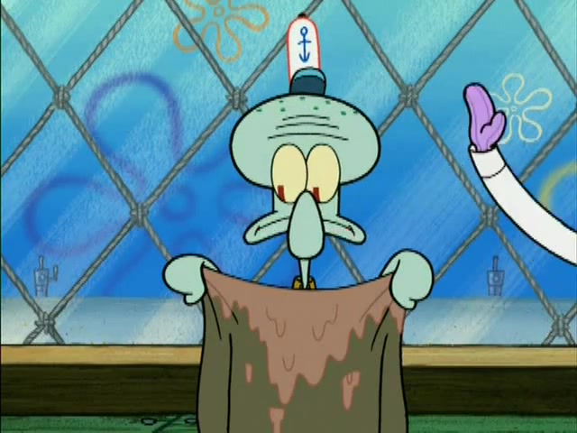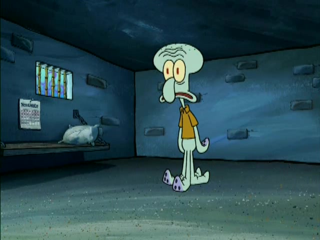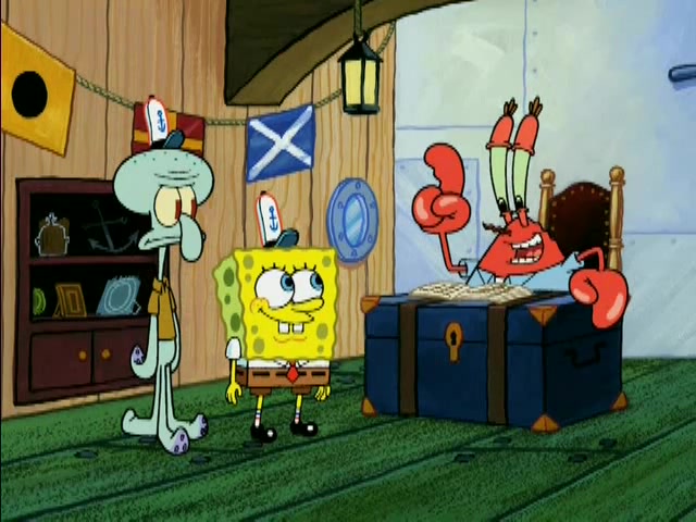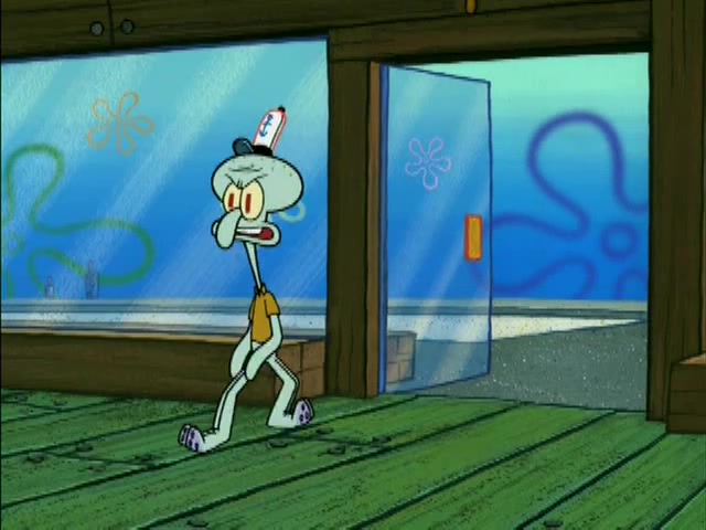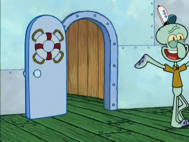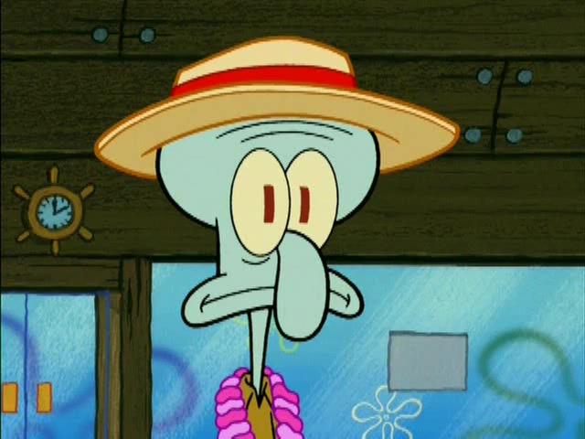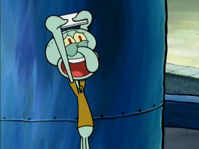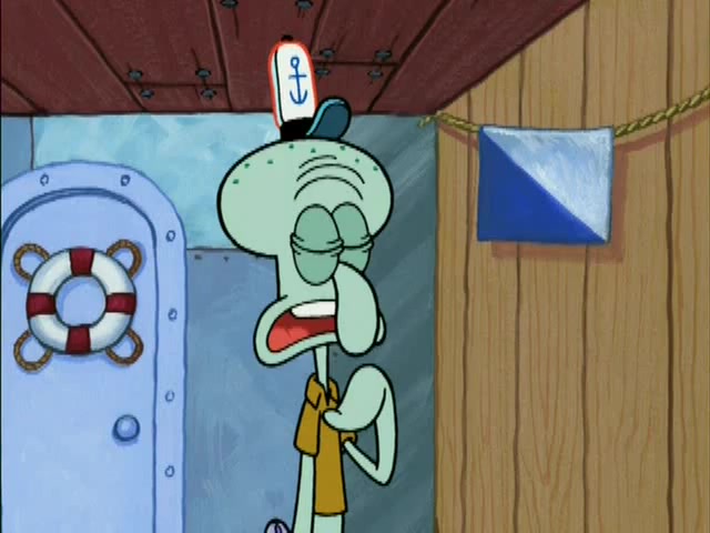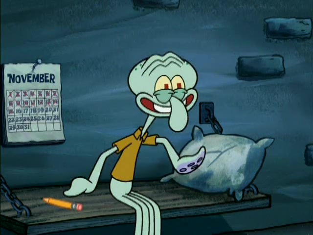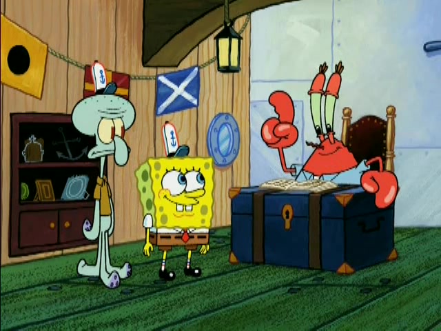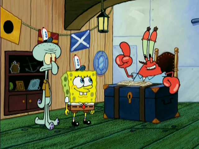 Mr. Krabs puts SpongeBob against Squidward in a work contest, telling them there will be a prize. He shows them a brochure for a cruise vacation, leading Squidward to believe the vacation is the prize. They have to name all the customers in the Krusty Krab. Somehow, SpongeBob knows everyone's name and Squidward is confused by this, so he asks SpongeBob why this is so. SpongeBob then he reveals he has a book with everybody's name in it. Squidward then swipes the book and says the names in the book. He told Mr. Krabs that he has more points than SpongeBob. Mr. Krabs didn't tally the scores but, he claims that they both were neck and neck to the winner and that they're was one costumer who's name was a mystery and whoever gets his name wins the competition. Squidward and SpongeBob were in a sudden death to know the last customer's name. After a struggle or trying to remember, Squidward then gets SpongeBob out of the way and asks the fish his name. He responds "What's it to ya". After three attempts to find out his name, Squidward snatched his wallet and ran. He attracted a cop who chased him because he ran a stop sign, and more so after he realizes he stole a wallet too. Squidward then makes it on top of the roof and after a tug-of-war for the wallet, Squidward manages to get his driver's license, which the name reads "Mr. What Zit Too Ya." He then is arrested. In jail, he gets the prize from Mr. Krabs and it turns out the prize is just a brochure for the trip. Squidward believes he is safe from SpongeBob and Patrick, but it turns out Patrick is his cellmate. He offers to play Parcheesi with Squidward, but Squidward just falls apart (literally).