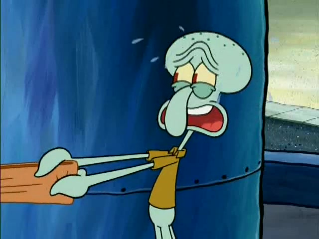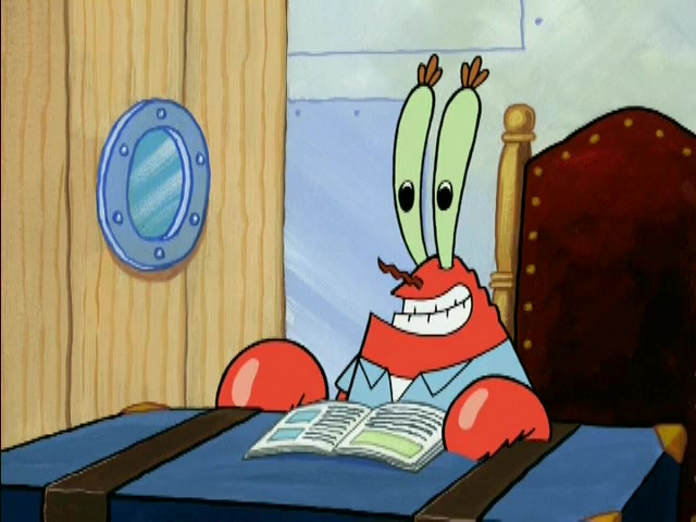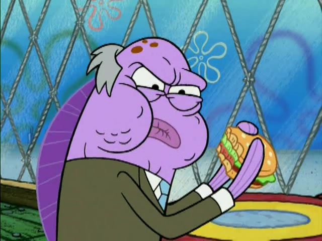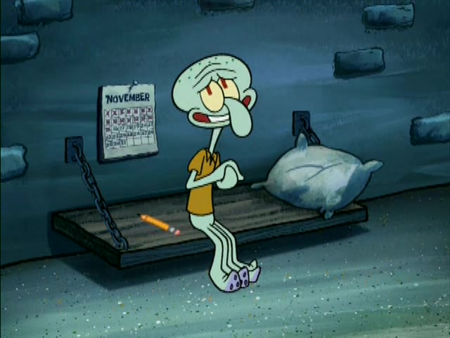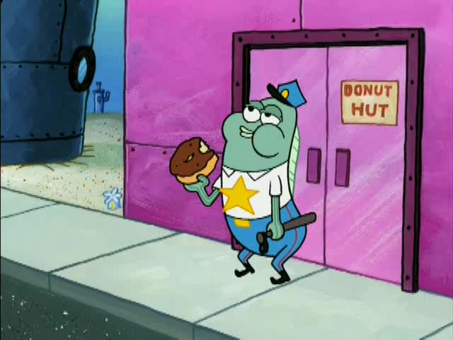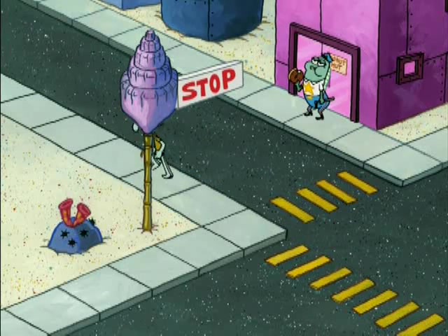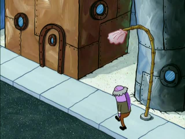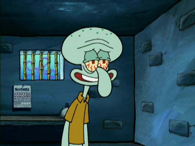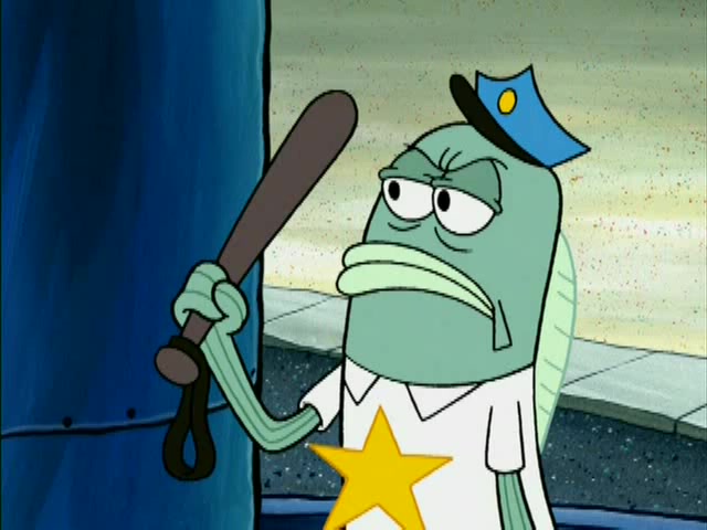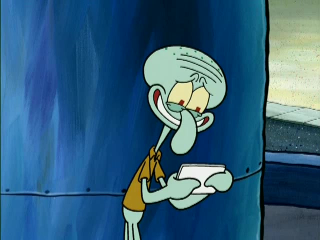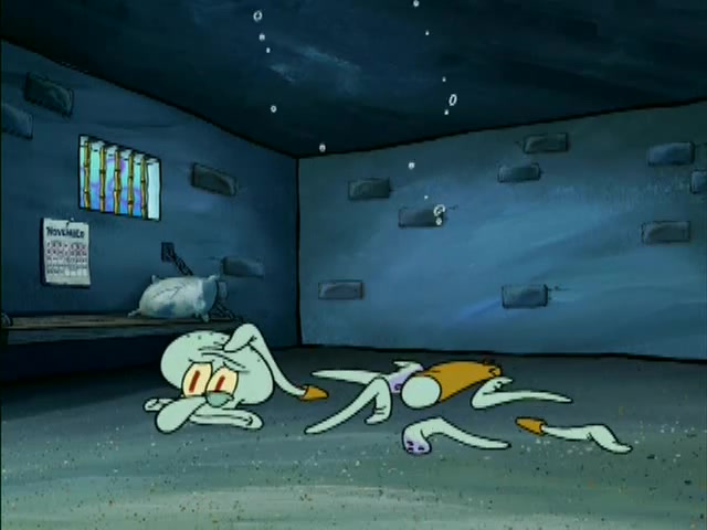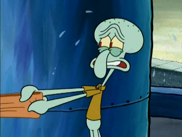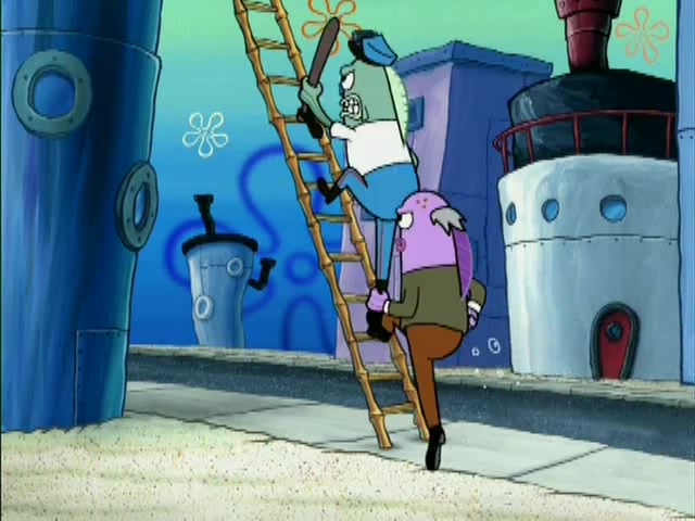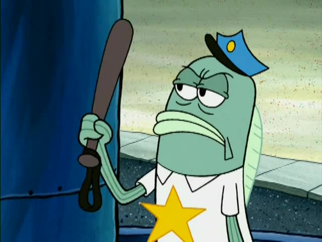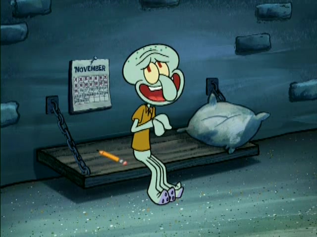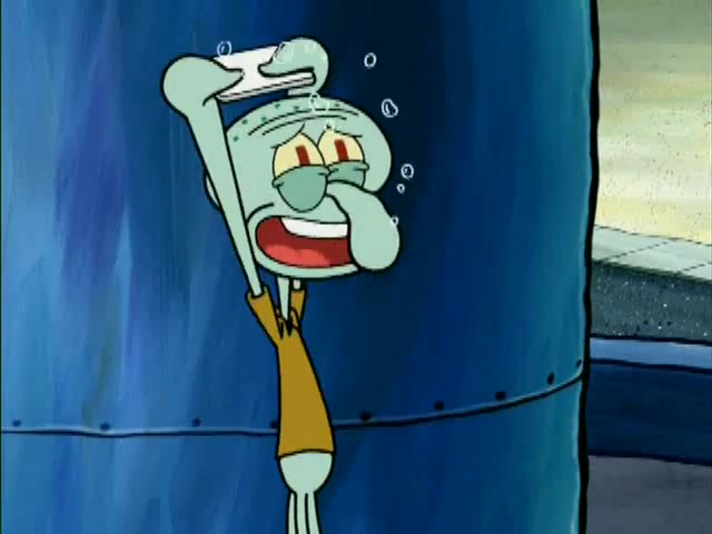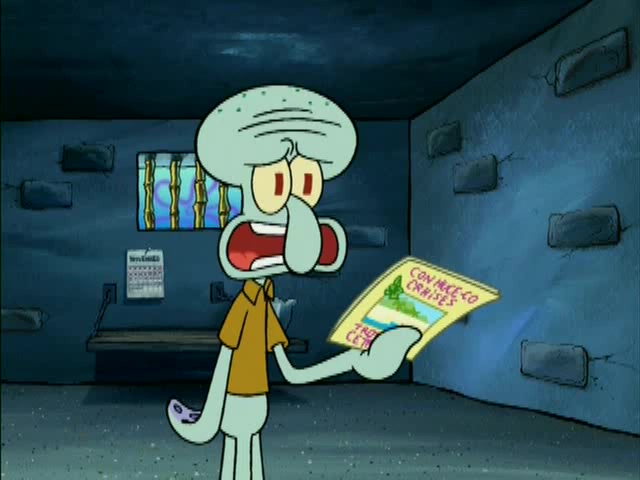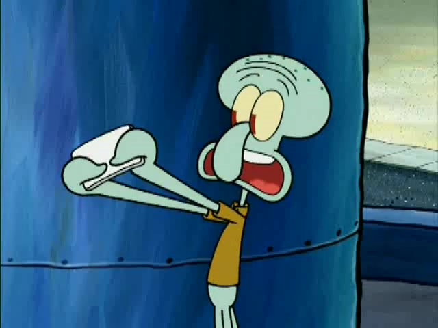 Mr. Krabs puts SpongeBob against Squidward in a work contest, telling them there will be a prize. He shows them a brochure for a cruise vacation, leading Squidward to believe the vacation is the prize. They have to name all the customers in the Krusty Krab. Somehow, SpongeBob knows everyone's name and Squidward is confused by this, so he asks SpongeBob why this is so. SpongeBob then he reveals he has a book with everybody's name in it. Squidward then swipes the book and says the names in the book. He told Mr. Krabs that he has more points than SpongeBob. Mr. Krabs didn't tally the scores but, he claims that they both were neck and neck to the winner and that they're was one costumer who's name was a mystery and whoever gets his name wins the competition. Squidward and SpongeBob were in a sudden death to know the last customer's name. After a struggle or trying to remember, Squidward then gets SpongeBob out of the way and asks the fish his name. He responds "What's it to ya". After three attempts to find out his name, Squidward snatched his wallet and ran. He attracted a cop who chased him because he ran a stop sign, and more so after he realizes he stole a wallet too. Squidward then makes it on top of the roof and after a tug-of-war for the wallet, Squidward manages to get his driver's license, which the name reads "Mr. What Zit Too Ya." He then is arrested. In jail, he gets the prize from Mr. Krabs and it turns out the prize is just a brochure for the trip. Squidward believes he is safe from SpongeBob and Patrick, but it turns out Patrick is his cellmate. He offers to play Parcheesi with Squidward, but Squidward just falls apart (literally).