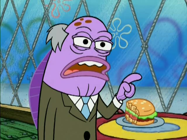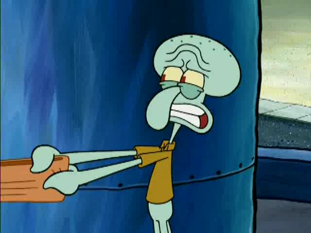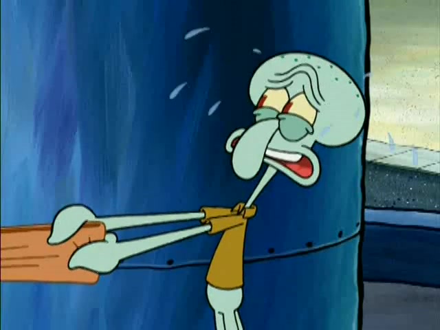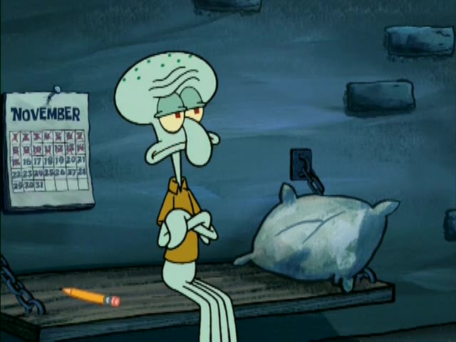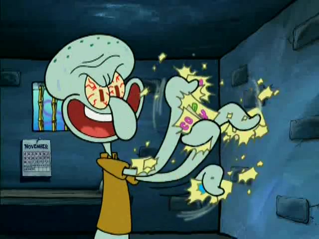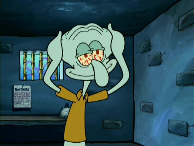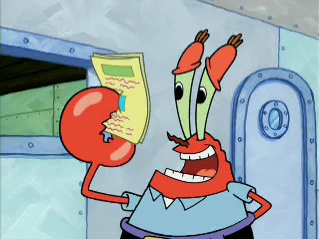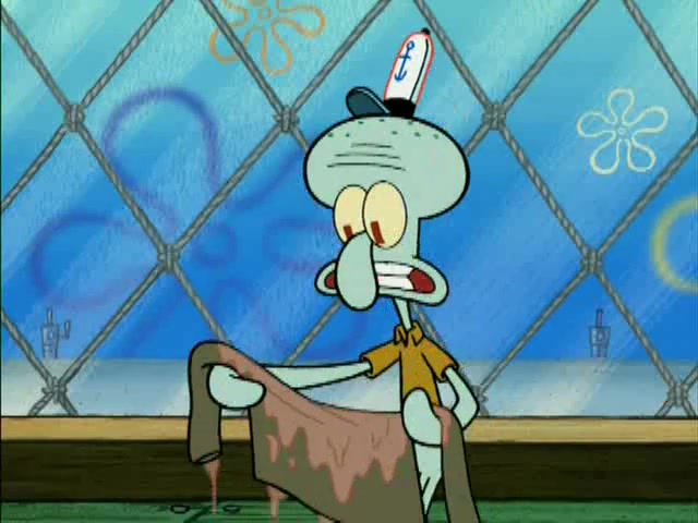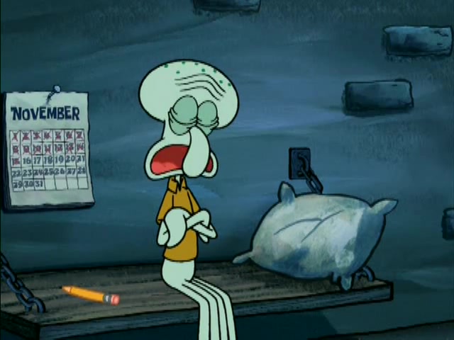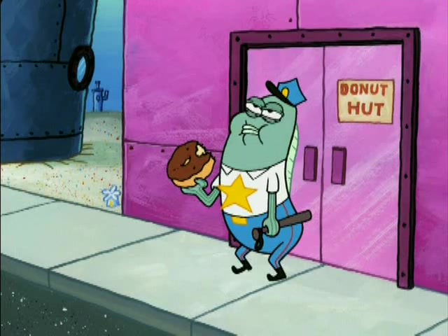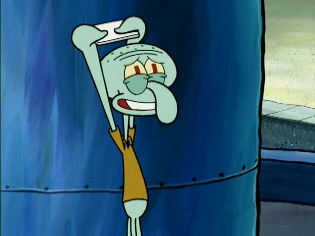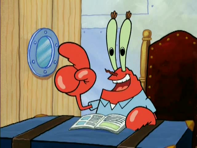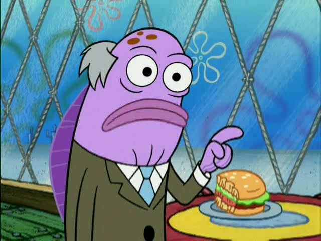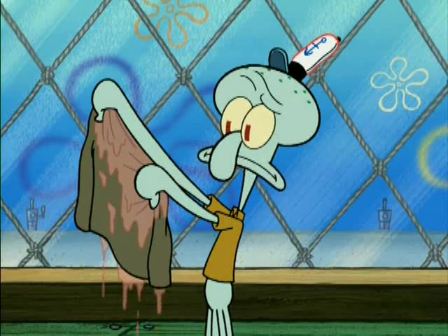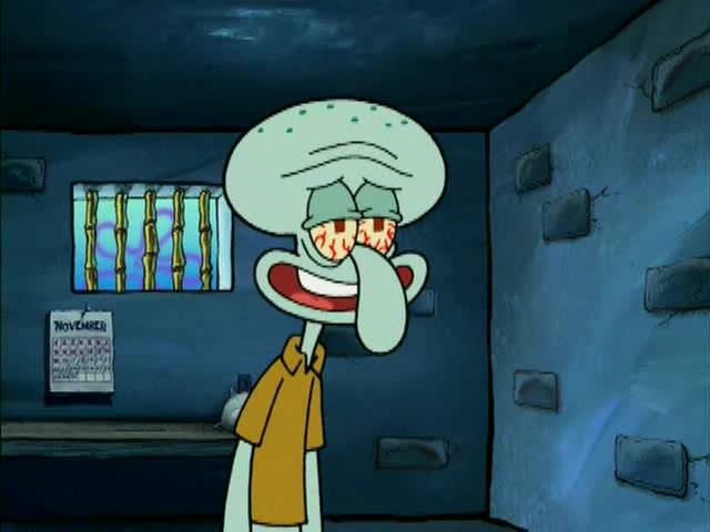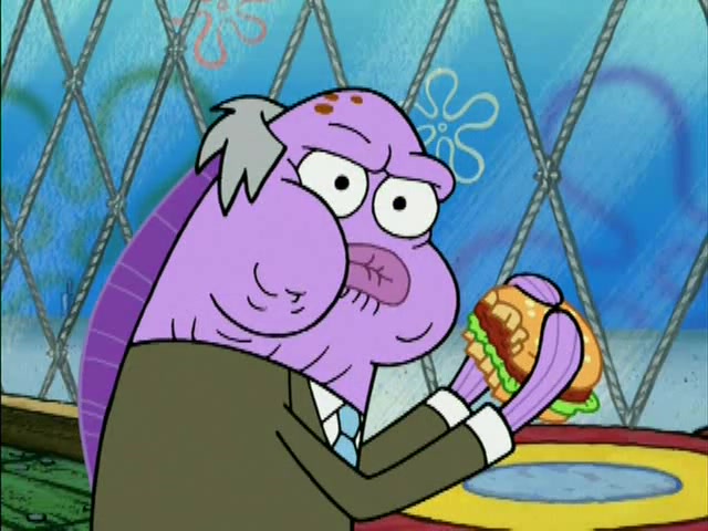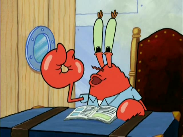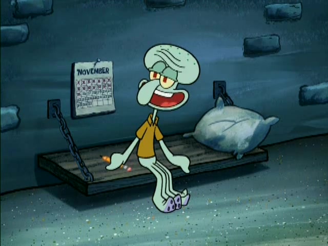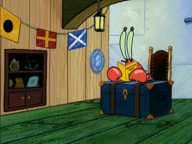Mr. Krabs puts SpongeBob against Squidward in a work contest, telling them there will be a prize. He shows them a brochure for a cruise vacation, leading Squidward to believe the vacation is the prize. They have to name all the customers in the Krusty Krab. Somehow, SpongeBob knows everyone's name and Squidward is confused by this, so he asks SpongeBob why this is so. SpongeBob then he reveals he has a book with everybody's name in it. Squidward then swipes the book and says the names in the book. He told Mr. Krabs that he has more points than SpongeBob. Mr. Krabs didn't tally the scores but, he claims that they both were neck and neck to the winner and that they're was one costumer who's name was a mystery and whoever gets his name wins the competition. Squidward and SpongeBob were in a sudden death to know the last customer's name. After a struggle or trying to remember, Squidward then gets SpongeBob out of the way and asks the fish his name. He responds "What's it to ya". After three attempts to find out his name, Squidward snatched his wallet and ran. He attracted a cop who chased him because he ran a stop sign, and more so after he realizes he stole a wallet too. Squidward then makes it on top of the roof and after a tug-of-war for the wallet, Squidward manages to get his driver's license, which the name reads "Mr. What Zit Too Ya." He then is arrested. In jail, he gets the prize from Mr. Krabs and it turns out the prize is just a brochure for the trip. Squidward believes he is safe from SpongeBob and Patrick, but it turns out Patrick is his cellmate. He offers to play Parcheesi with Squidward, but Squidward just falls apart (literally).