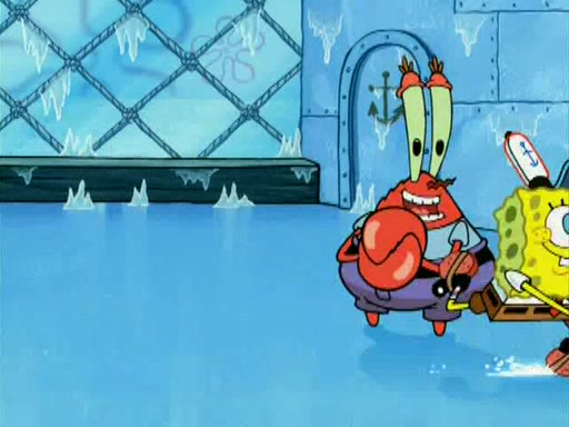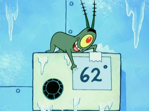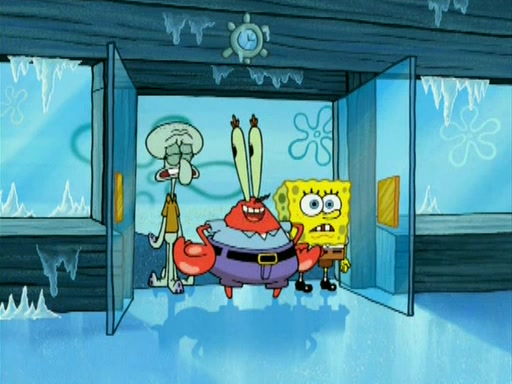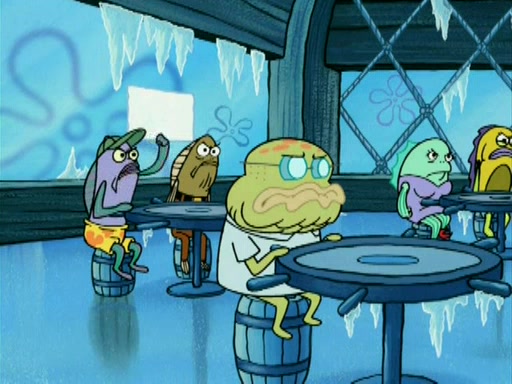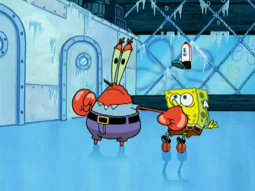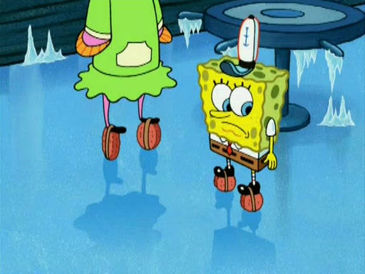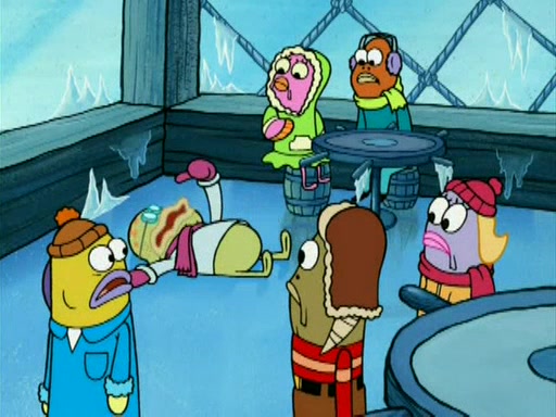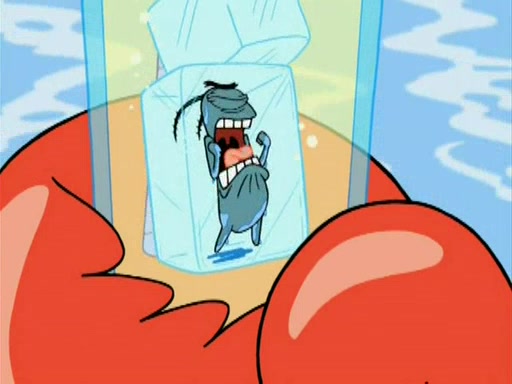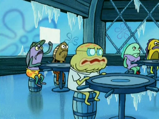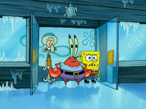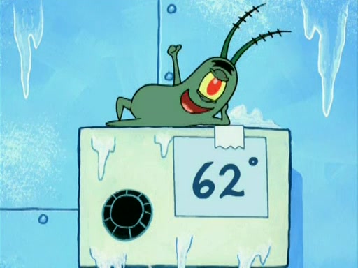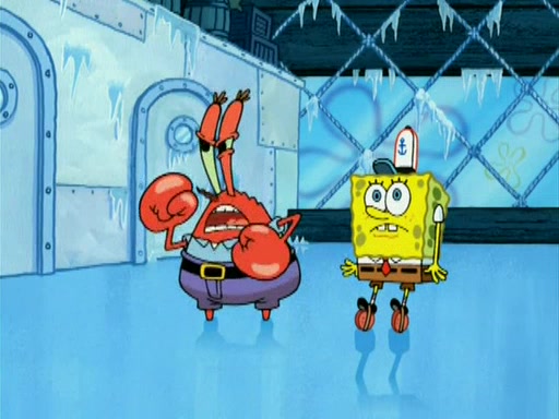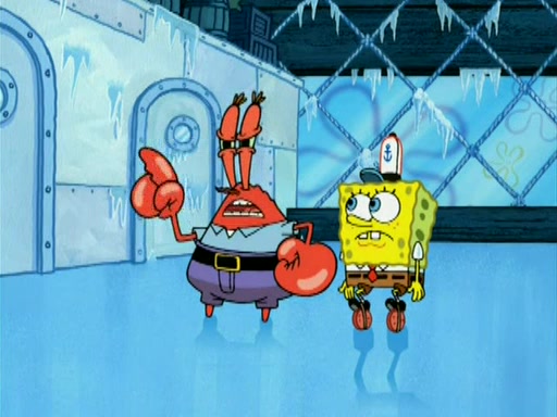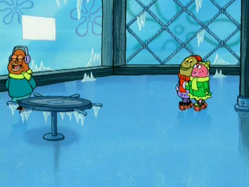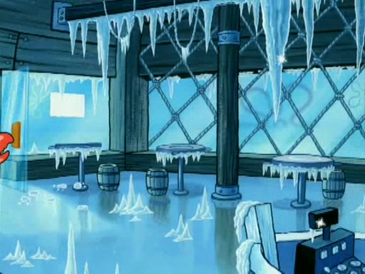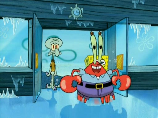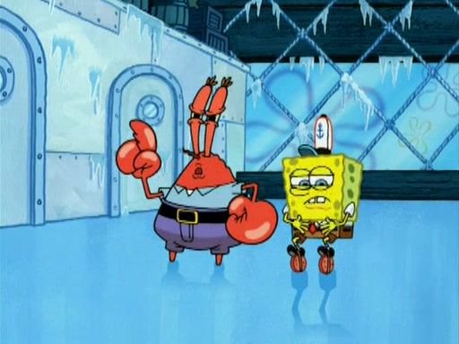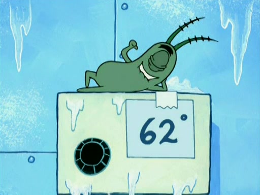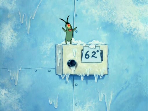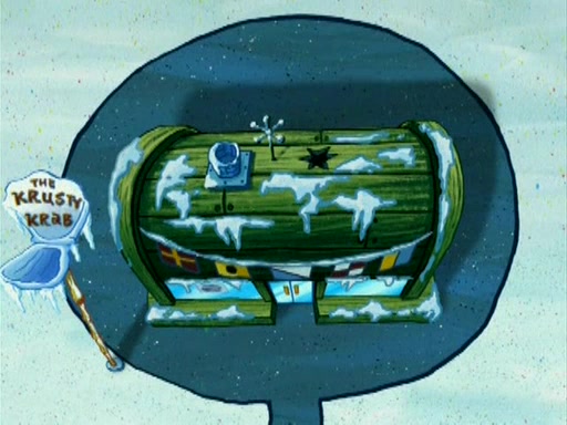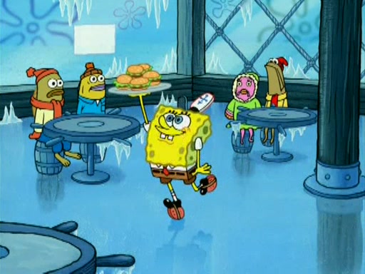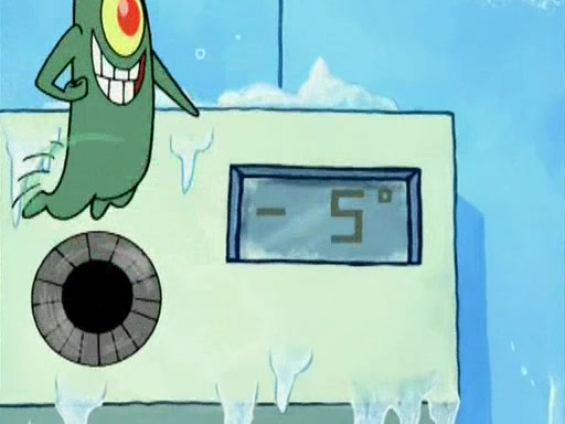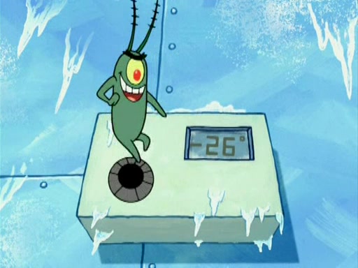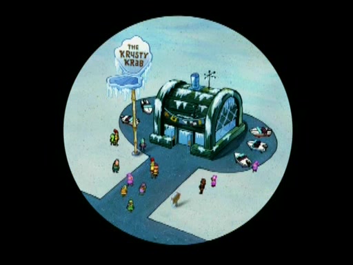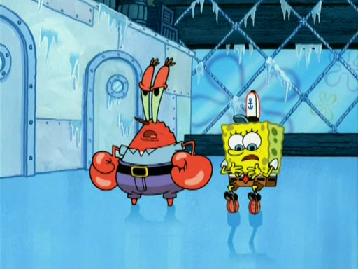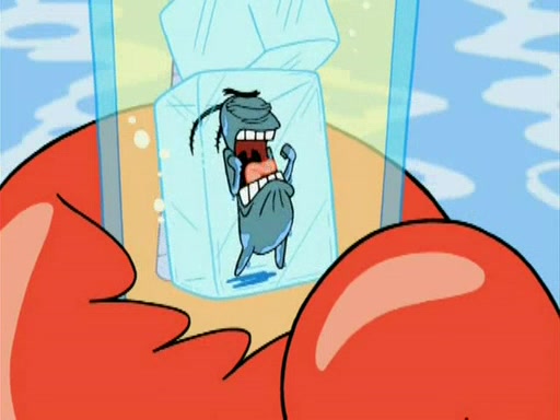 During the freezing cold weather in Bikini Bottom, Squidward complains about the temperature in the Krusty Krab. When Squidward tries to turn up the heat on the thermostat, Mr. Krabs berates him, allowing Plankton to get an idea to freeze his competition out of business. The next morning, Plankton has frozen the Krusty Krab down to -15 degrees, but the customers continue to stay due to the Krabby Patties and the new patty skates SpongeBob invented. Mr. Krabs has turned the restaurant into and ice rink. Karen advises Plankton to swipe a Krabby Patty in the confusion, but SpongeBob and some local hockey players prevent him from escaping. When SpongeBob blocks the doors, Plankton turns to the thermostat, and begins freezing and boiling the patrons. He then gets careless and falls off the dial, allowing Mr. Krabs to freeze him. Later, Mr. Krabs has turned the Krusty Krab into a swimming pool, relaxing on a floating chair, while he thanks Plankton (trapped in a ice cube) for his ideas, and sips lemonade with Plankton as the ice in the drink.