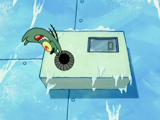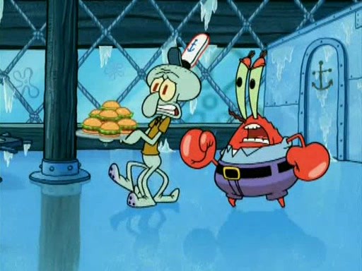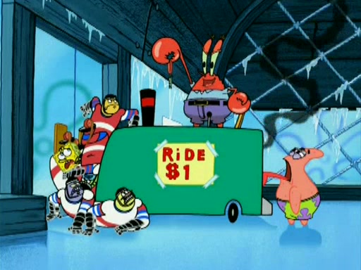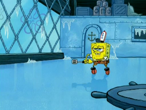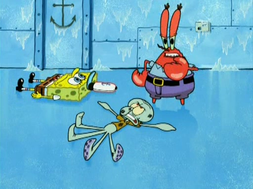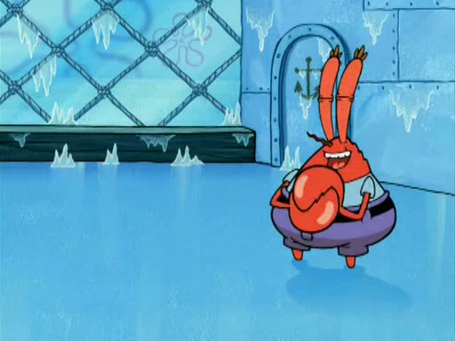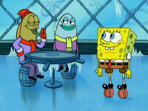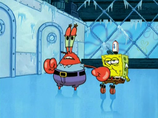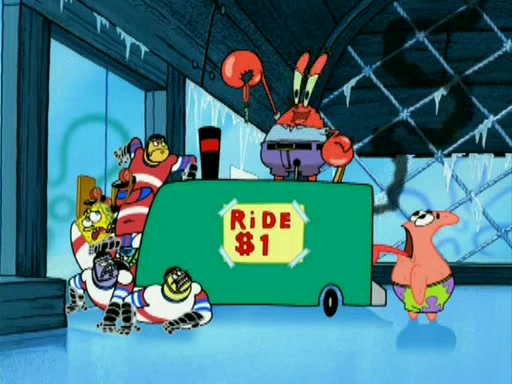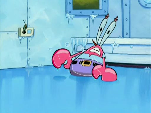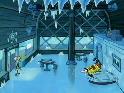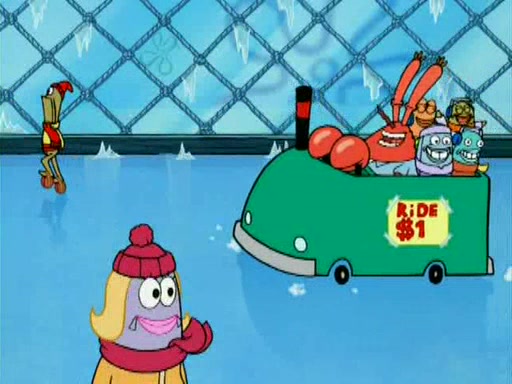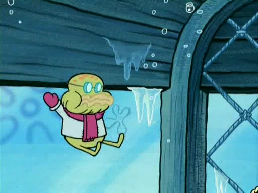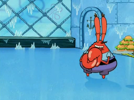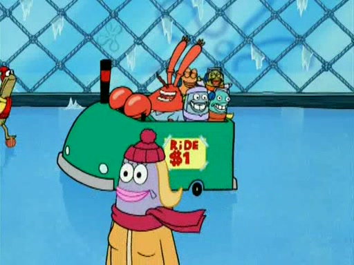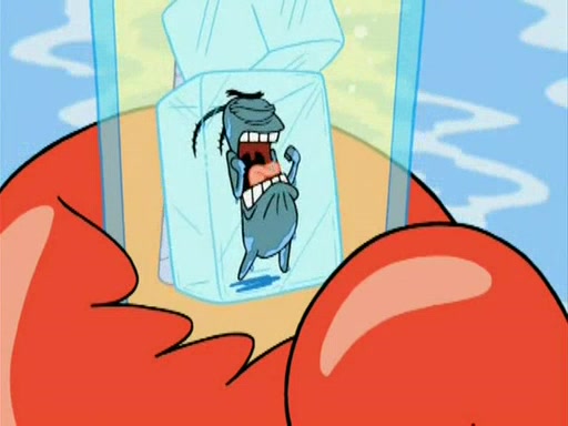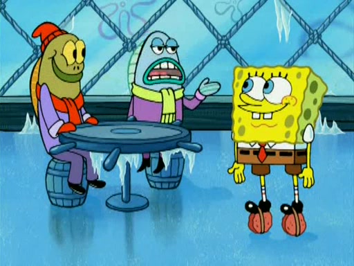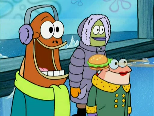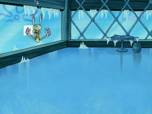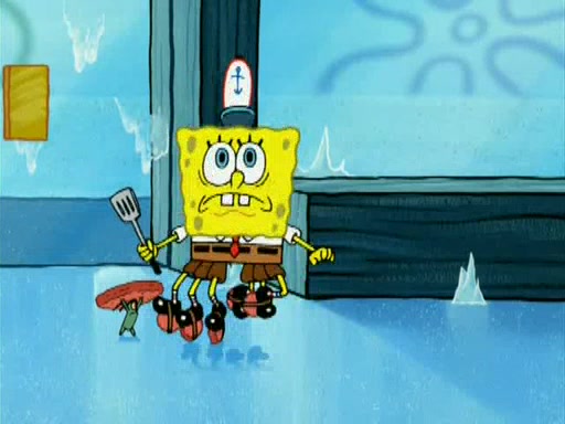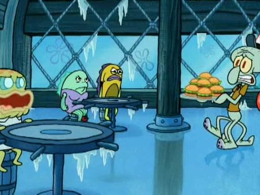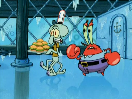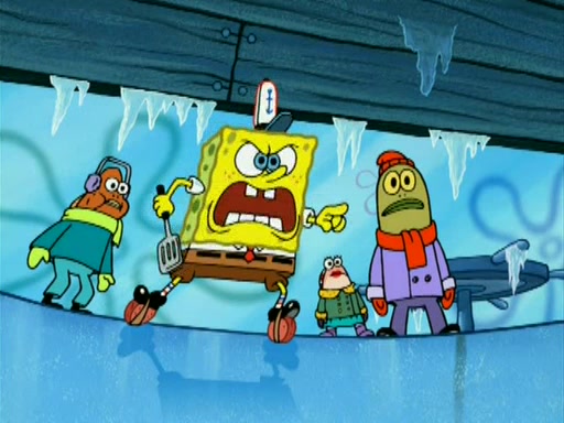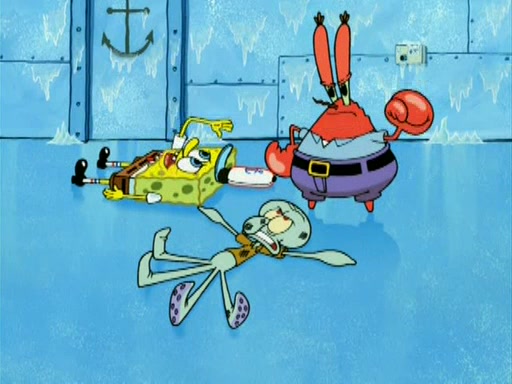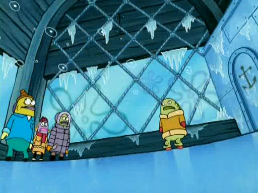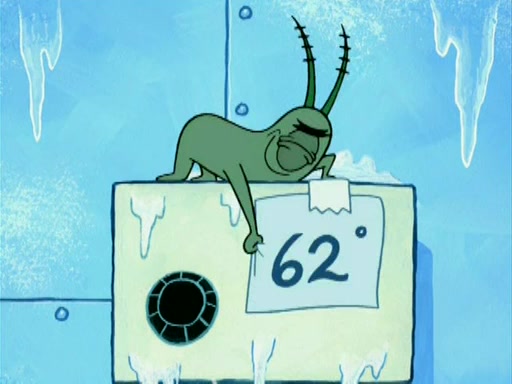 During the freezing cold weather in Bikini Bottom, Squidward complains about the temperature in the Krusty Krab. When Squidward tries to turn up the heat on the thermostat, Mr. Krabs berates him, allowing Plankton to get an idea to freeze his competition out of business. The next morning, Plankton has frozen the Krusty Krab down to -15 degrees, but the customers continue to stay due to the Krabby Patties and the new patty skates SpongeBob invented. Mr. Krabs has turned the restaurant into and ice rink. Karen advises Plankton to swipe a Krabby Patty in the confusion, but SpongeBob and some local hockey players prevent him from escaping. When SpongeBob blocks the doors, Plankton turns to the thermostat, and begins freezing and boiling the patrons. He then gets careless and falls off the dial, allowing Mr. Krabs to freeze him. Later, Mr. Krabs has turned the Krusty Krab into a swimming pool, relaxing on a floating chair, while he thanks Plankton (trapped in a ice cube) for his ideas, and sips lemonade with Plankton as the ice in the drink.