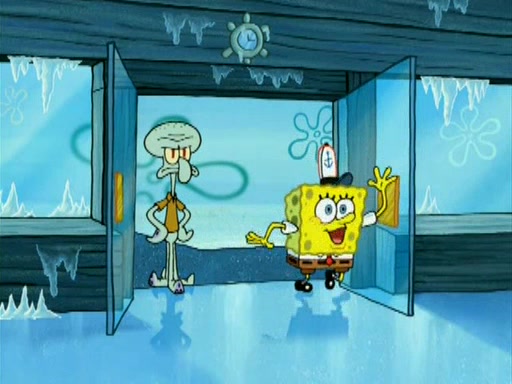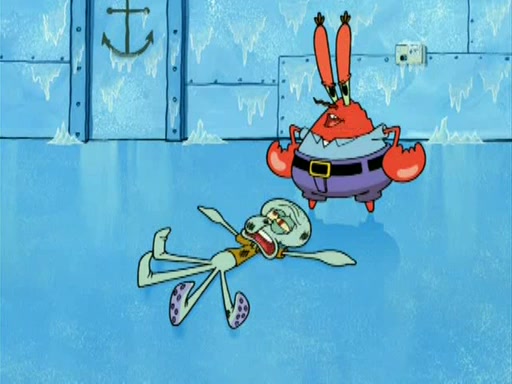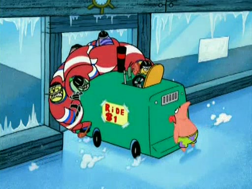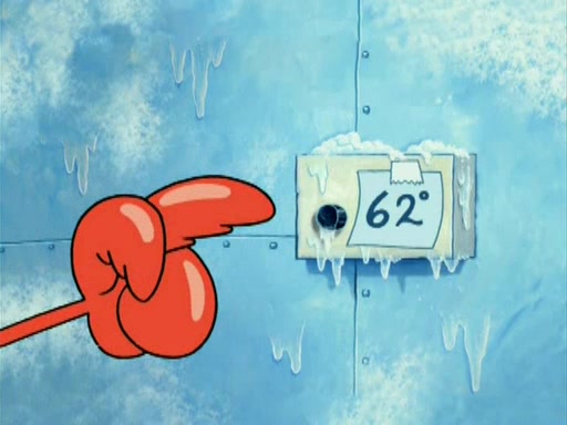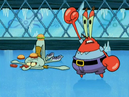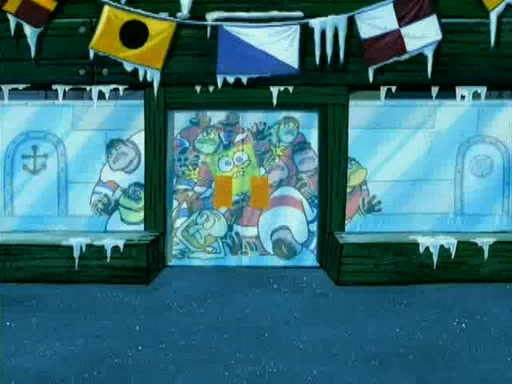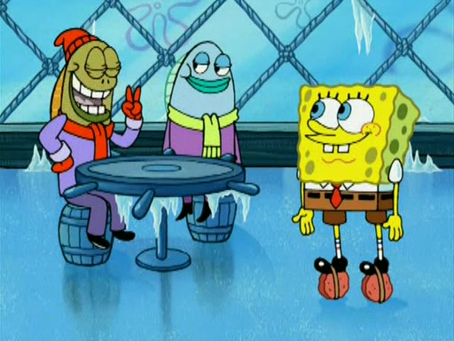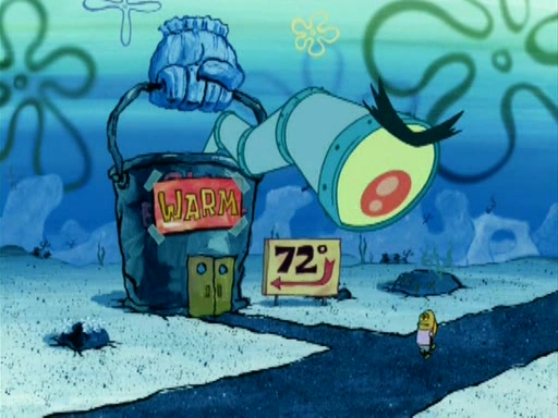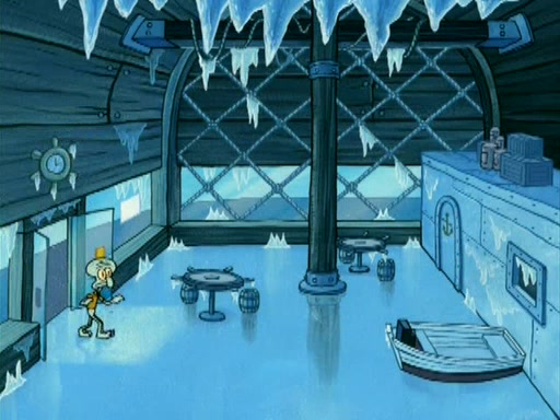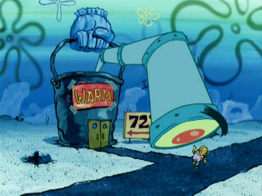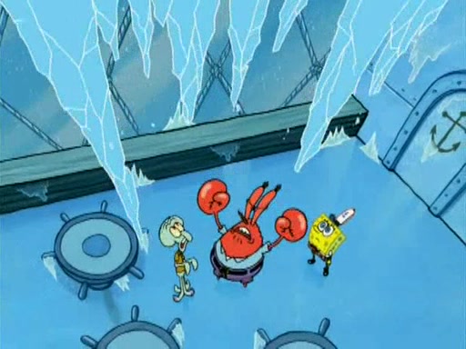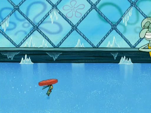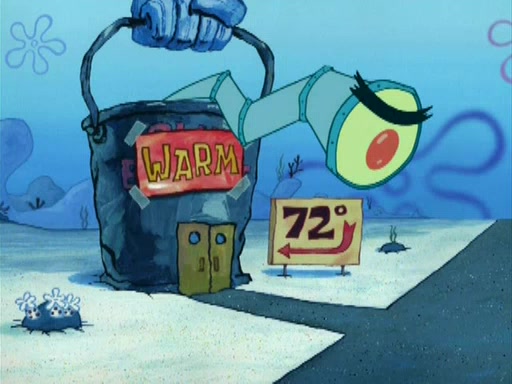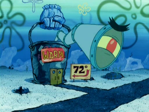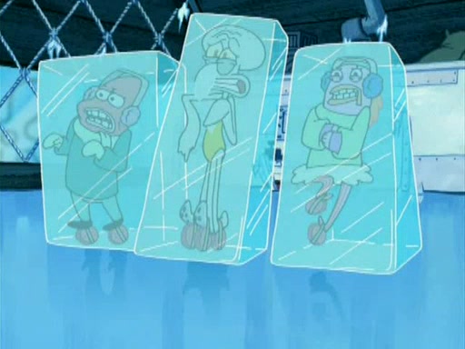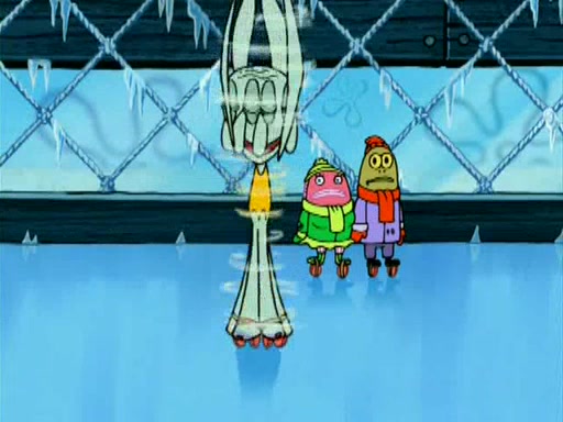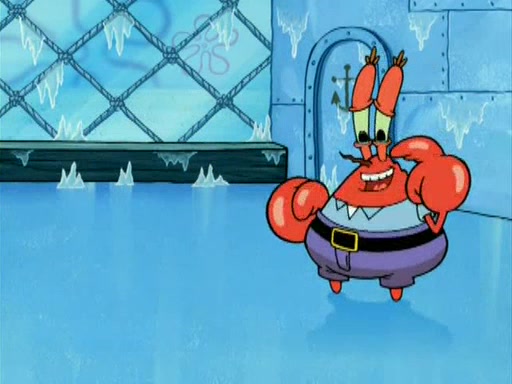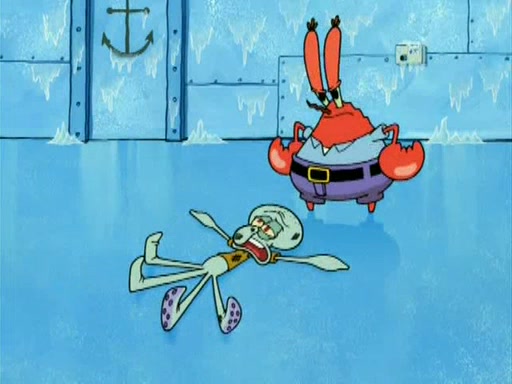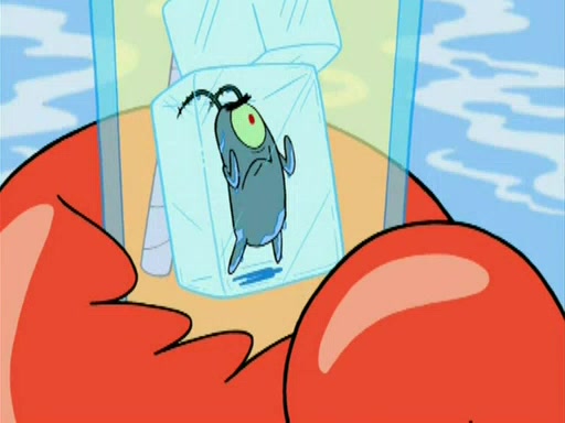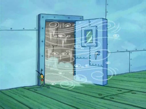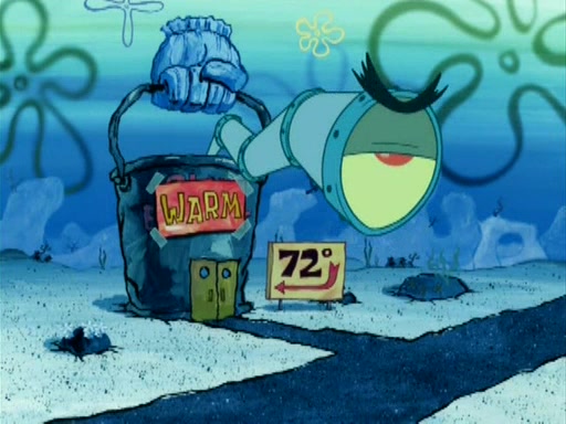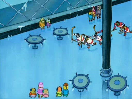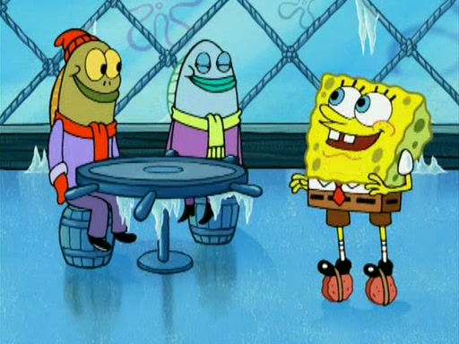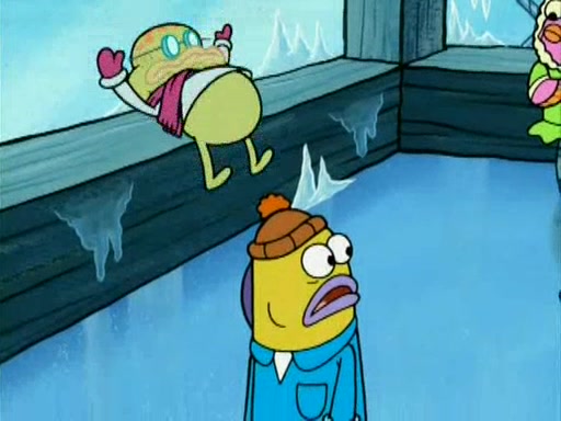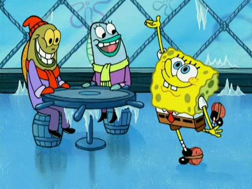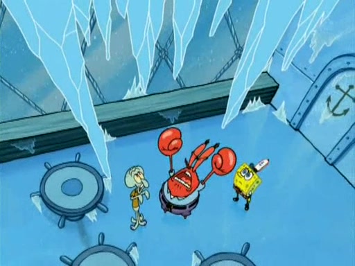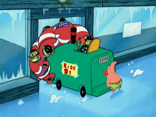 During the freezing cold weather in Bikini Bottom, Squidward complains about the temperature in the Krusty Krab. When Squidward tries to turn up the heat on the thermostat, Mr. Krabs berates him, allowing Plankton to get an idea to freeze his competition out of business. The next morning, Plankton has frozen the Krusty Krab down to -15 degrees, but the customers continue to stay due to the Krabby Patties and the new patty skates SpongeBob invented. Mr. Krabs has turned the restaurant into and ice rink. Karen advises Plankton to swipe a Krabby Patty in the confusion, but SpongeBob and some local hockey players prevent him from escaping. When SpongeBob blocks the doors, Plankton turns to the thermostat, and begins freezing and boiling the patrons. He then gets careless and falls off the dial, allowing Mr. Krabs to freeze him. Later, Mr. Krabs has turned the Krusty Krab into a swimming pool, relaxing on a floating chair, while he thanks Plankton (trapped in a ice cube) for his ideas, and sips lemonade with Plankton as the ice in the drink.