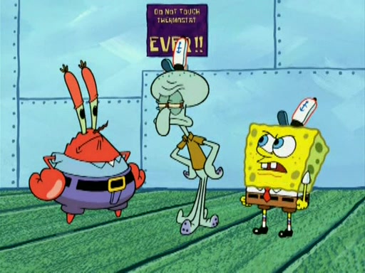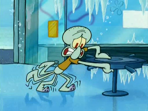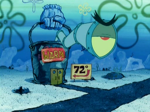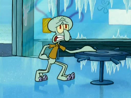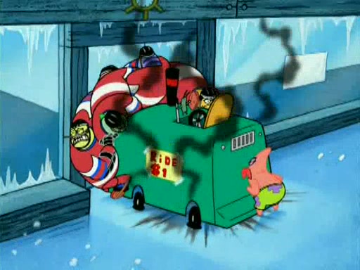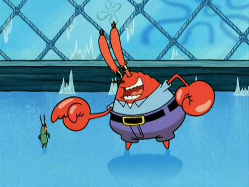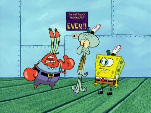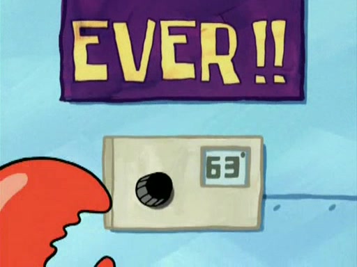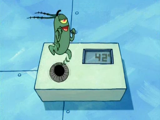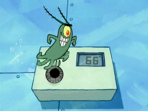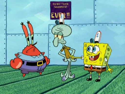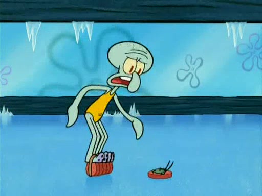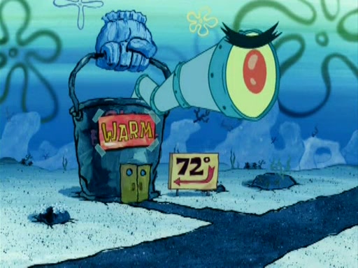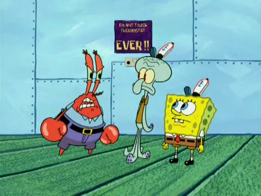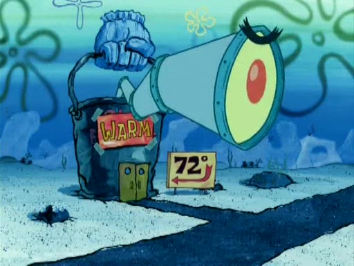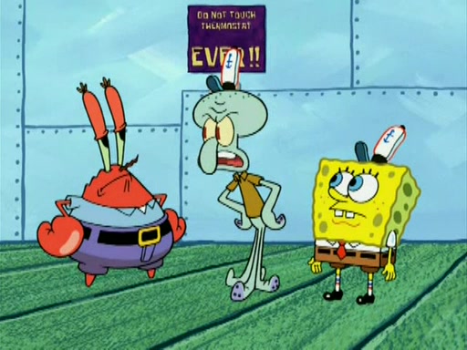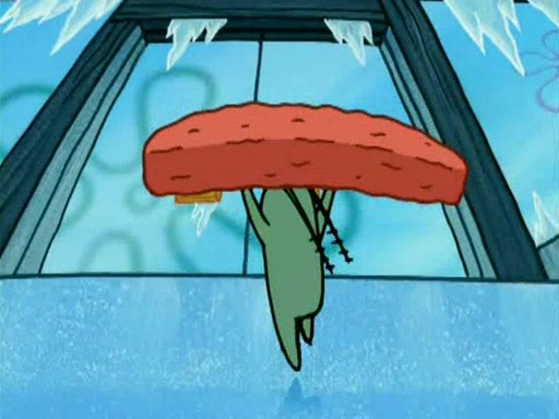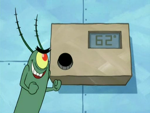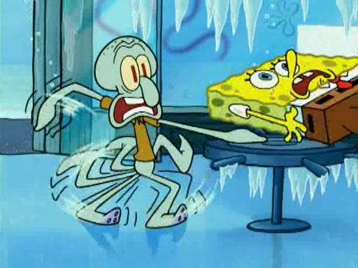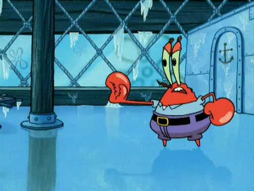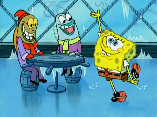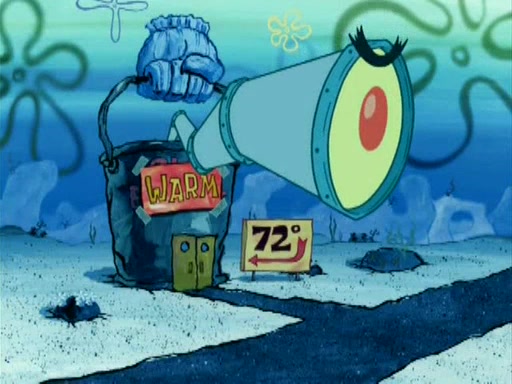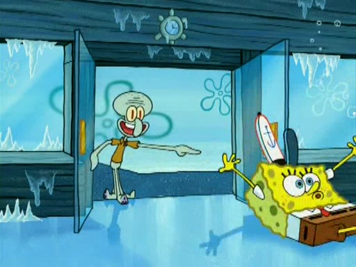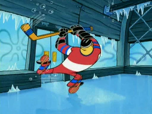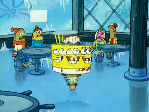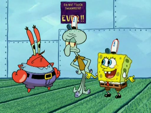 During the freezing cold weather in Bikini Bottom, Squidward complains about the temperature in the Krusty Krab. When Squidward tries to turn up the heat on the thermostat, Mr. Krabs berates him, allowing Plankton to get an idea to freeze his competition out of business. The next morning, Plankton has frozen the Krusty Krab down to -15 degrees, but the customers continue to stay due to the Krabby Patties and the new patty skates SpongeBob invented. Mr. Krabs has turned the restaurant into and ice rink. Karen advises Plankton to swipe a Krabby Patty in the confusion, but SpongeBob and some local hockey players prevent him from escaping. When SpongeBob blocks the doors, Plankton turns to the thermostat, and begins freezing and boiling the patrons. He then gets careless and falls off the dial, allowing Mr. Krabs to freeze him. Later, Mr. Krabs has turned the Krusty Krab into a swimming pool, relaxing on a floating chair, while he thanks Plankton (trapped in a ice cube) for his ideas, and sips lemonade with Plankton as the ice in the drink.
