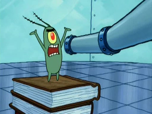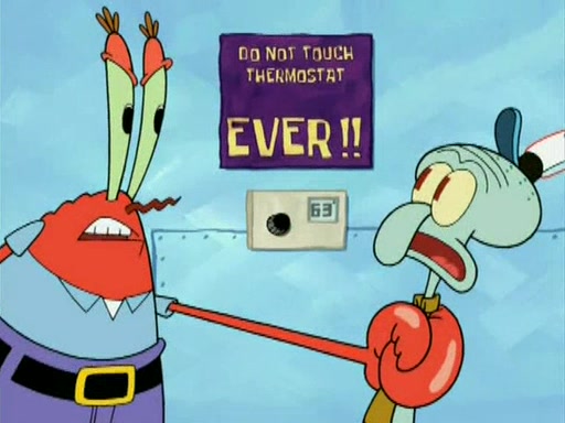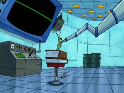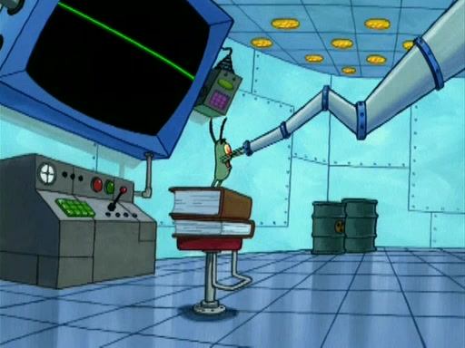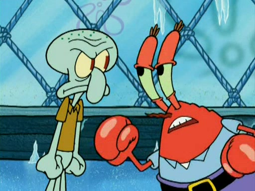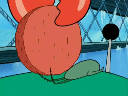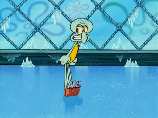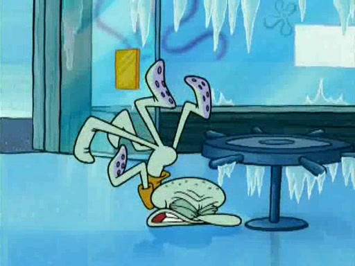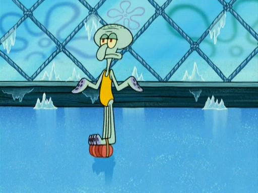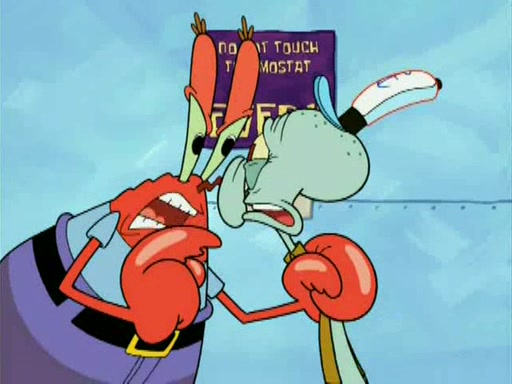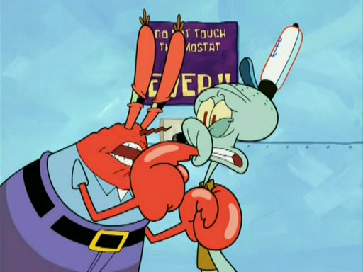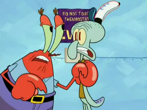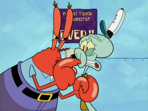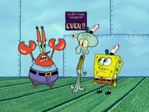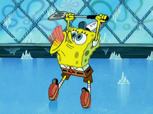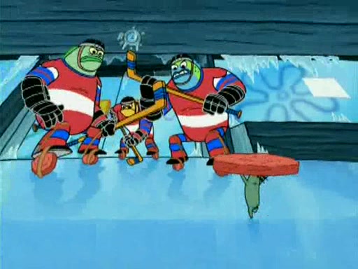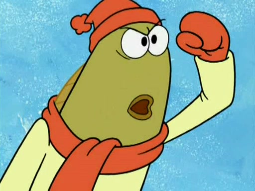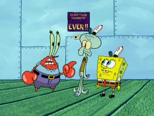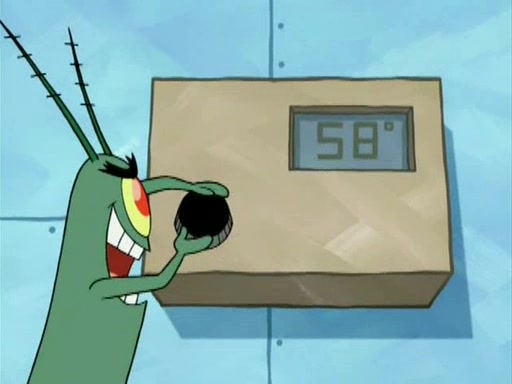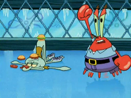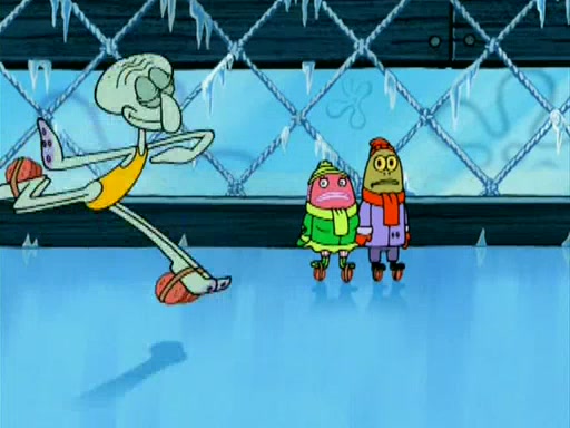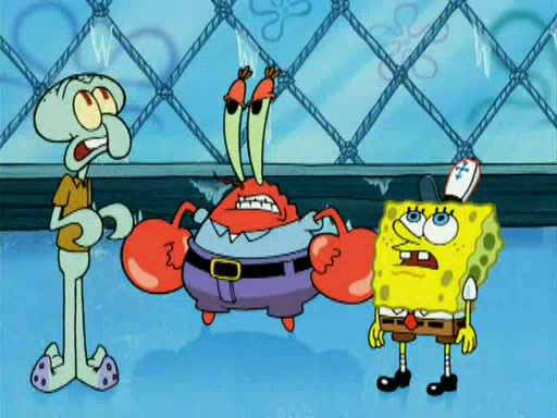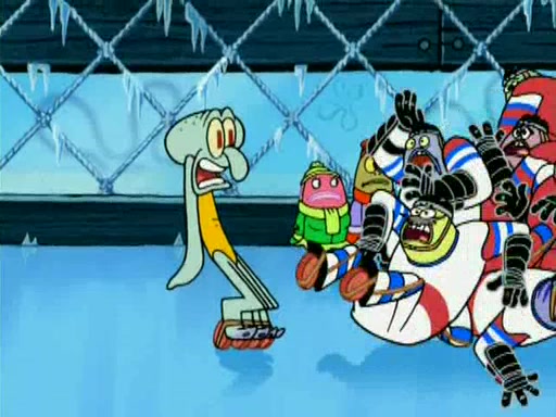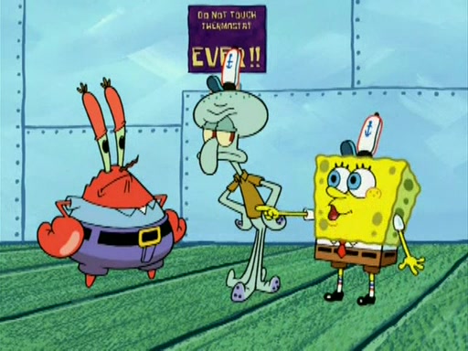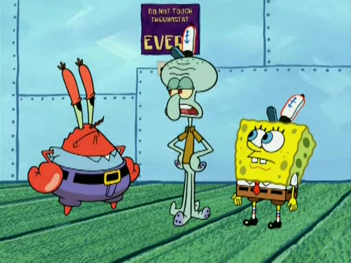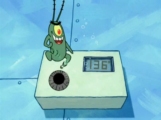 During the freezing cold weather in Bikini Bottom, Squidward complains about the temperature in the Krusty Krab. When Squidward tries to turn up the heat on the thermostat, Mr. Krabs berates him, allowing Plankton to get an idea to freeze his competition out of business. The next morning, Plankton has frozen the Krusty Krab down to -15 degrees, but the customers continue to stay due to the Krabby Patties and the new patty skates SpongeBob invented. Mr. Krabs has turned the restaurant into and ice rink. Karen advises Plankton to swipe a Krabby Patty in the confusion, but SpongeBob and some local hockey players prevent him from escaping. When SpongeBob blocks the doors, Plankton turns to the thermostat, and begins freezing and boiling the patrons. He then gets careless and falls off the dial, allowing Mr. Krabs to freeze him. Later, Mr. Krabs has turned the Krusty Krab into a swimming pool, relaxing on a floating chair, while he thanks Plankton (trapped in a ice cube) for his ideas, and sips lemonade with Plankton as the ice in the drink.