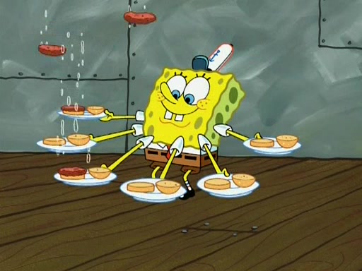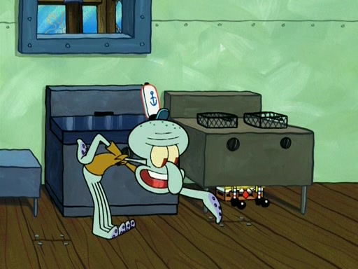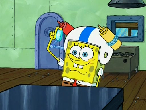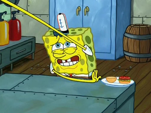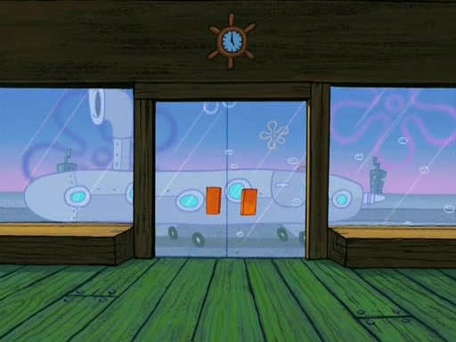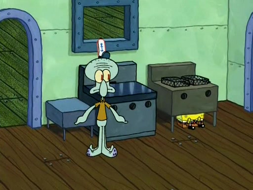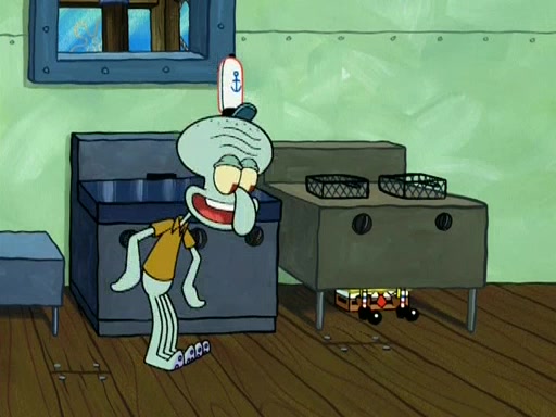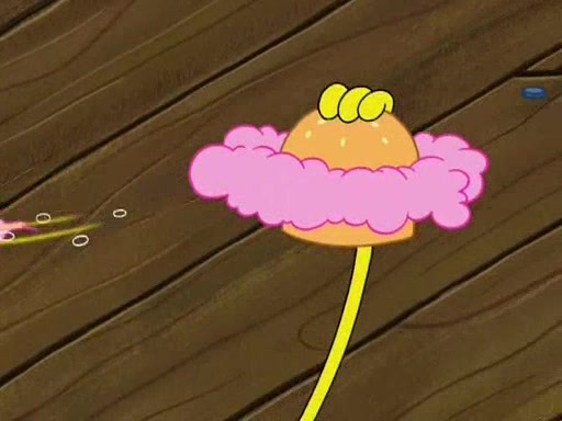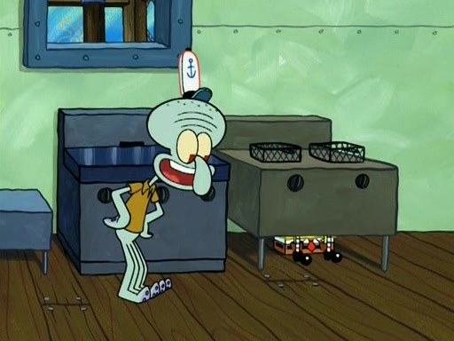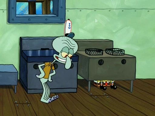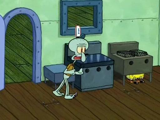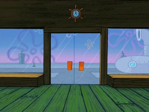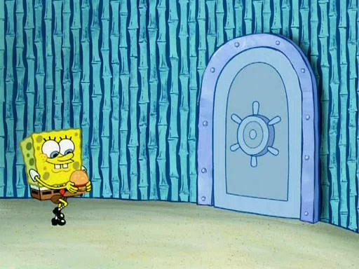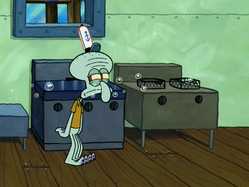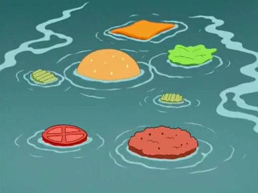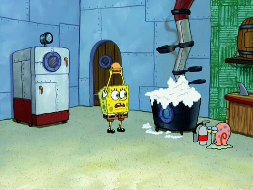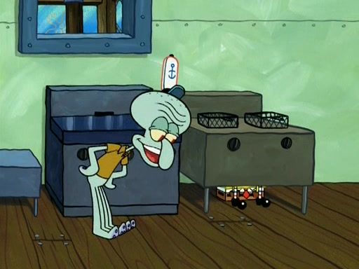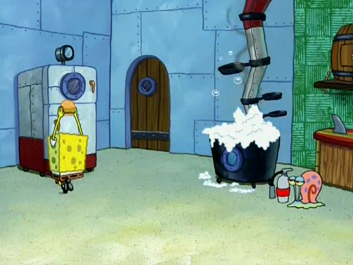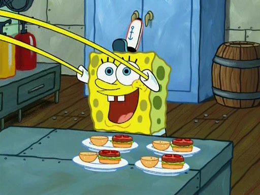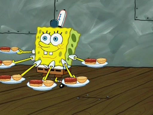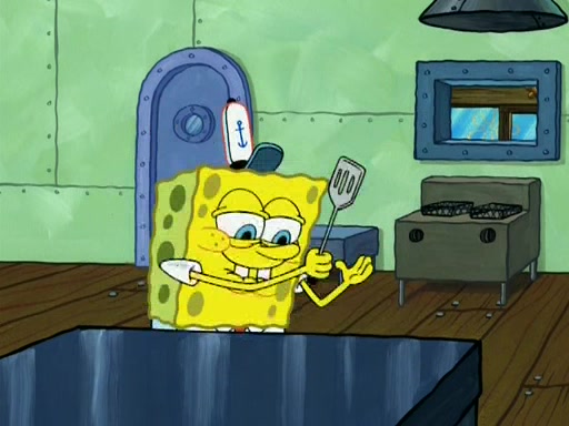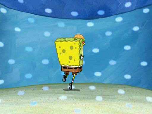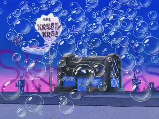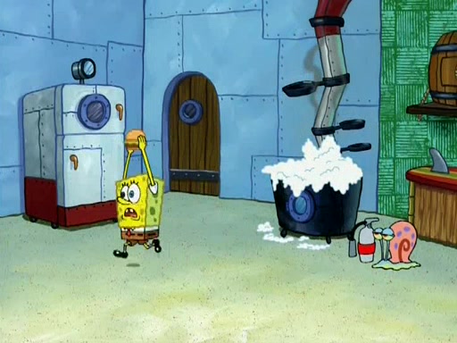 At the Krusty Krab, SpongeBob is seen cooking Krabby Patties. He makes several Krabby Patties and falls in love with one, naming it "Patty." The patties are taken to customers who start wolfing down on the food. Consumed by guilt, SpongeBob rescues Patty by replacing her with a shoe.