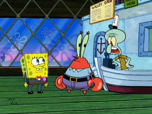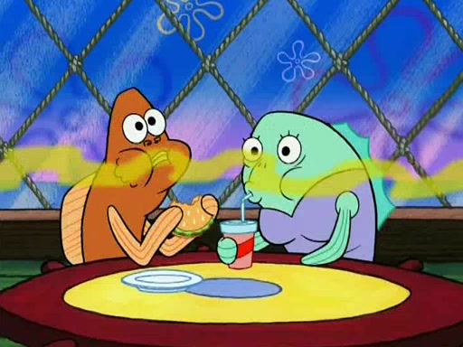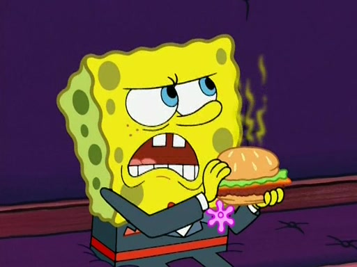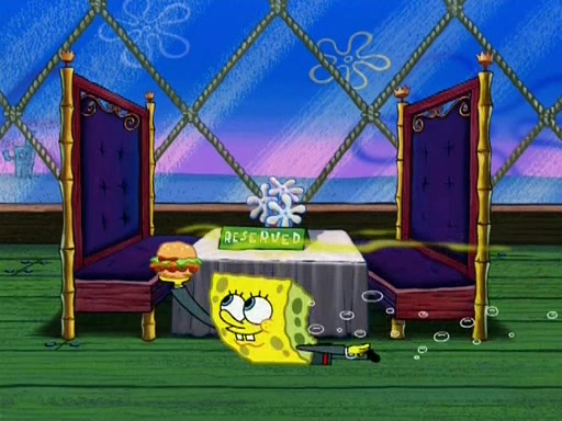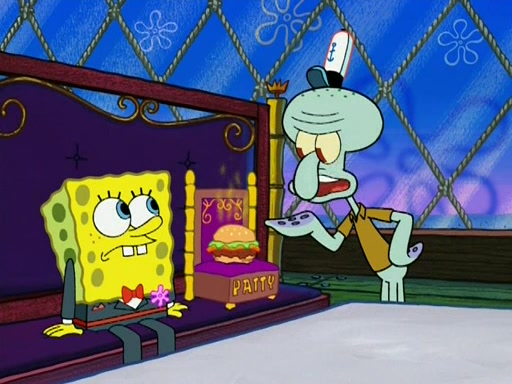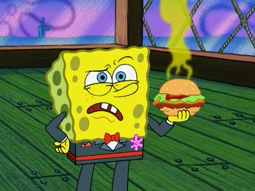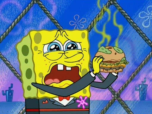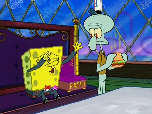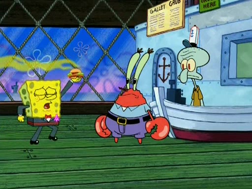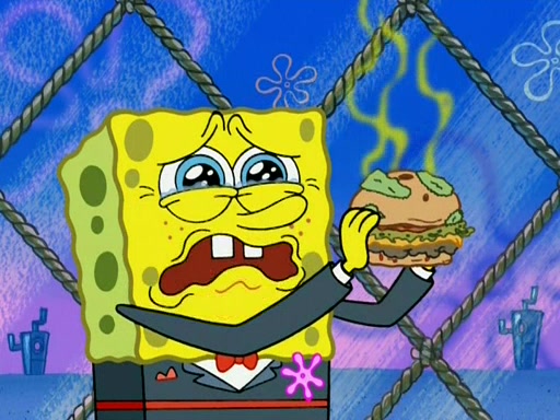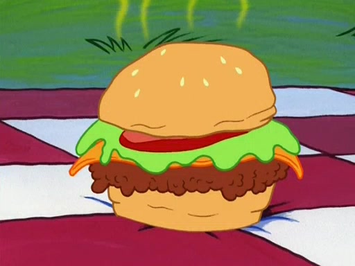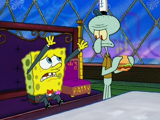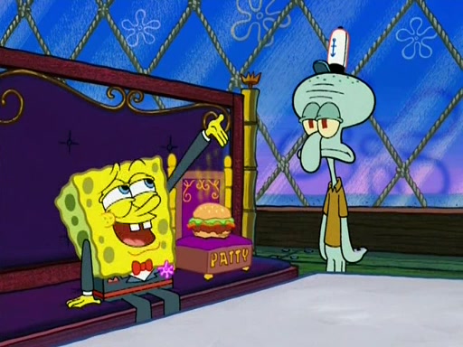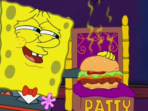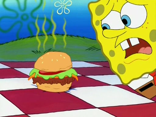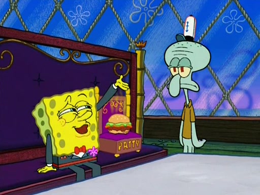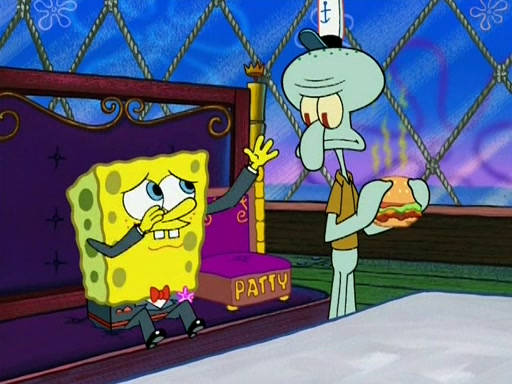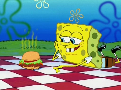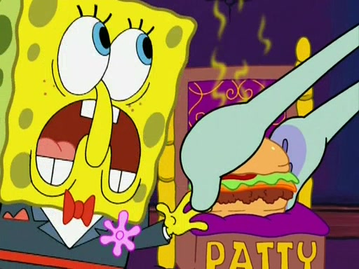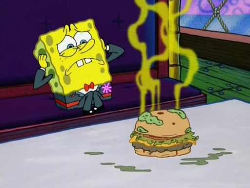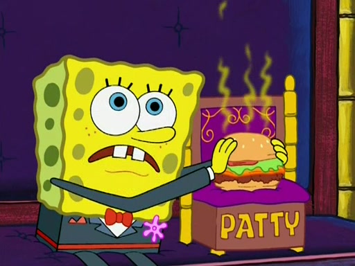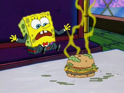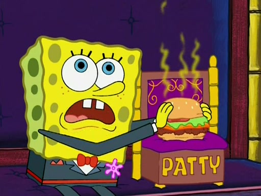Six hours later, the patty has spoiled. Oblivious to this, SpongeBob decides to take it on a date. Later at the Krusty Krab, SpongeBob informs Mr. Krabs about his date. Mr. Krabs thinks he is dating a girl, and finds it strange when he discovers the date is a Krabby Patty. At a point during the date, Squidward tries to tell SpongeBob that his date is just a rotten Krabby Patty. SpongeBob still thinks Patty is beautiful until he smells her, then sees the hideous appearance of the spoiled patty.