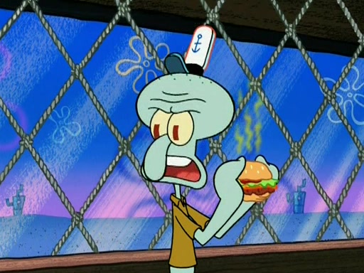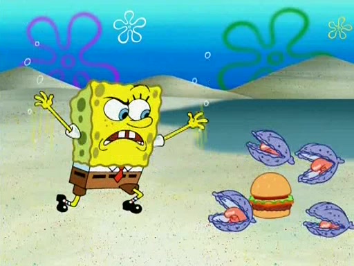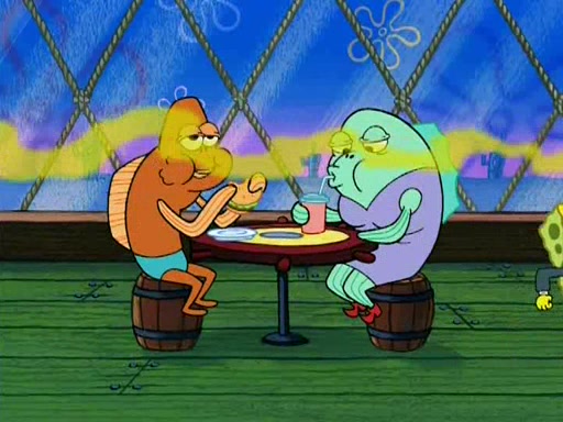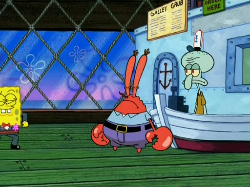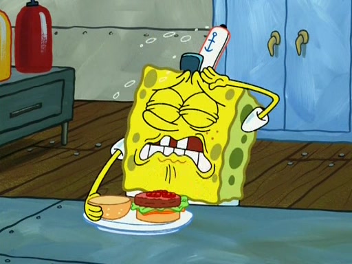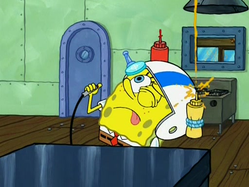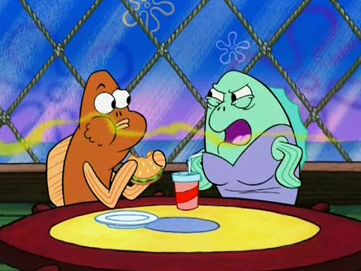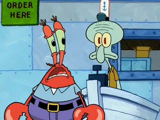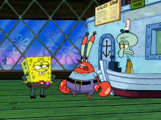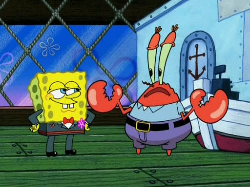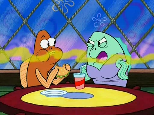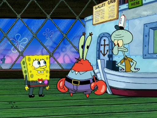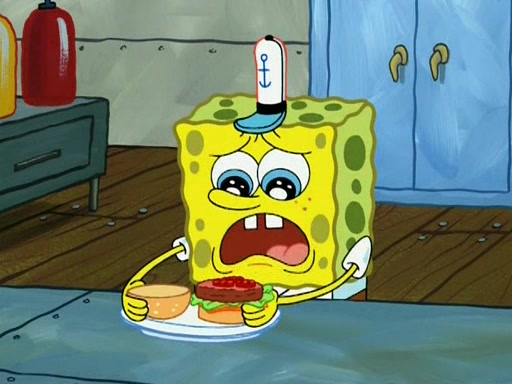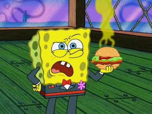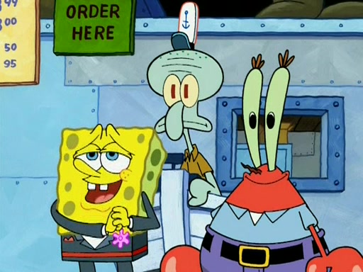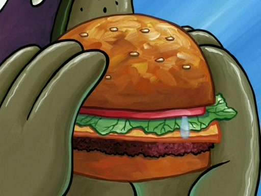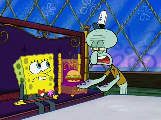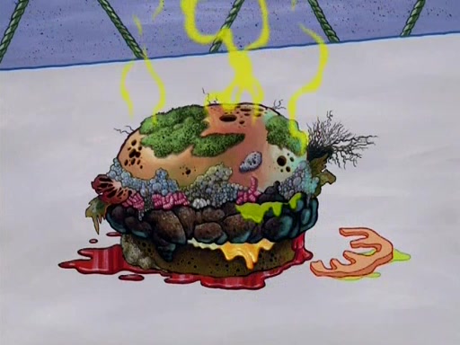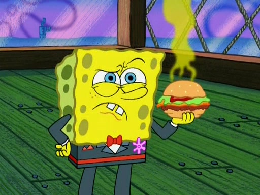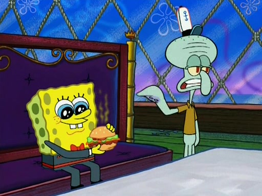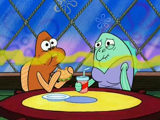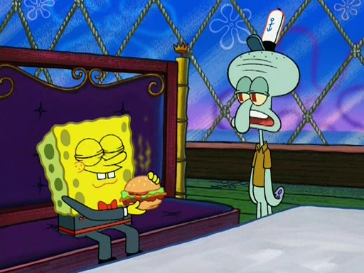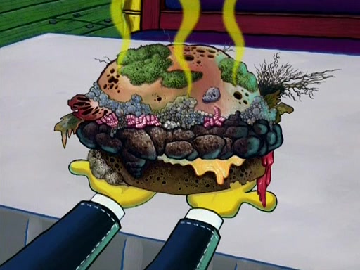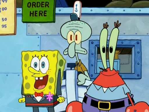 Six hours later, the patty has spoiled. Oblivious to this, SpongeBob decides to take it on a date. Later at the Krusty Krab, SpongeBob informs Mr. Krabs about his date. Mr. Krabs thinks he is dating a girl, and finds it strange when he discovers the date is a Krabby Patty. At a point during the date, Squidward tries to tell SpongeBob that his date is just a rotten Krabby Patty. SpongeBob still thinks Patty is beautiful until he smells her, then sees the hideous appearance of the spoiled patty.