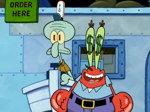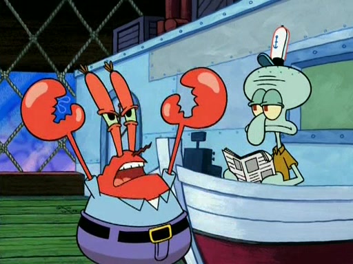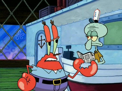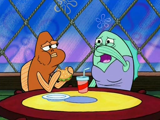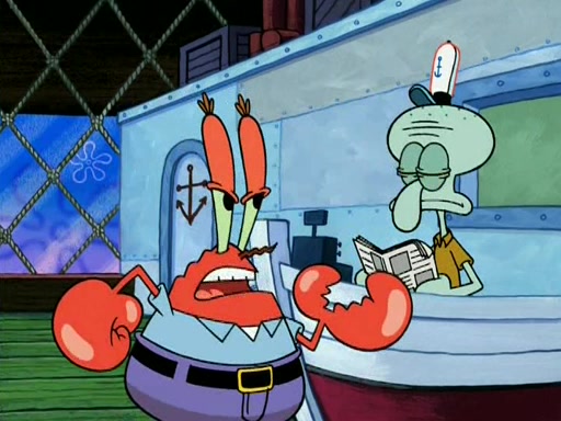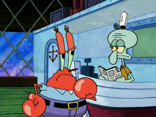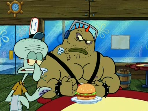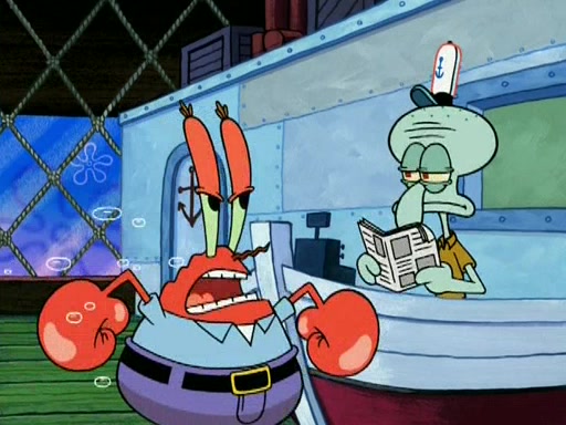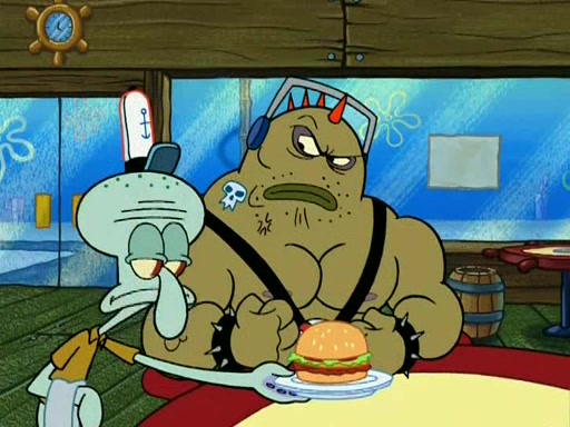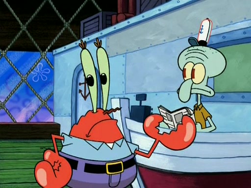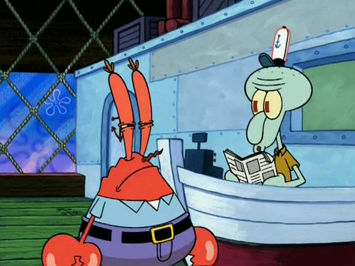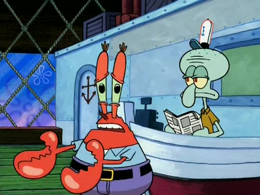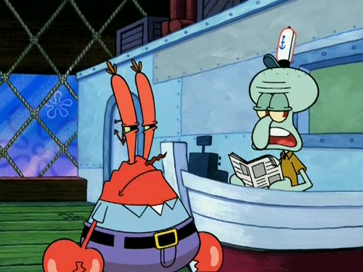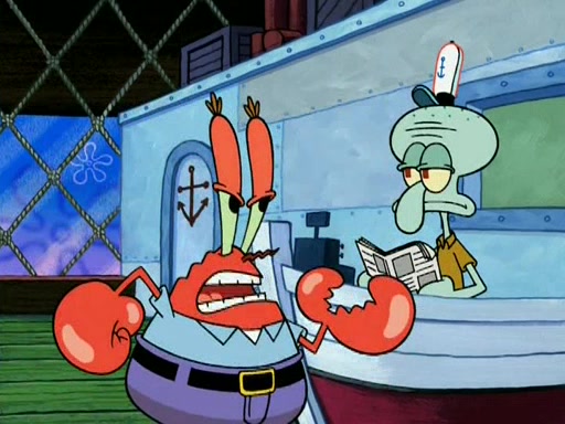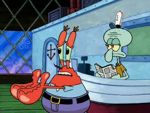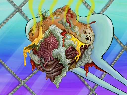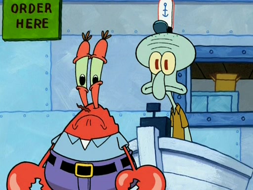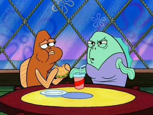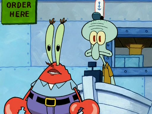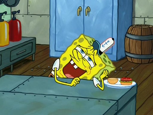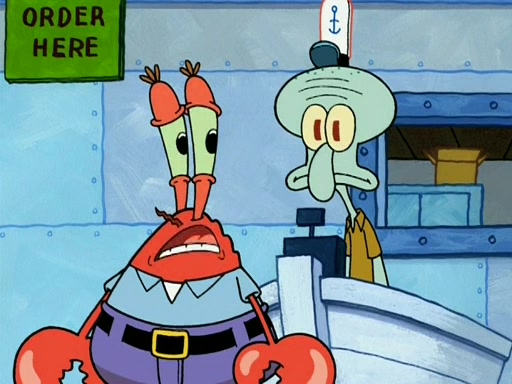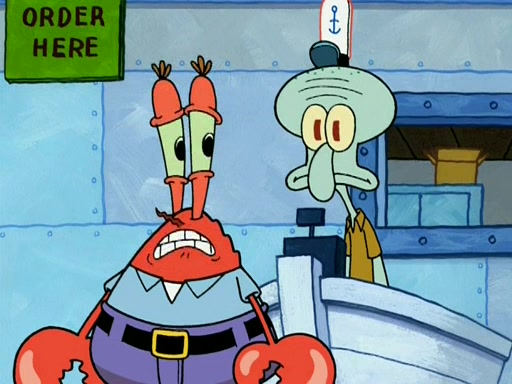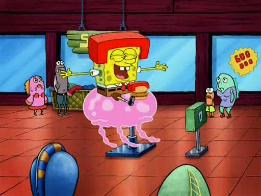 Six hours later, the patty has spoiled. Oblivious to this, SpongeBob decides to take it on a date. Later at the Krusty Krab, SpongeBob informs Mr. Krabs about his date. Mr. Krabs thinks he is dating a girl, and finds it strange when he discovers the date is a Krabby Patty. At a point during the date, Squidward tries to tell SpongeBob that his date is just a rotten Krabby Patty. SpongeBob still thinks Patty is beautiful until he smells her, then sees the hideous appearance of the spoiled patty.