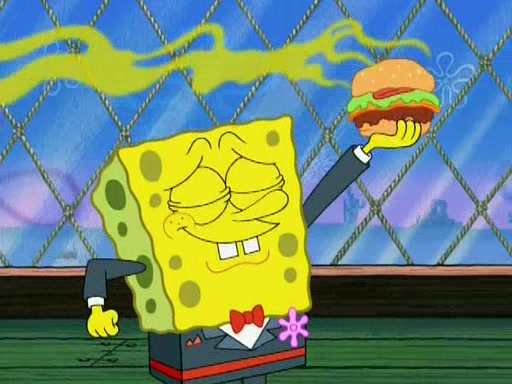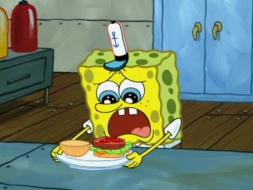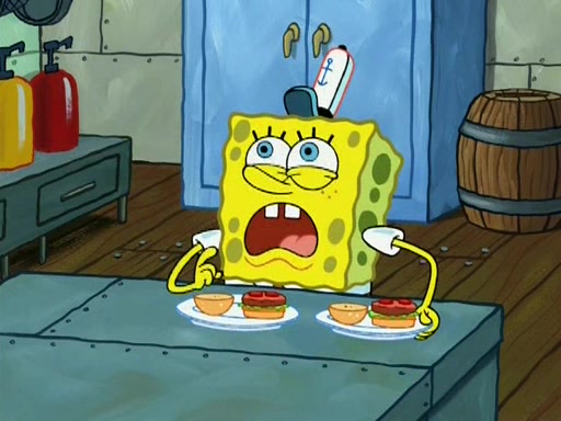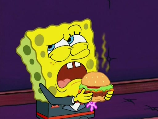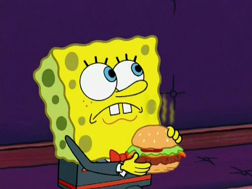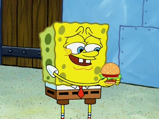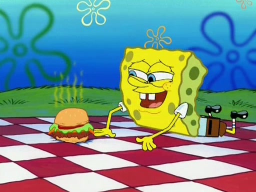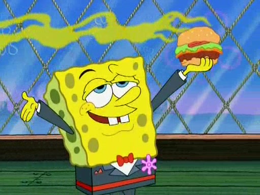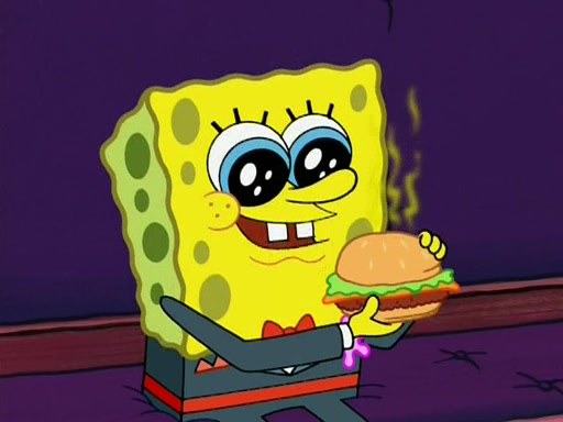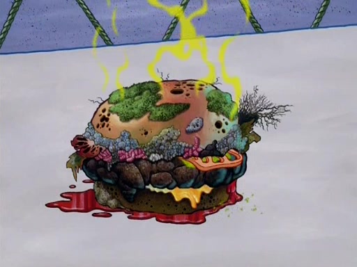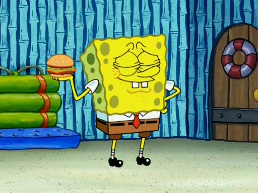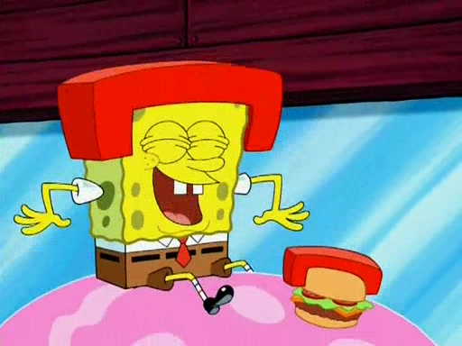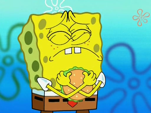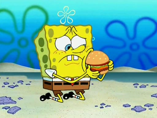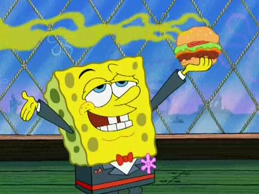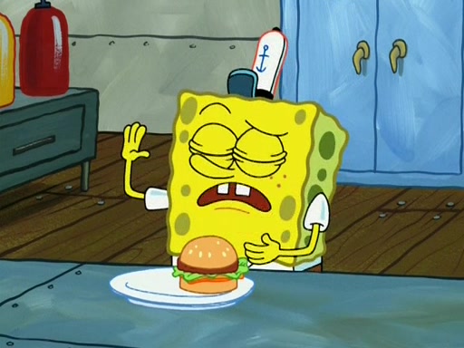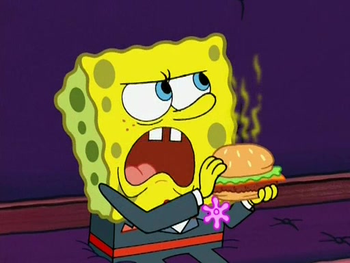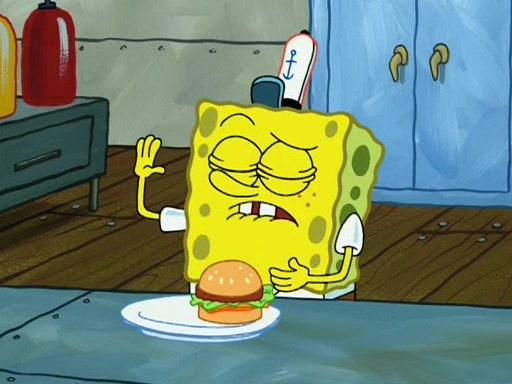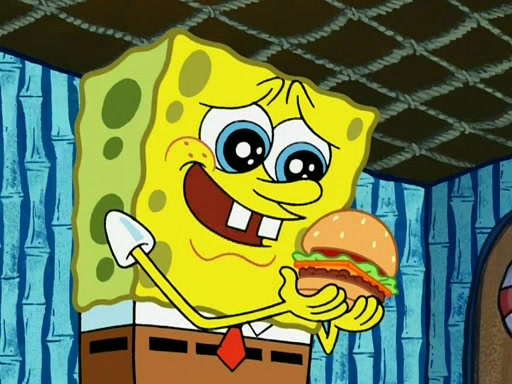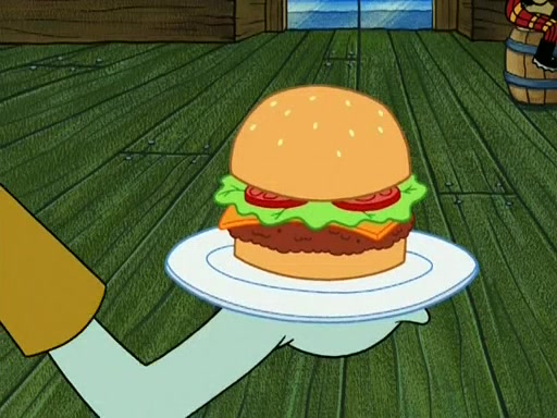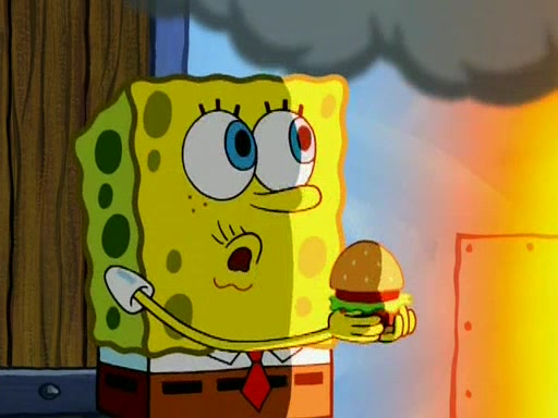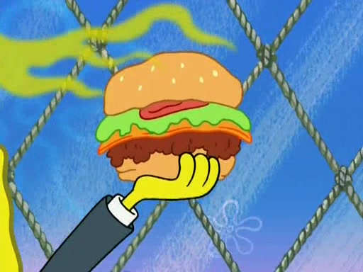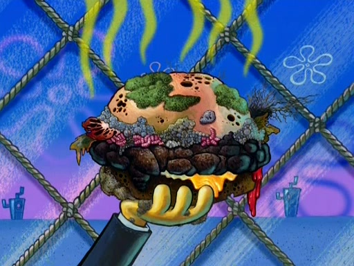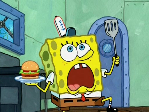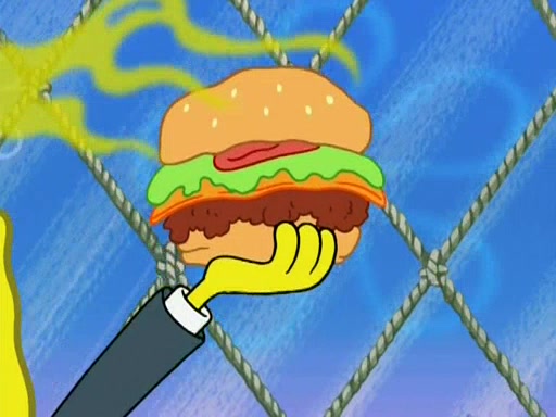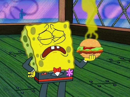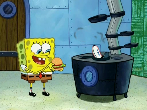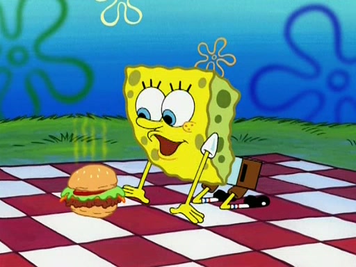 SpongeBob questions how this came to be. Mr. Krabs tells the fry cook that he once fell in love with a Krabby Patty. He then tells SpongeBob that Krabby Patties are meant to be loved and eaten. SpongeBob finally knows what he must do and eats his date, feeling nauseous afterward. The episode ends with SpongeBob asking for a doggie bag.