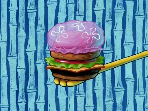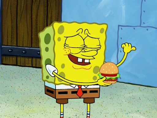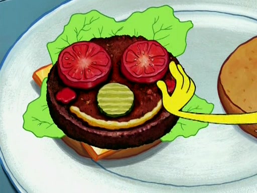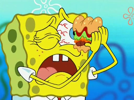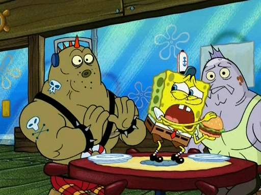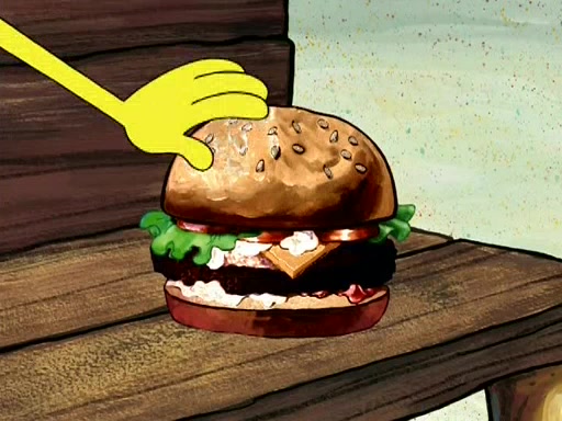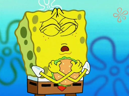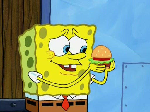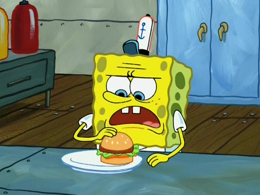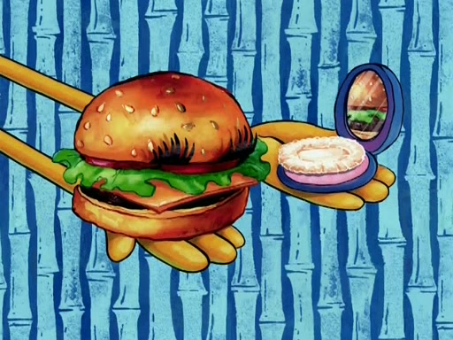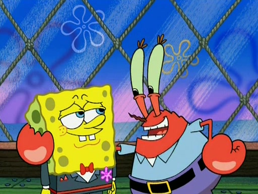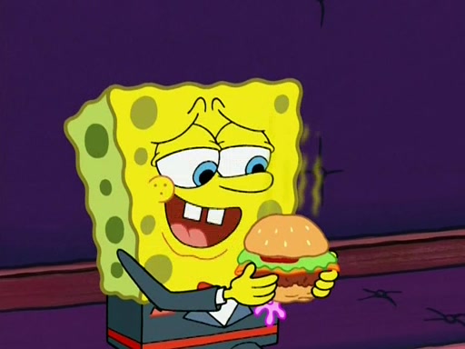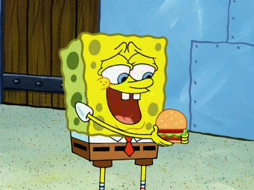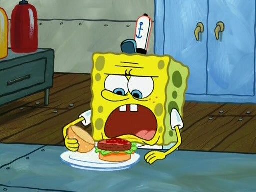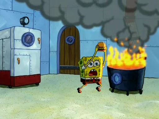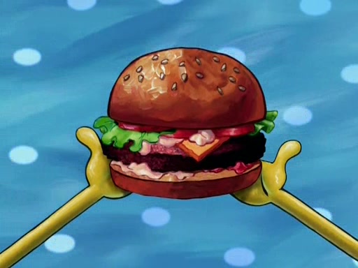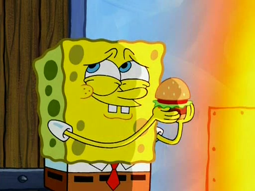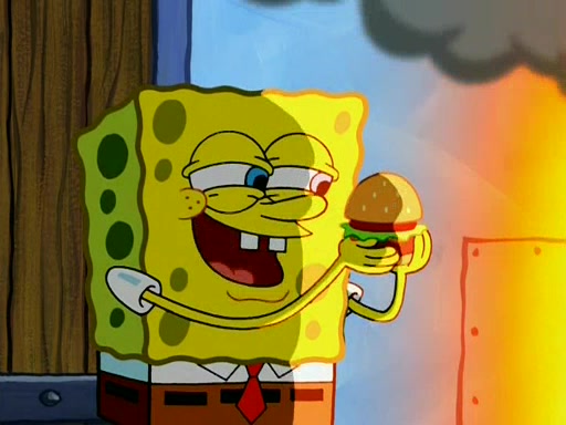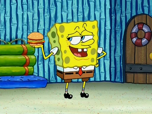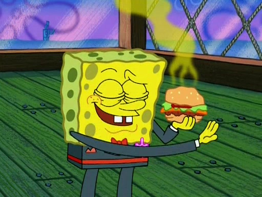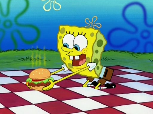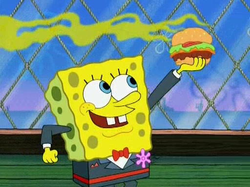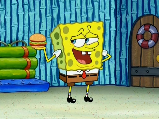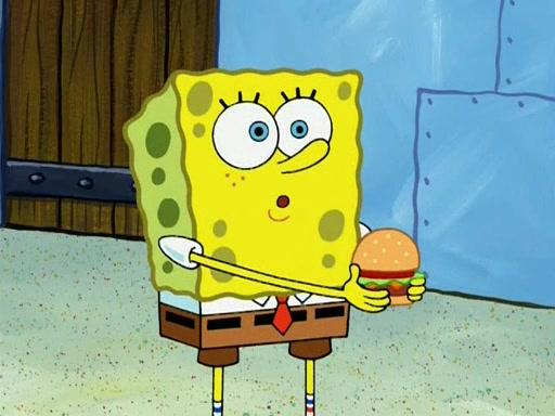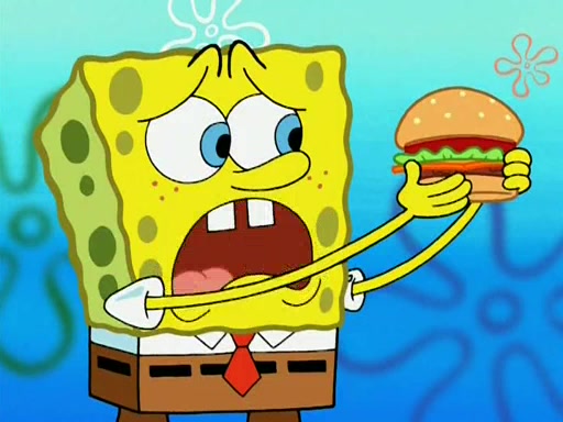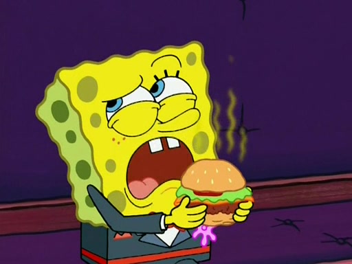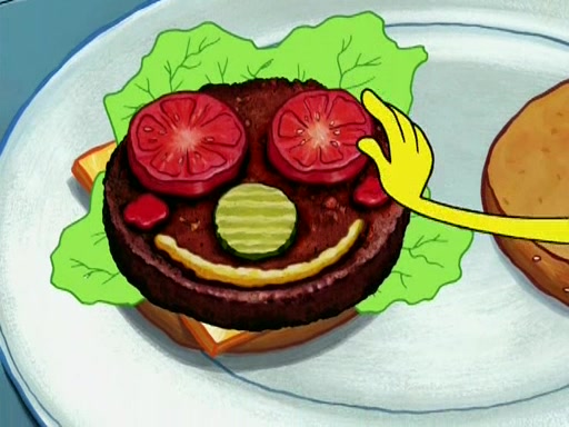 SpongeBob questions how this came to be. Mr. Krabs tells the fry cook that he once fell in love with a Krabby Patty. He then tells SpongeBob that Krabby Patties are meant to be loved and eaten. SpongeBob finally knows what he must do and eats his date, feeling nauseous afterward. The episode ends with SpongeBob asking for a doggie bag.