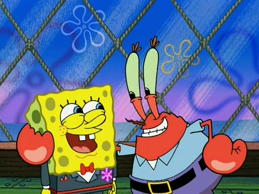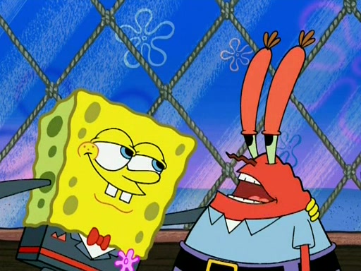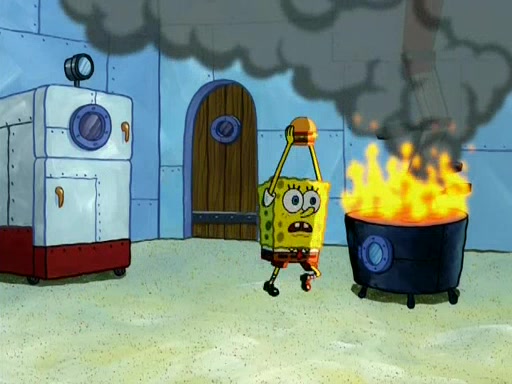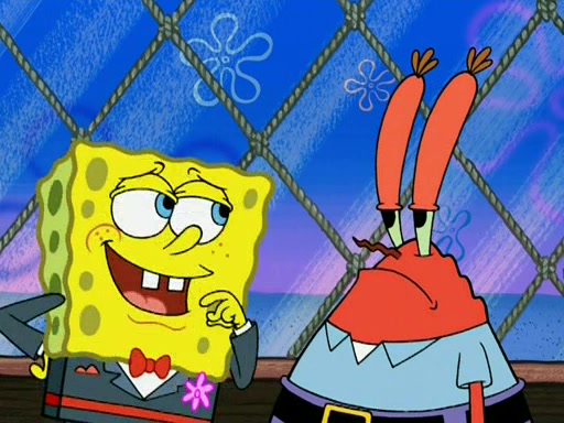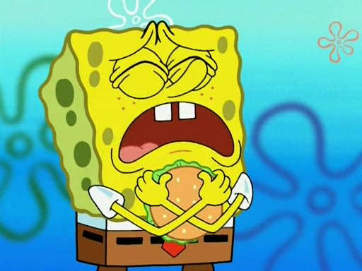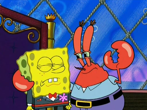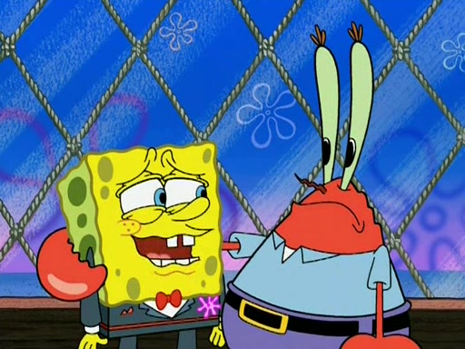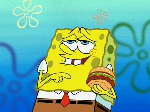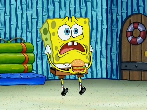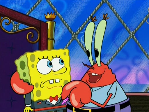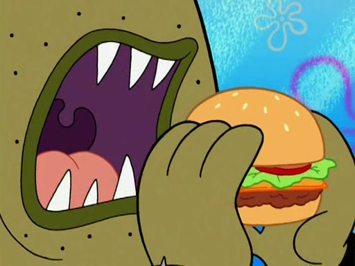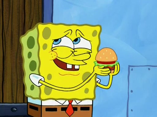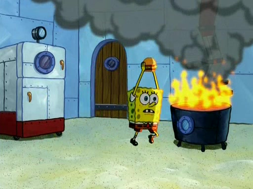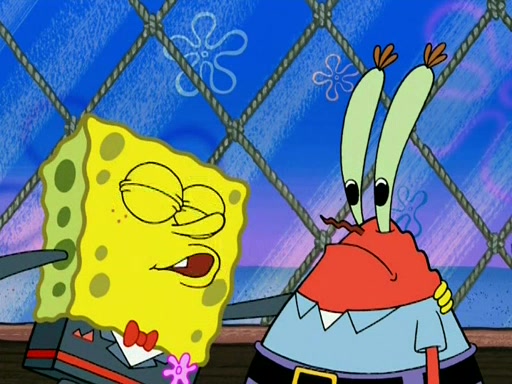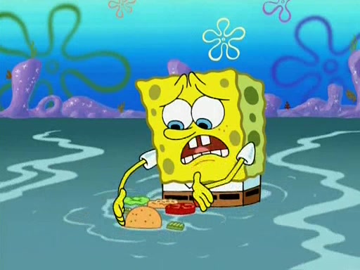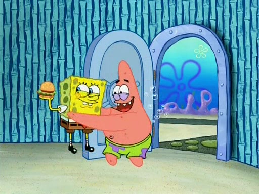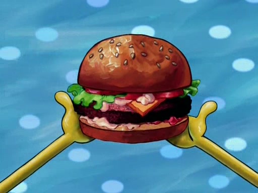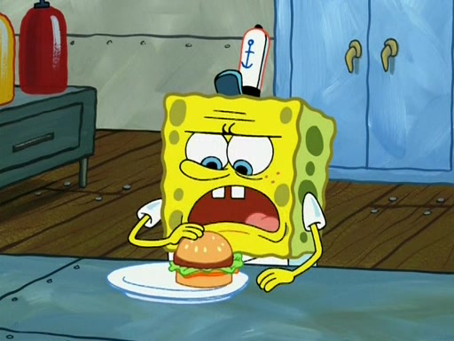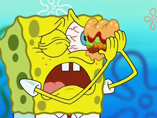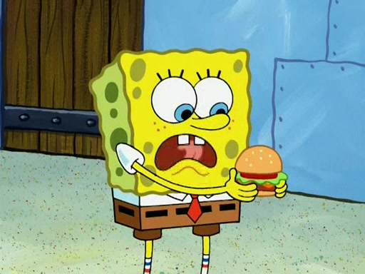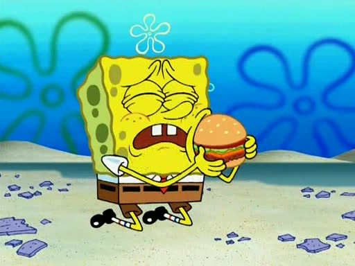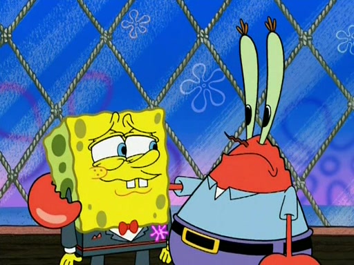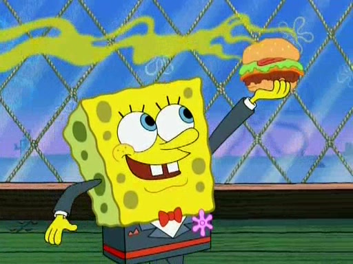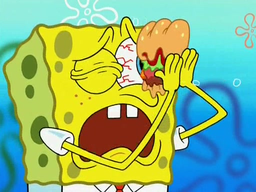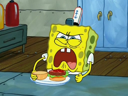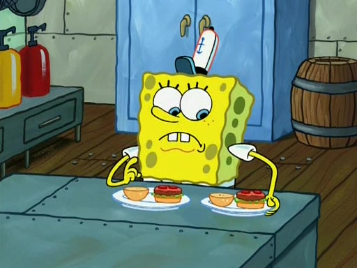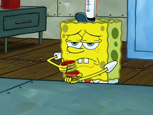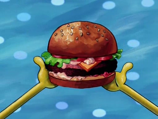 SpongeBob questions how this came to be. Mr. Krabs tells the fry cook that he once fell in love with a Krabby Patty. He then tells SpongeBob that Krabby Patties are meant to be loved and eaten. SpongeBob finally knows what he must do and eats his date, feeling nauseous afterward. The episode ends with SpongeBob asking for a doggie bag.