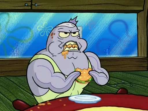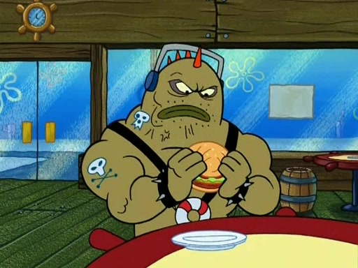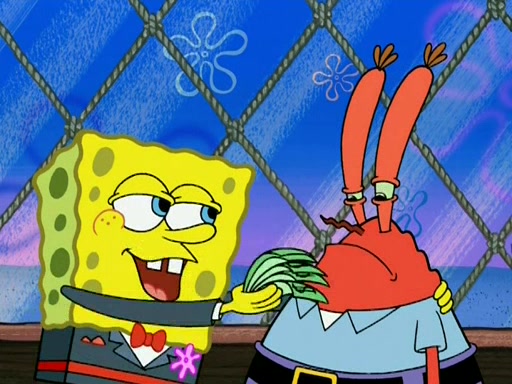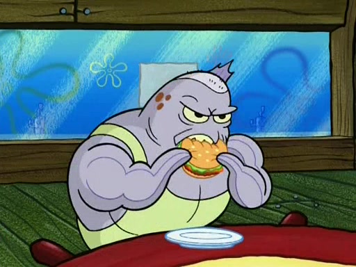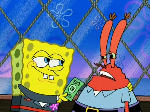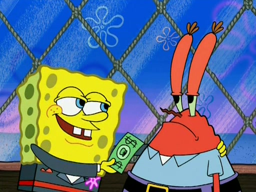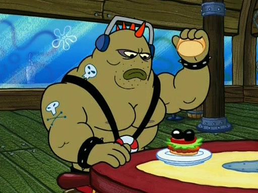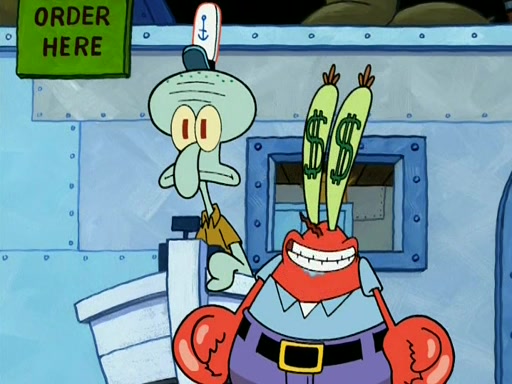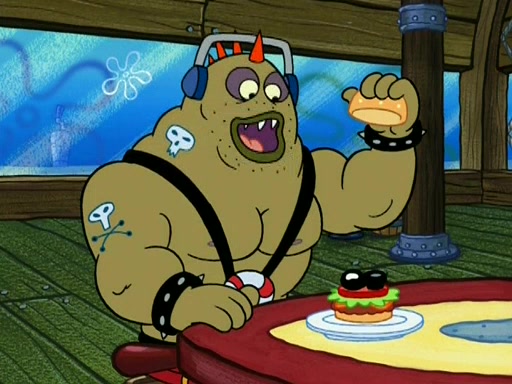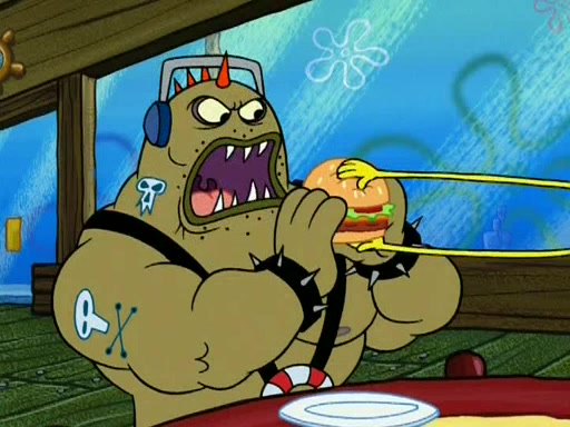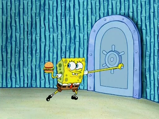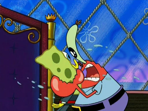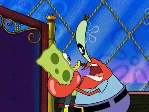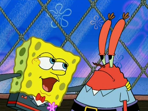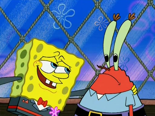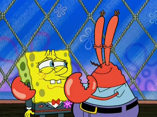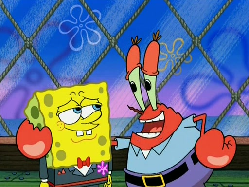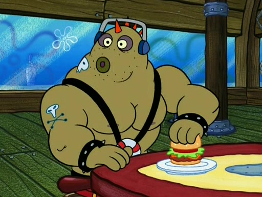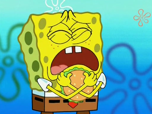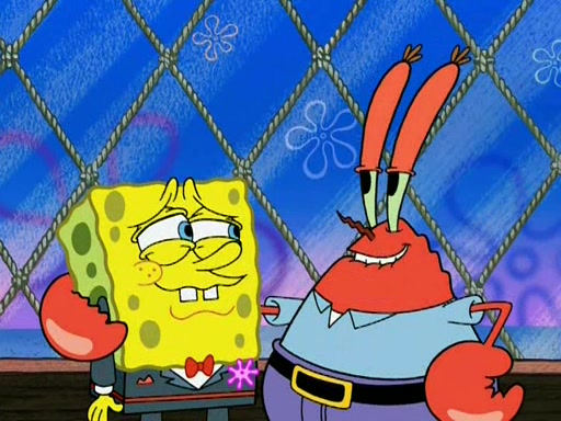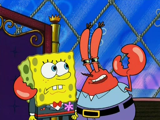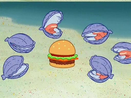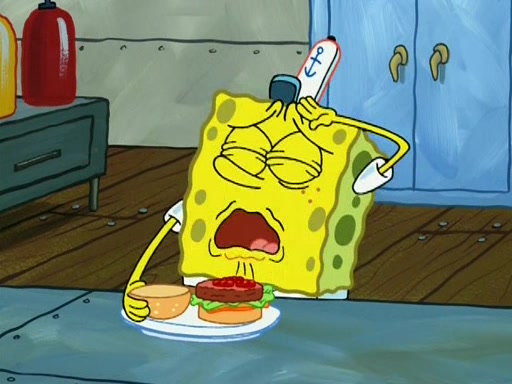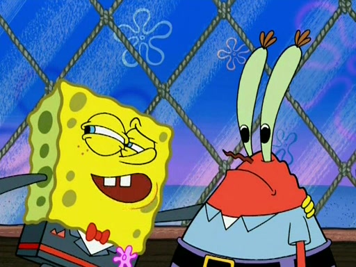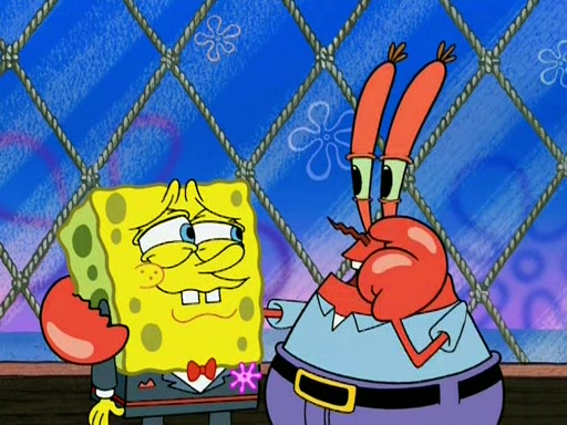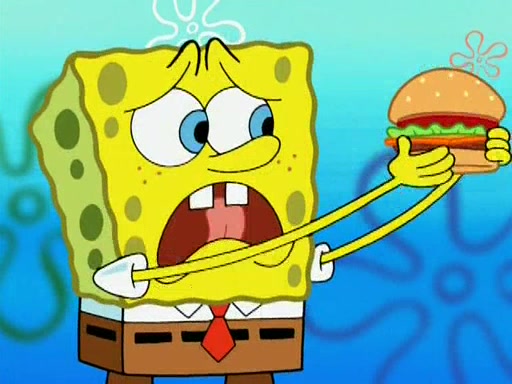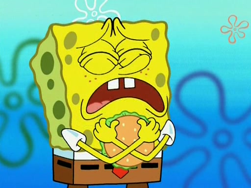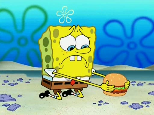 SpongeBob questions how this came to be. Mr. Krabs tells the fry cook that he once fell in love with a Krabby Patty. He then tells SpongeBob that Krabby Patties are meant to be loved and eaten. SpongeBob finally knows what he must do and eats his date, feeling nauseous afterward. The episode ends with SpongeBob asking for a doggie bag.