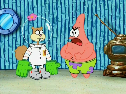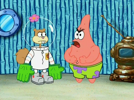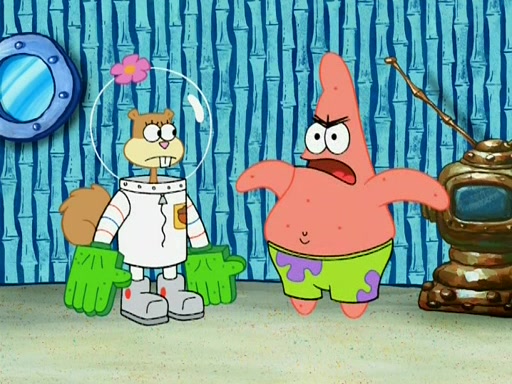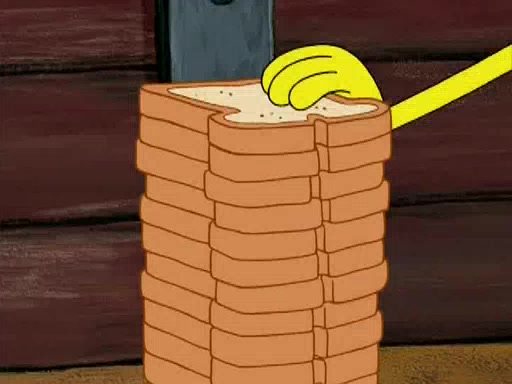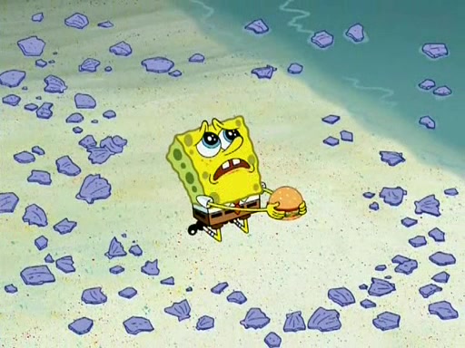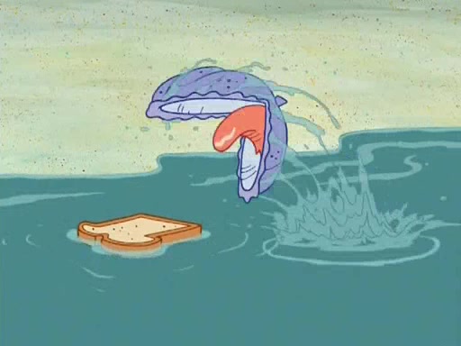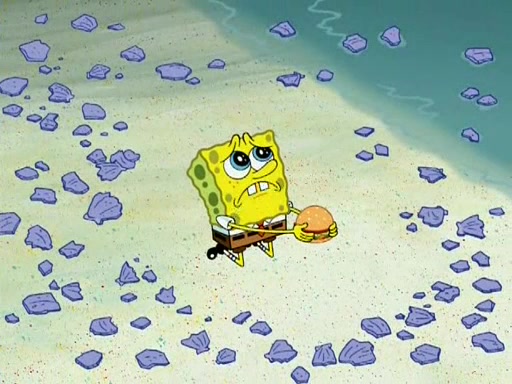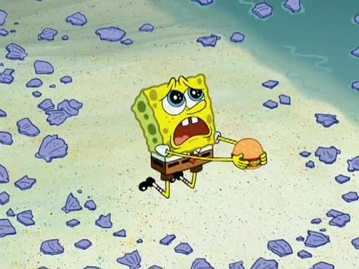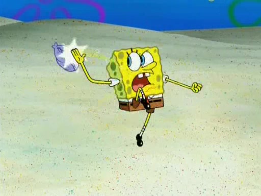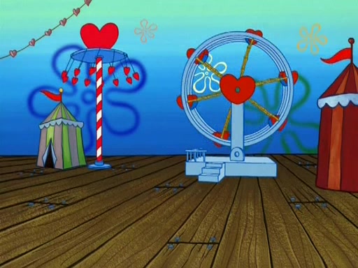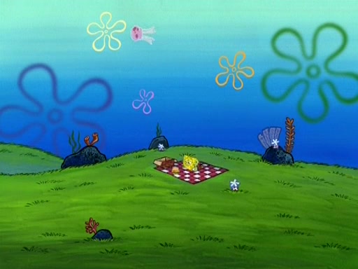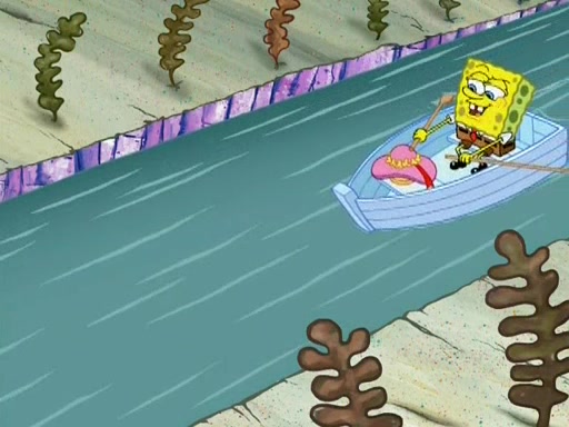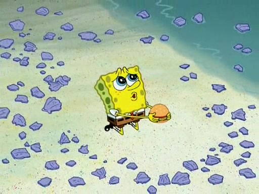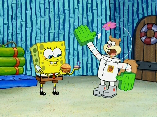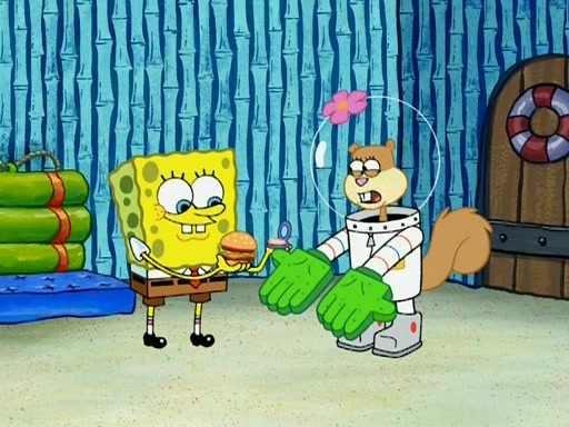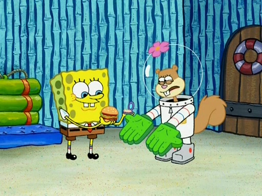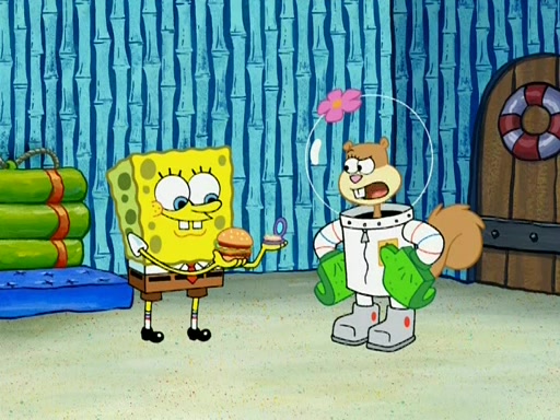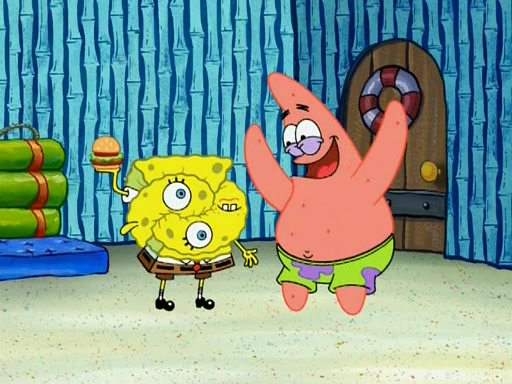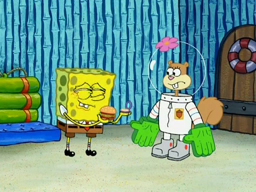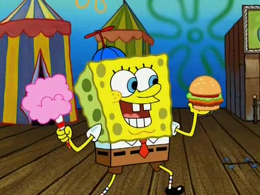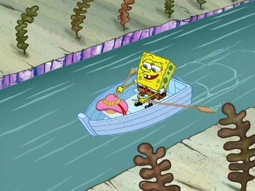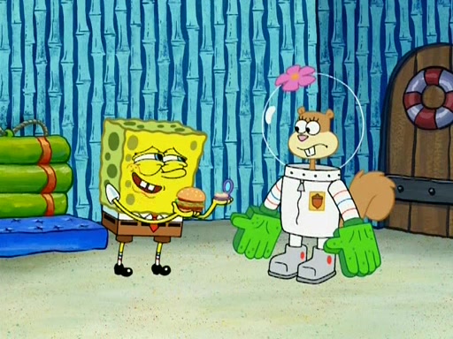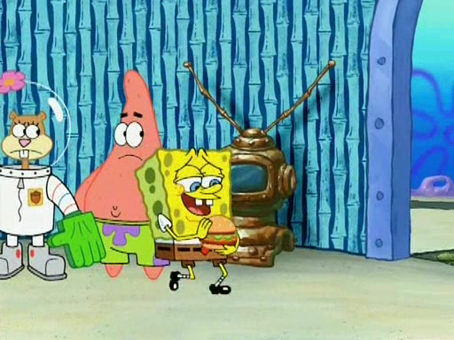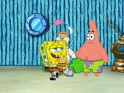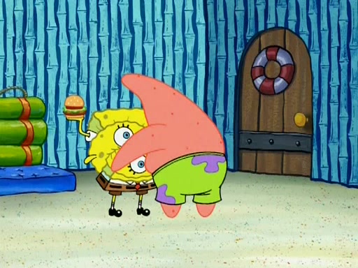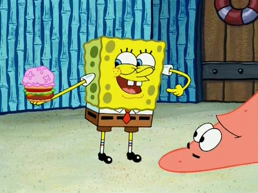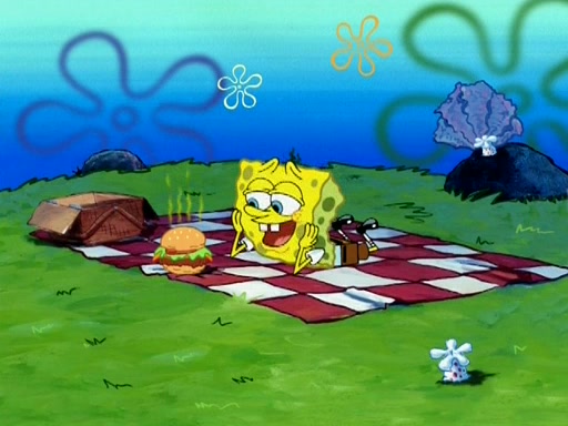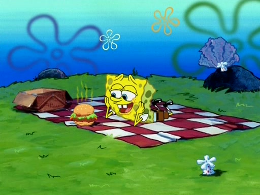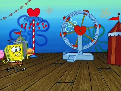 SpongeBob shows Patty around his home. Patrick and Sandy arrive, only to question SpongeBob's desire of the sandwich. SpongeBob ignores their judgments and goes off to do numerous activities with the sandwich; such as going to the fair, rescuing it from hungry clams, and riding a boat down a river. They go down a waterfall and SpongeBob puts the sandwich back together.