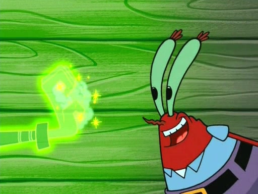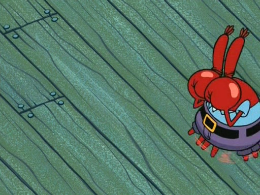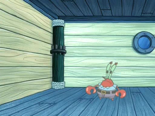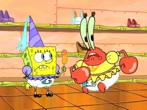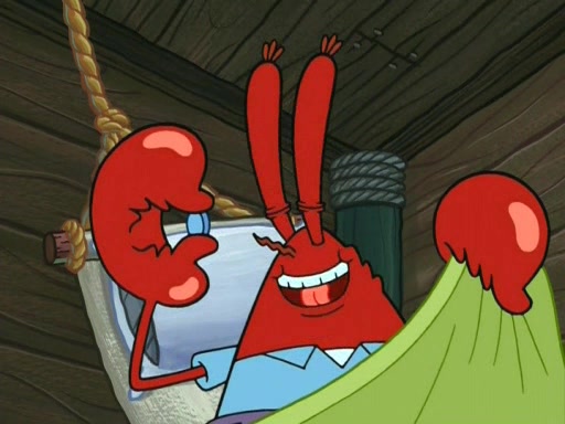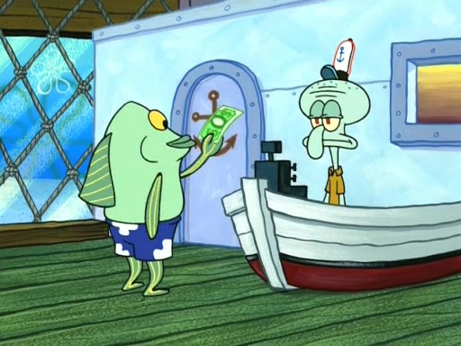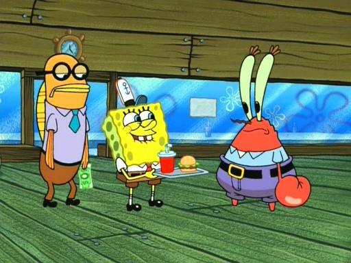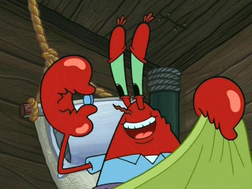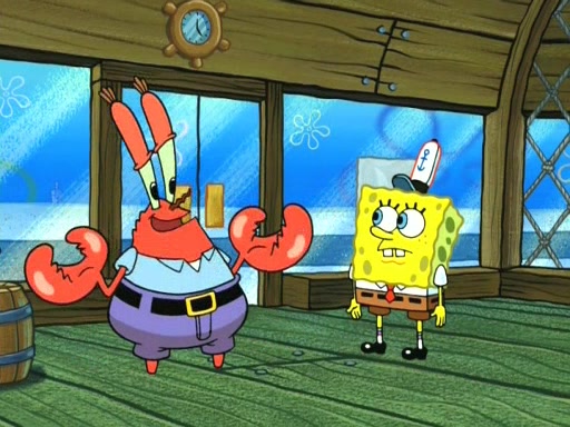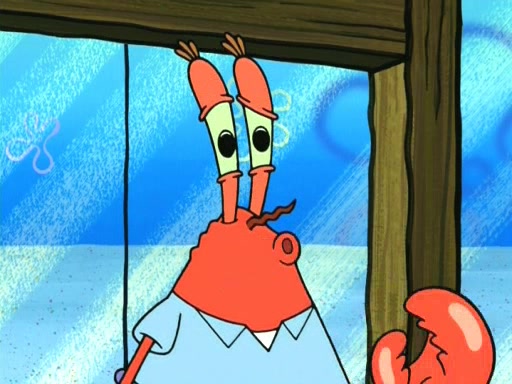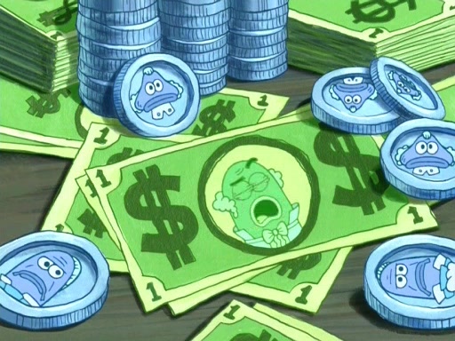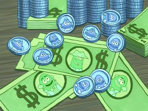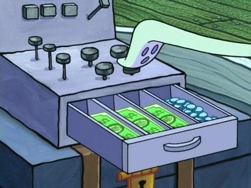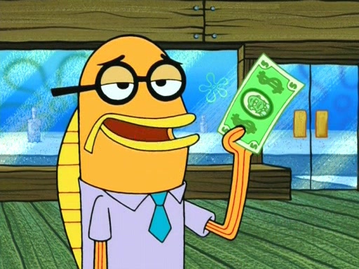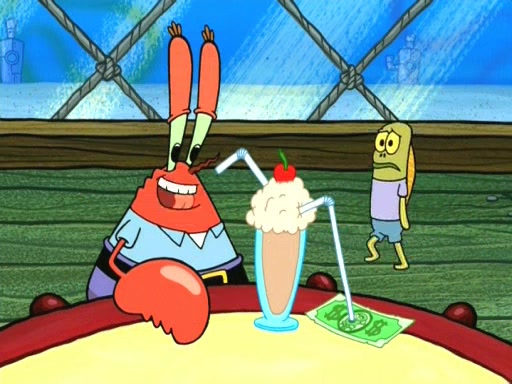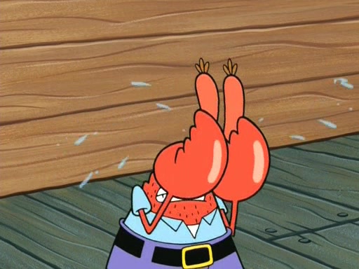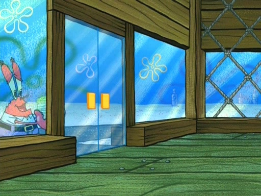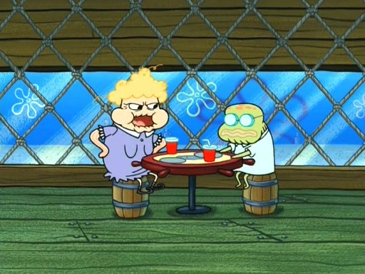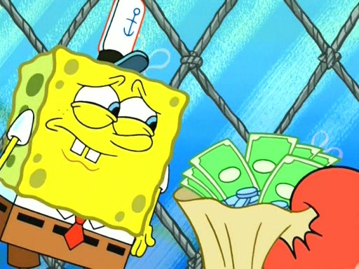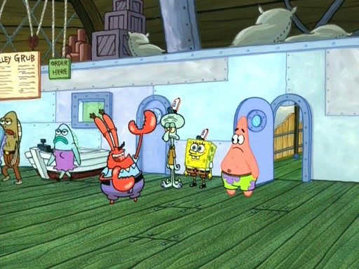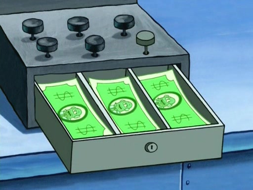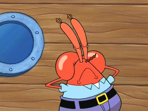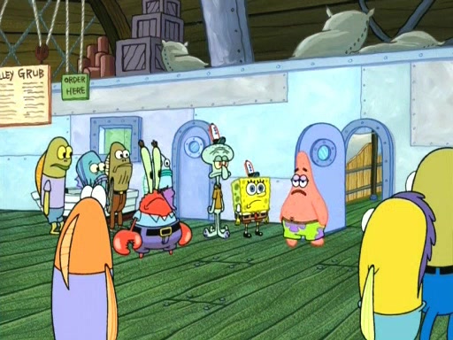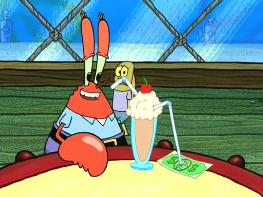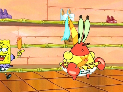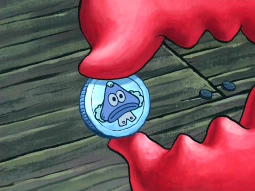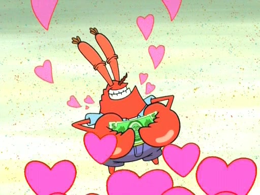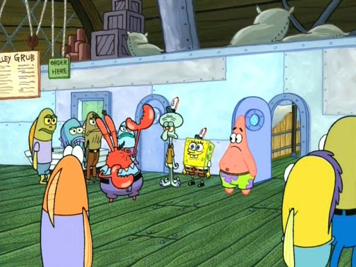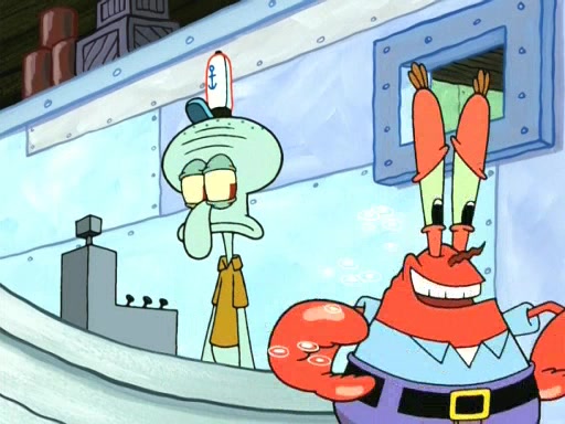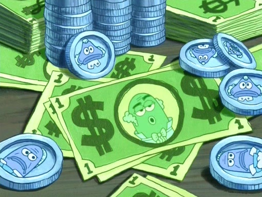 At the Krusty Krab, a customer wants to sit at a certain table, but two elderly people (Old Man Jenkins and Mary) are already sitting there. SpongeBob said the customer could sit at the table when they are done although the guy said he would pay $5 if he gets it now. Mr. Krabs agrees with this offer, and kicks the old people out. Mr. Krabs then says "Money talks," likes the idea, and wishes he could talk to money.
