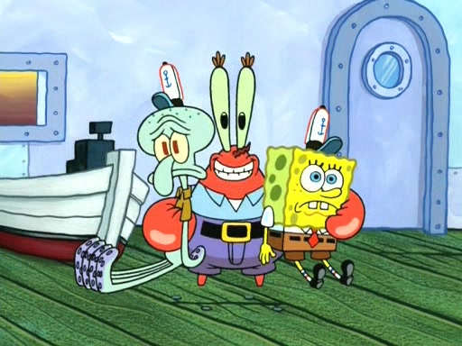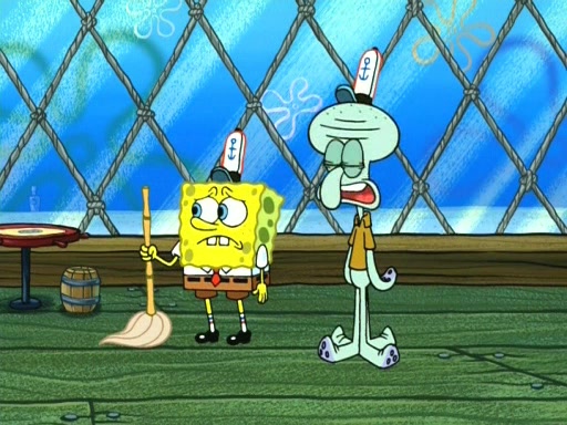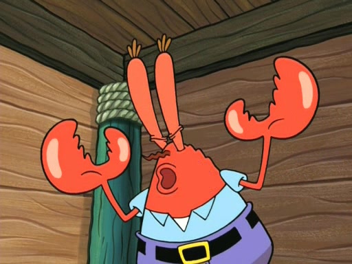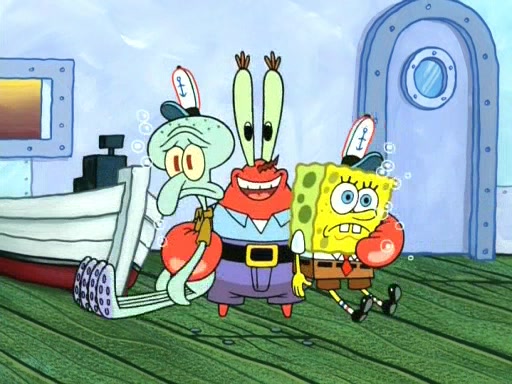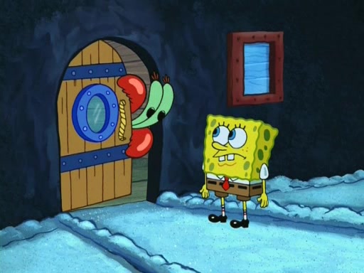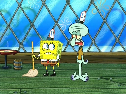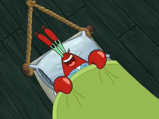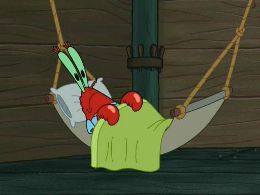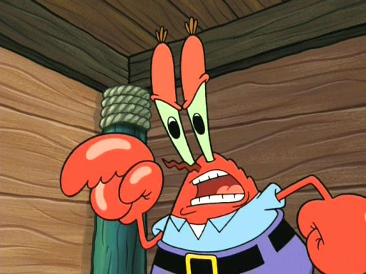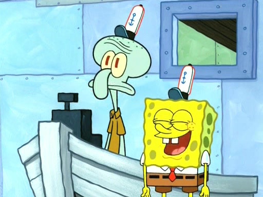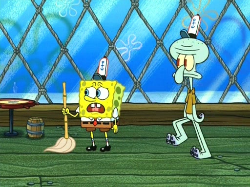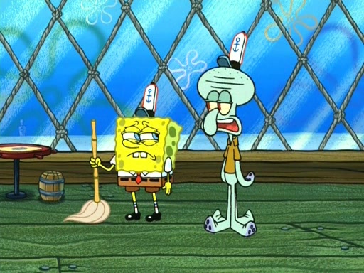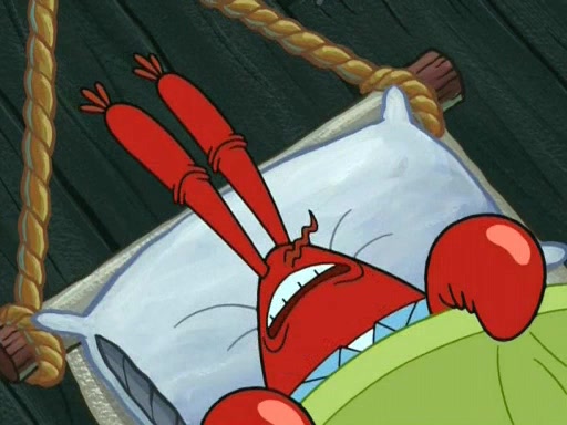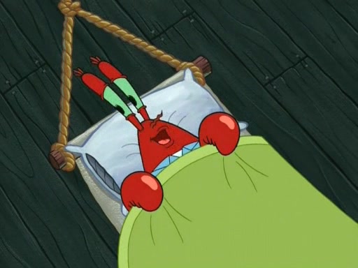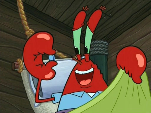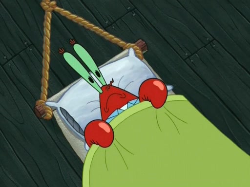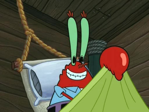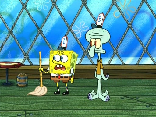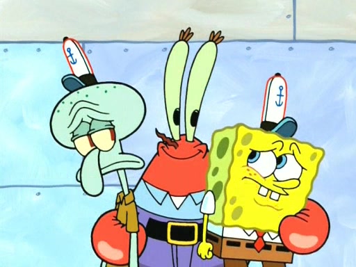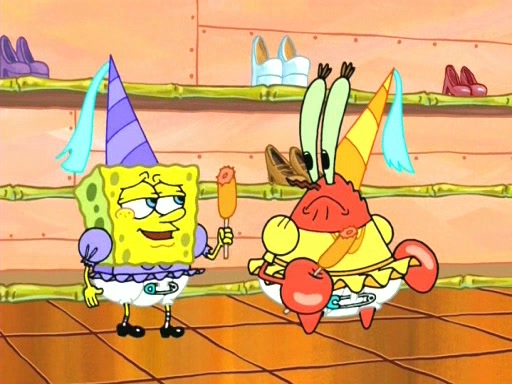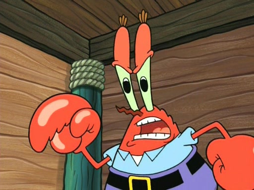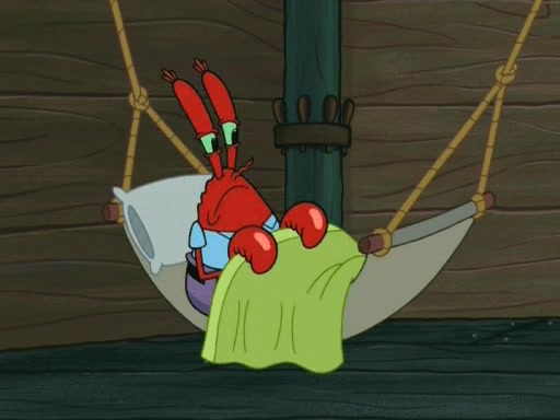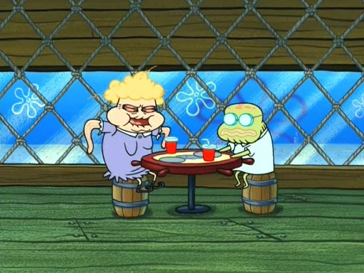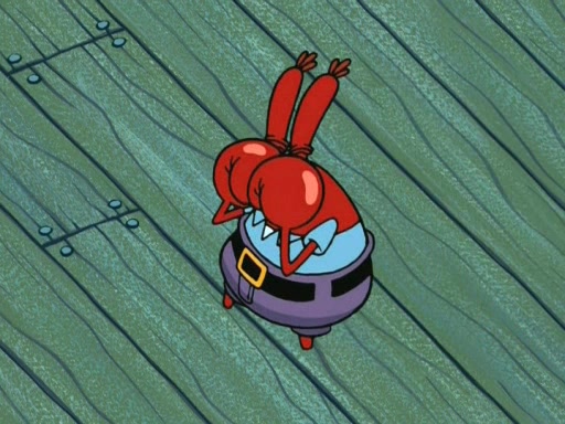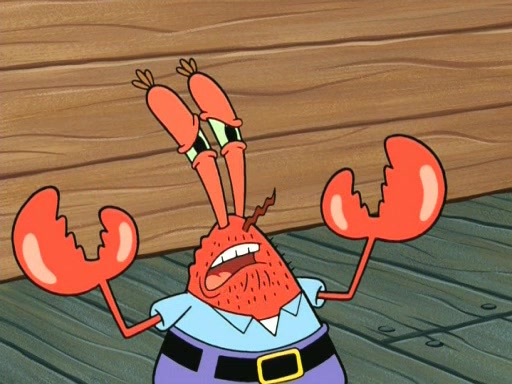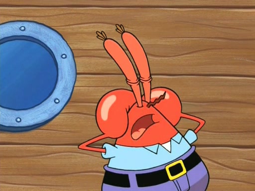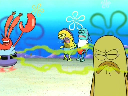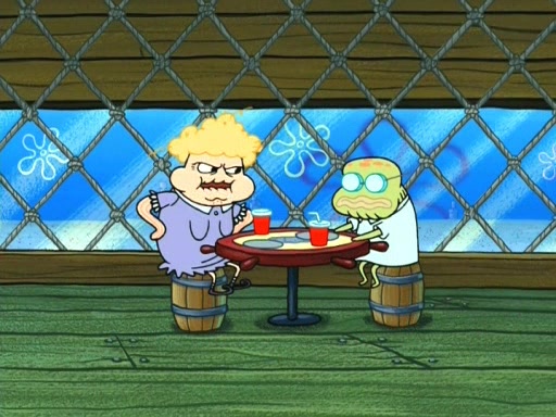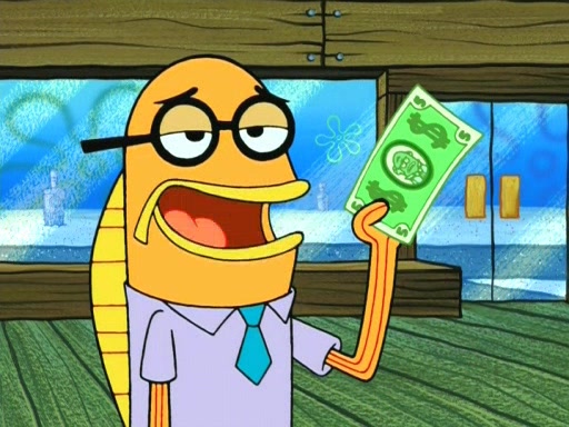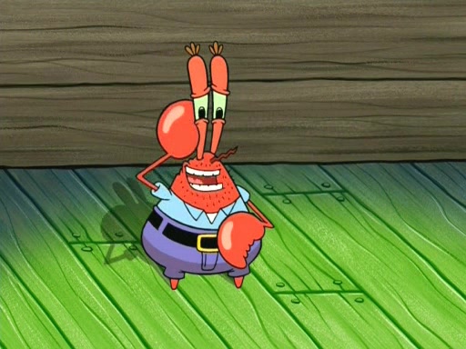 At the Krusty Krab, a customer wants to sit at a certain table, but two elderly people (Old Man Jenkins and Mary) are already sitting there. SpongeBob said the customer could sit at the table when they are done although the guy said he would pay $5 if he gets it now. Mr. Krabs agrees with this offer, and kicks the old people out. Mr. Krabs then says "Money talks," likes the idea, and wishes he could talk to money.