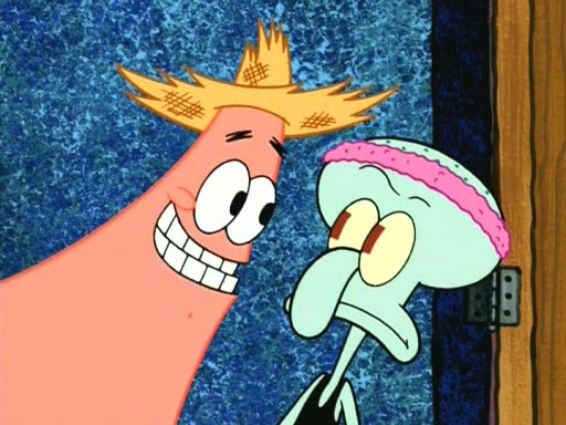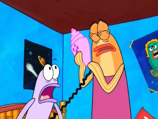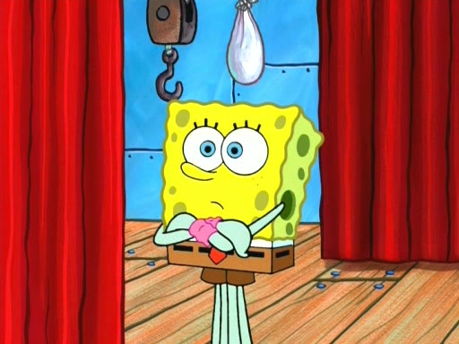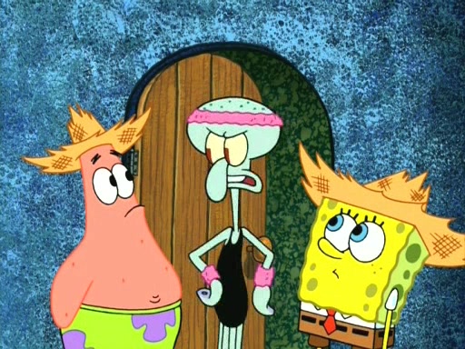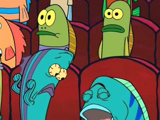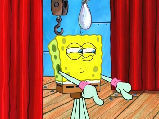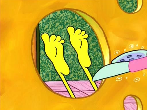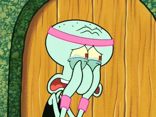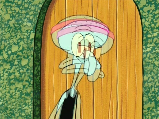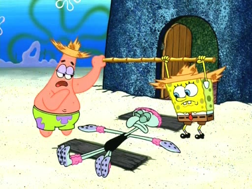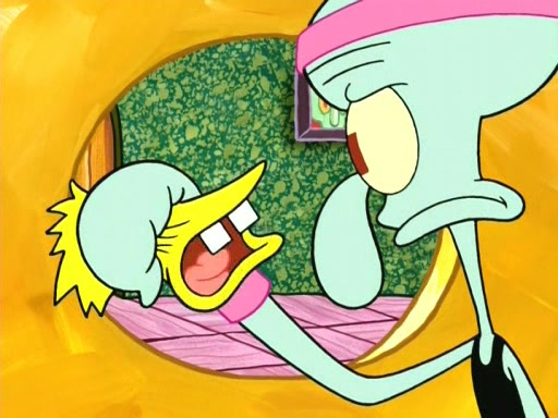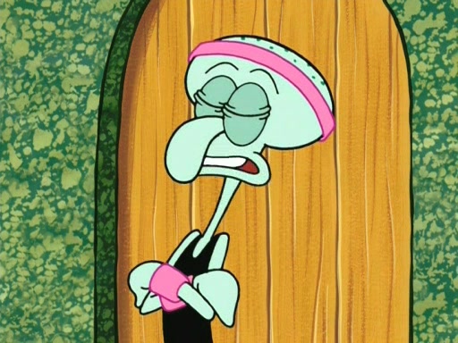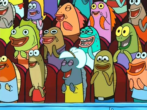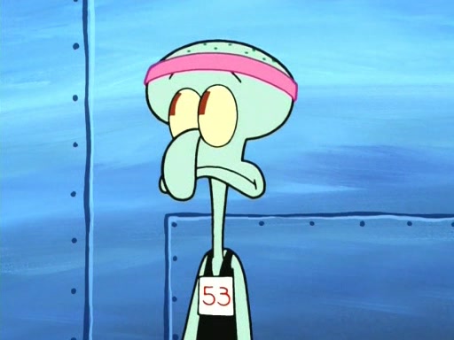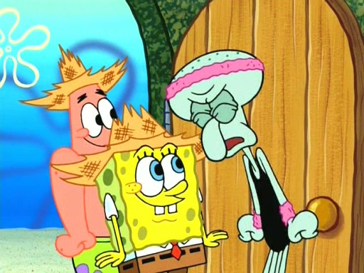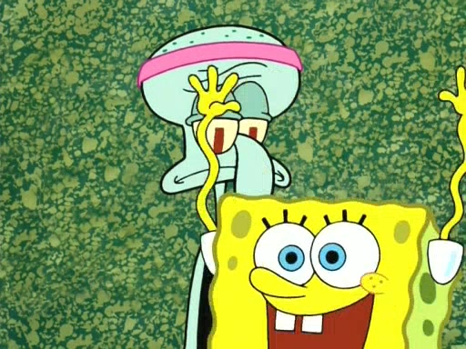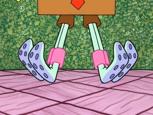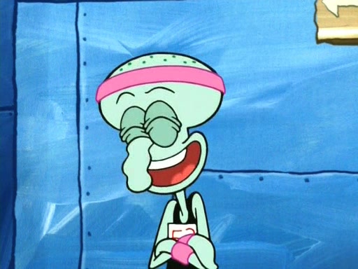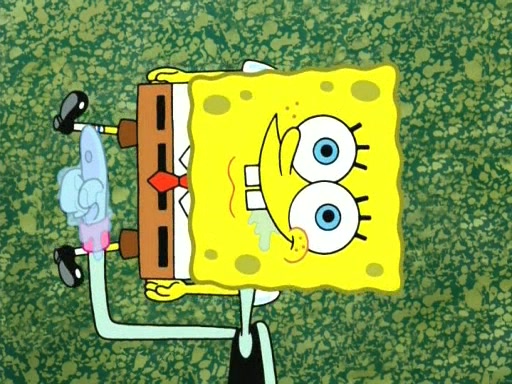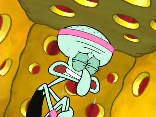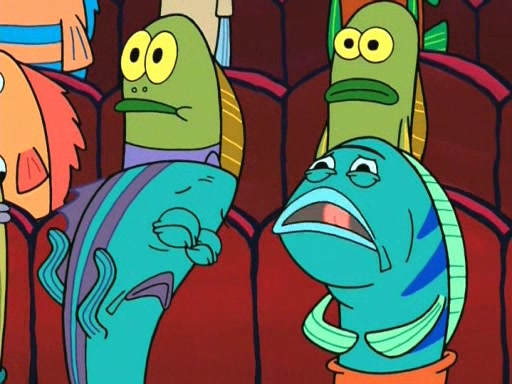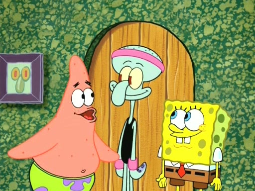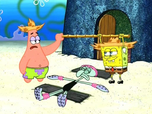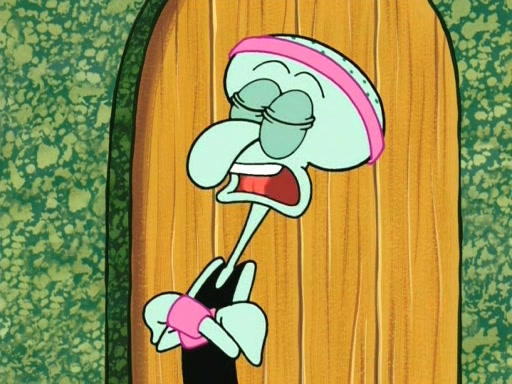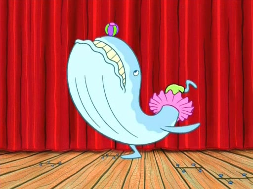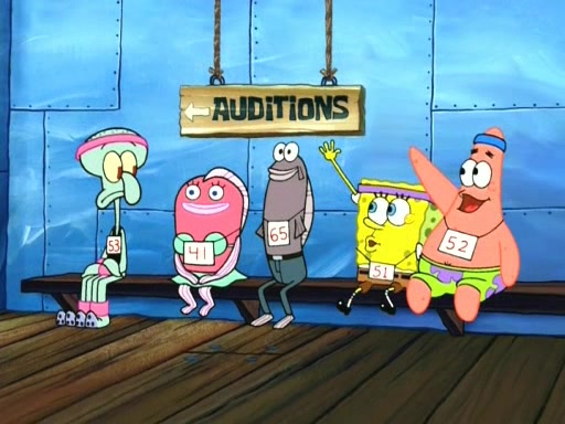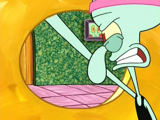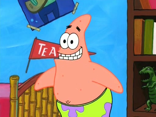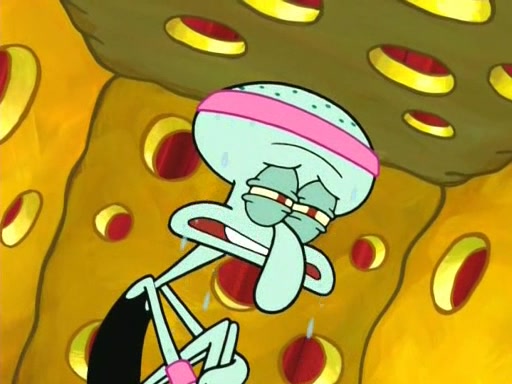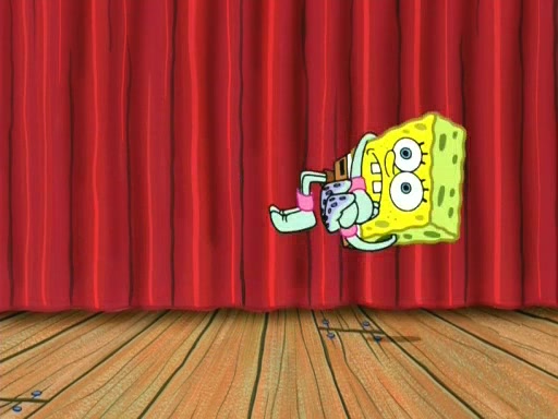 On the night of the big competition, lots of people come, as well as a coin dancer who wows the crowd and ends with a high rating. SpongeBob thinks he can't compete against that, but Squidward thinks different. When SpongeBob's up, Squidward dances, but the crowd is not enjoying it. Soon, Squidward gets a cramp in some of his tentacles, causing him to scream in pain and hold it whilst hopping around. Soon, the crowd leaves, and Fred is the last to leave. But after catching a glimpse of Squidward reacting to his cramp, he begins to call the crowd back. It isn't long before Squidward has to pull up his knee. And it isn't long when Squidward's remaining tentacles get cramped too, causing Squidward to pull that knee up too, and hold them in pain, causing SpongeBob with no arms or legs, to fall over. The crowd actually applauds at the end, which leads to SpongeBob and Squidward the trophy. SpongeBob pops out his arms and legs and begins to take the trophy, but Squidward beats him to it, causing him to have to swallow the trophy to get to Squidward. SpongeBob then says he couldn't have done it without Squidward, and pulls Squidward out of him, revealing that partnered dancers are disqualified. The trophy is confiscated from Squidward, and it turns out that literally everyone was partnered, even the coin dancer (he had someone named Pedro hidden in his hair, and he had something that popped out coins). The only individual dancer in the contest is number 52, which is indeed Patrick who also got a real cramp like Squidward did, winning him the trophy. SpongeBob says he is impressed with Patrick's new dance, whence Patrick screams before saying "Thanks."
