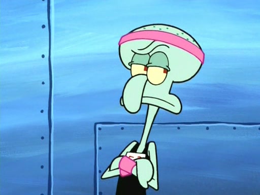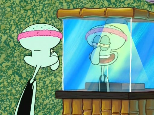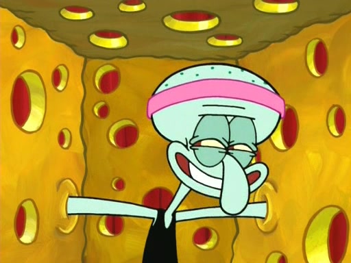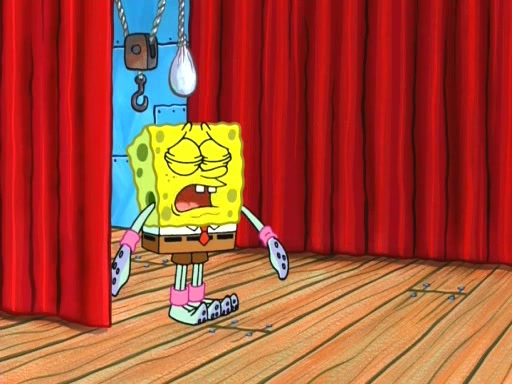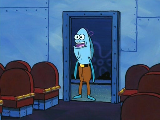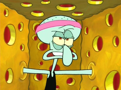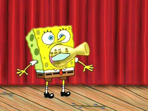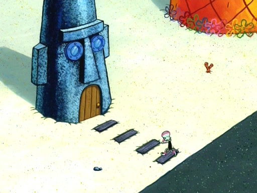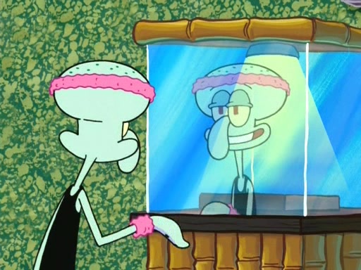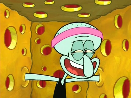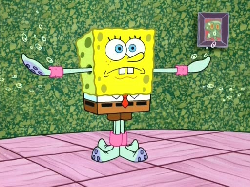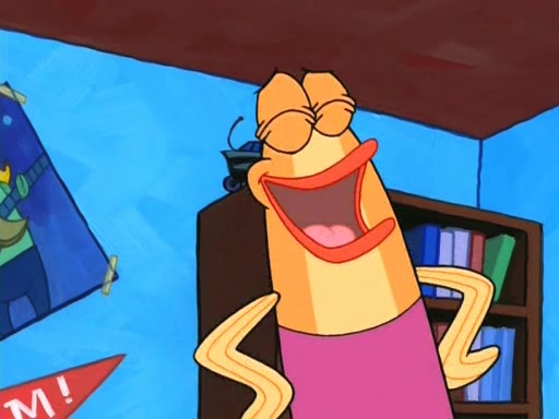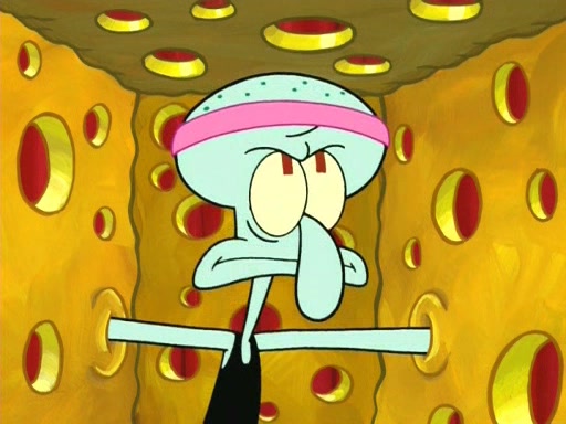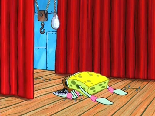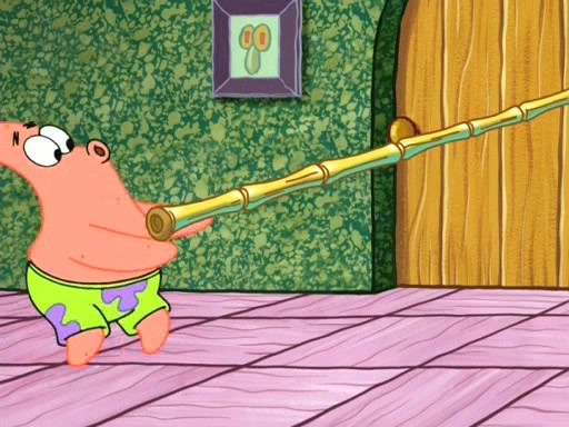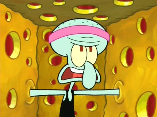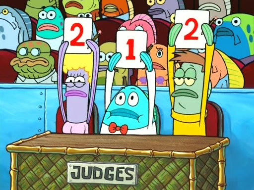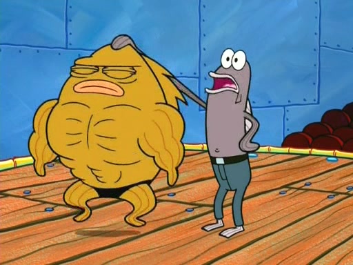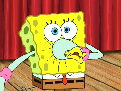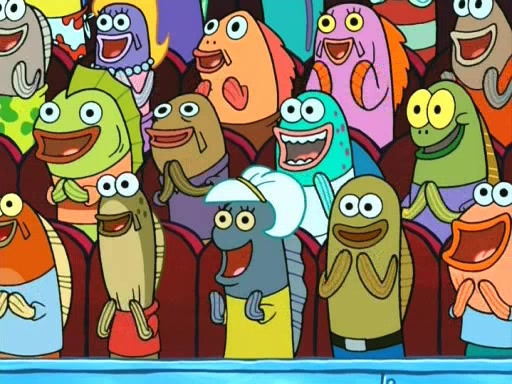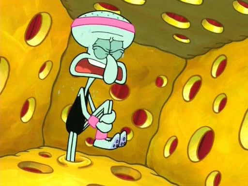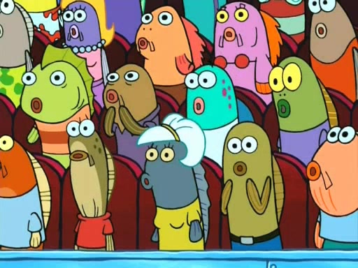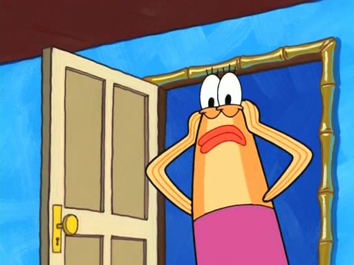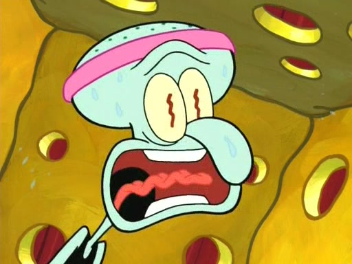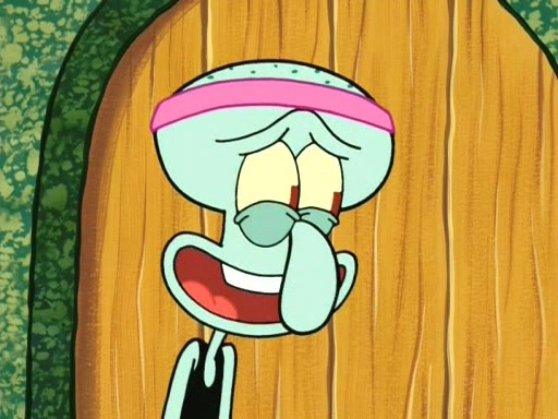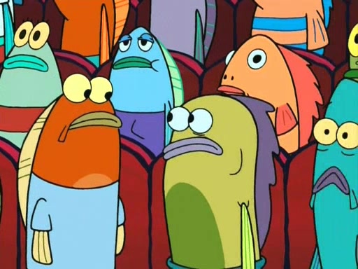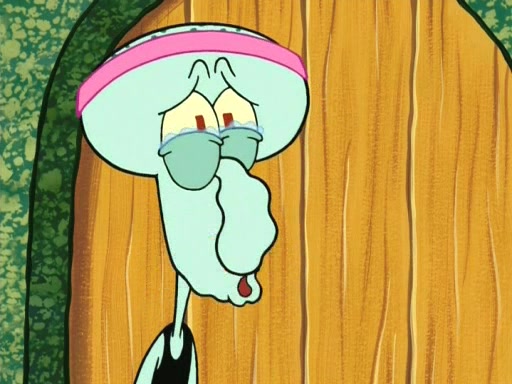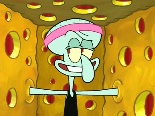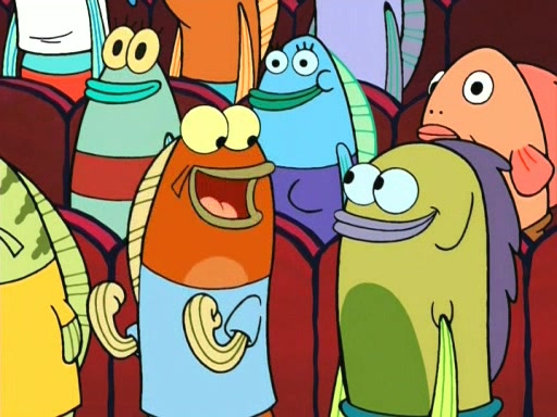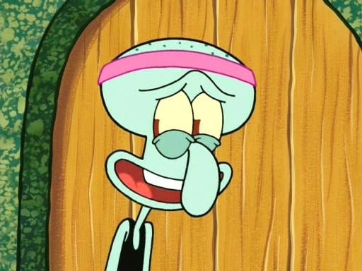 On the night of the big competition, lots of people come, as well as a coin dancer who wows the crowd and ends with a high rating. SpongeBob thinks he can't compete against that, but Squidward thinks different. When SpongeBob's up, Squidward dances, but the crowd is not enjoying it. Soon, Squidward gets a cramp in some of his tentacles, causing him to scream in pain and hold it whilst hopping around. Soon, the crowd leaves, and Fred is the last to leave. But after catching a glimpse of Squidward reacting to his cramp, he begins to call the crowd back. It isn't long before Squidward has to pull up his knee. And it isn't long when Squidward's remaining tentacles get cramped too, causing Squidward to pull that knee up too, and hold them in pain, causing SpongeBob with no arms or legs, to fall over. The crowd actually applauds at the end, which leads to SpongeBob and Squidward the trophy. SpongeBob pops out his arms and legs and begins to take the trophy, but Squidward beats him to it, causing him to have to swallow the trophy to get to Squidward. SpongeBob then says he couldn't have done it without Squidward, and pulls Squidward out of him, revealing that partnered dancers are disqualified. The trophy is confiscated from Squidward, and it turns out that literally everyone was partnered, even the coin dancer (he had someone named Pedro hidden in his hair, and he had something that popped out coins). The only individual dancer in the contest is number 52, which is indeed Patrick who also got a real cramp like Squidward did, winning him the trophy. SpongeBob says he is impressed with Patrick's new dance, whence Patrick screams before saying "Thanks."