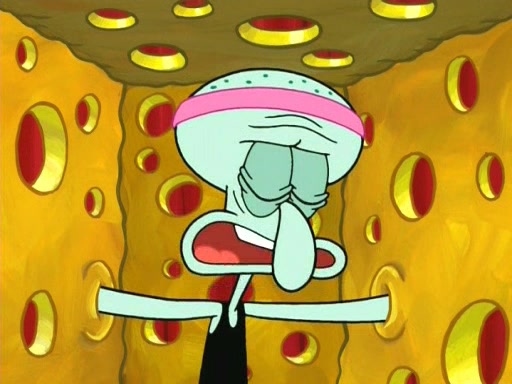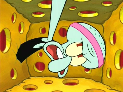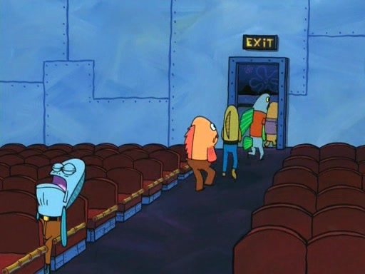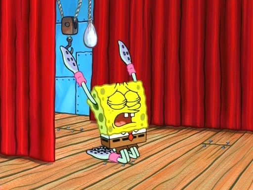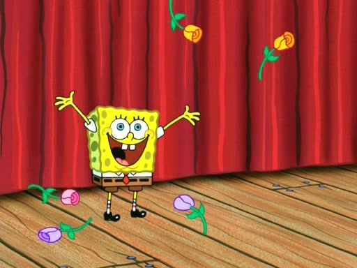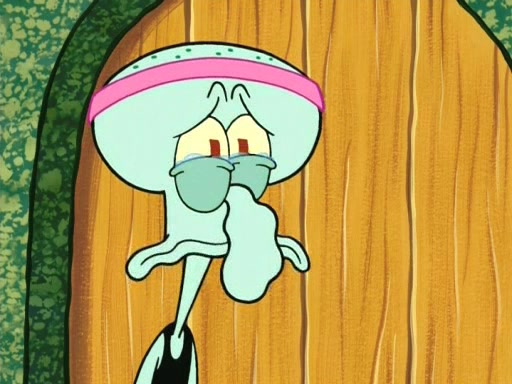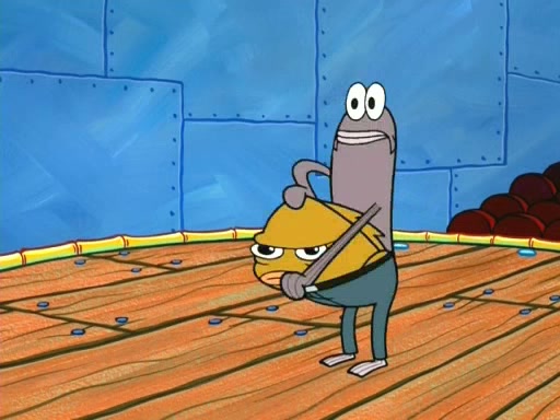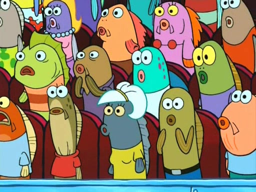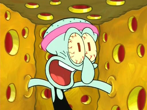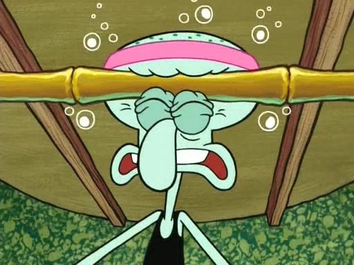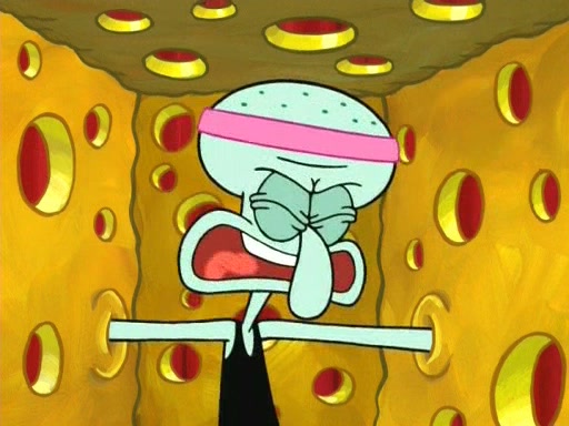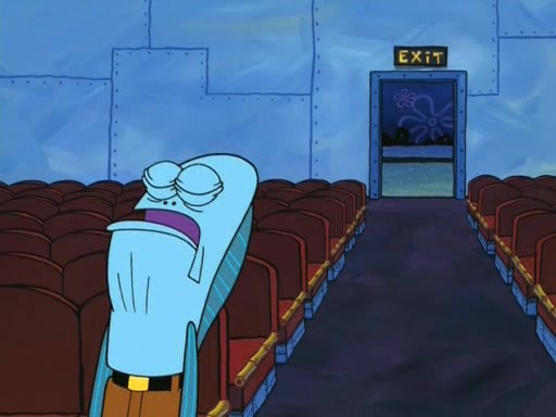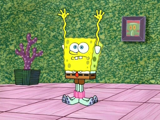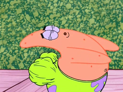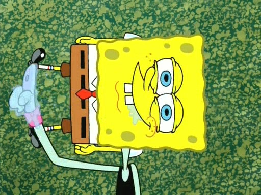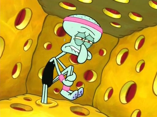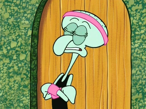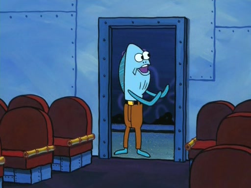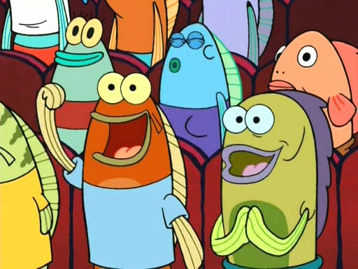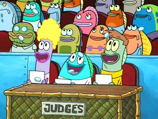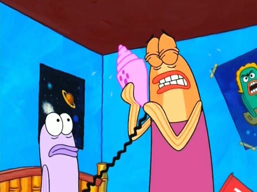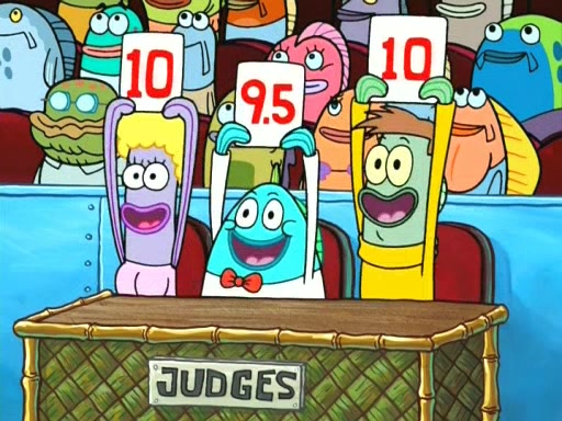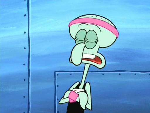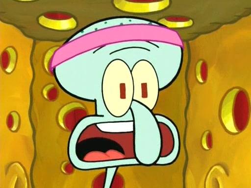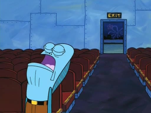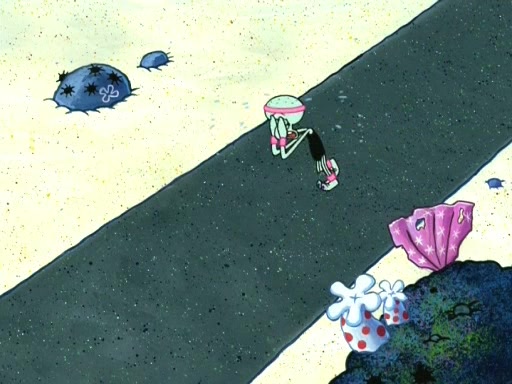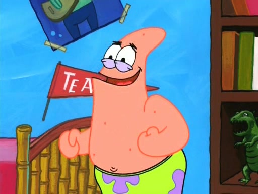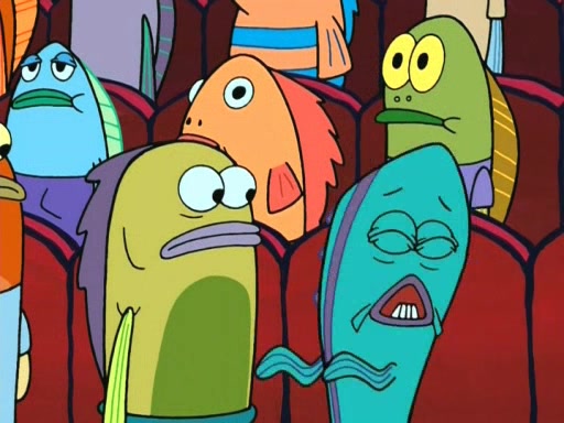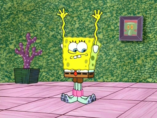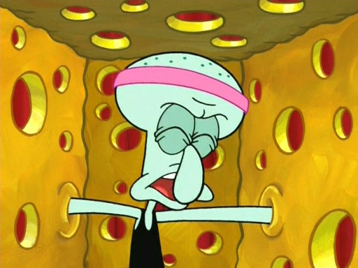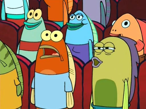 On the night of the big competition, lots of people come, as well as a coin dancer who wows the crowd and ends with a high rating. SpongeBob thinks he can't compete against that, but Squidward thinks different. When SpongeBob's up, Squidward dances, but the crowd is not enjoying it. Soon, Squidward gets a cramp in some of his tentacles, causing him to scream in pain and hold it whilst hopping around. Soon, the crowd leaves, and Fred is the last to leave. But after catching a glimpse of Squidward reacting to his cramp, he begins to call the crowd back. It isn't long before Squidward has to pull up his knee. And it isn't long when Squidward's remaining tentacles get cramped too, causing Squidward to pull that knee up too, and hold them in pain, causing SpongeBob with no arms or legs, to fall over. The crowd actually applauds at the end, which leads to SpongeBob and Squidward the trophy. SpongeBob pops out his arms and legs and begins to take the trophy, but Squidward beats him to it, causing him to have to swallow the trophy to get to Squidward. SpongeBob then says he couldn't have done it without Squidward, and pulls Squidward out of him, revealing that partnered dancers are disqualified. The trophy is confiscated from Squidward, and it turns out that literally everyone was partnered, even the coin dancer (he had someone named Pedro hidden in his hair, and he had something that popped out coins). The only individual dancer in the contest is number 52, which is indeed Patrick who also got a real cramp like Squidward did, winning him the trophy. SpongeBob says he is impressed with Patrick's new dance, whence Patrick screams before saying "Thanks."