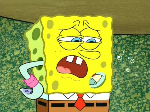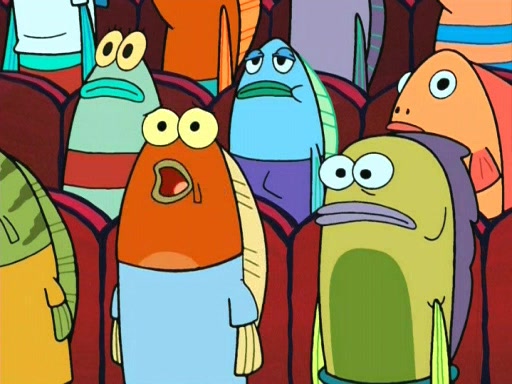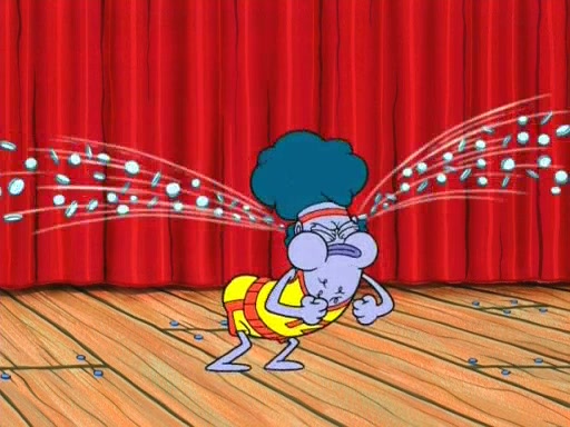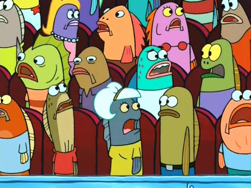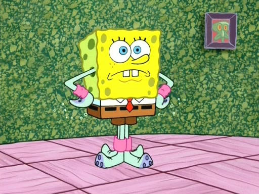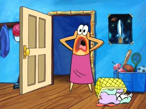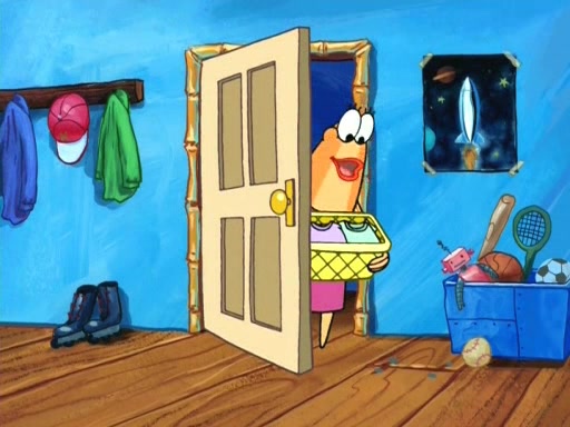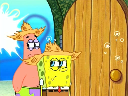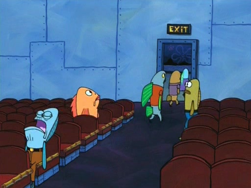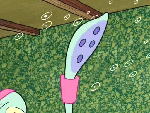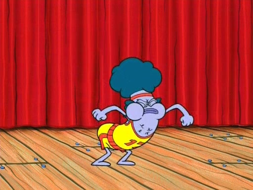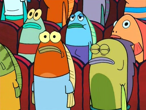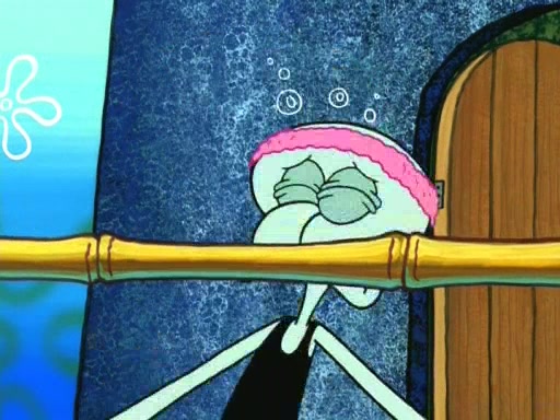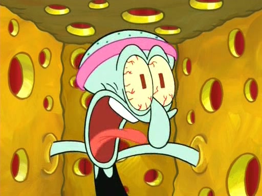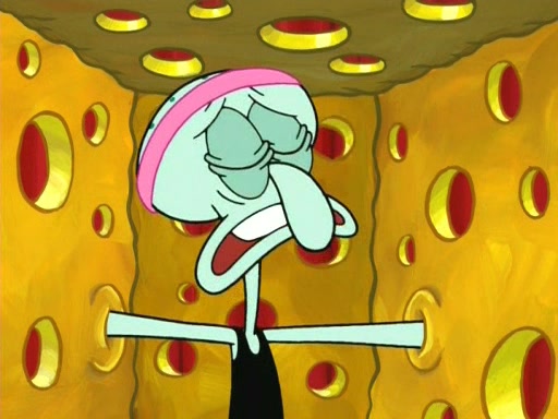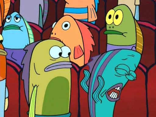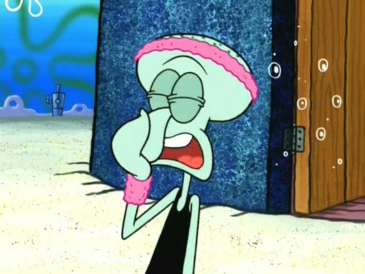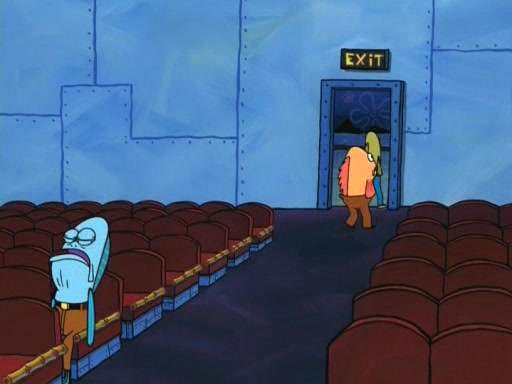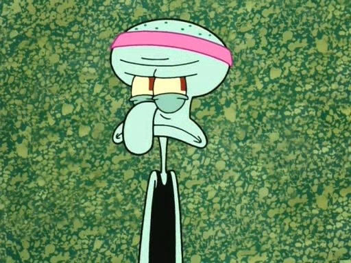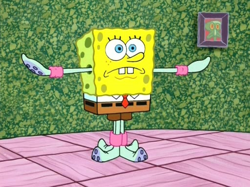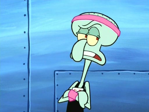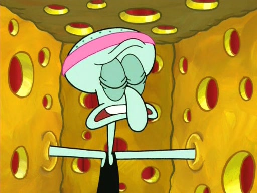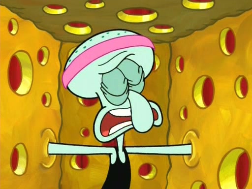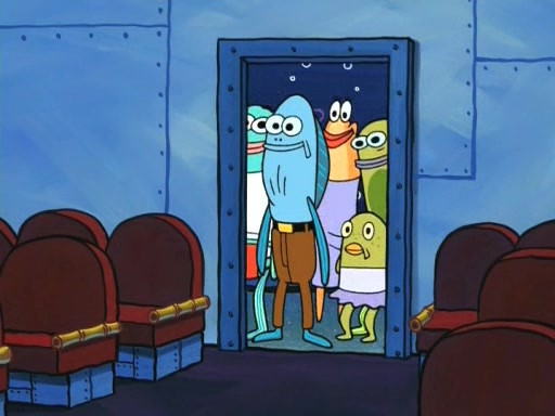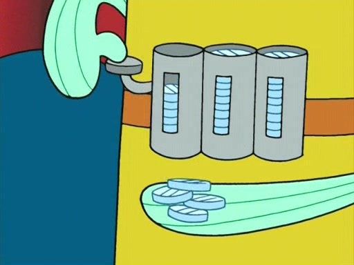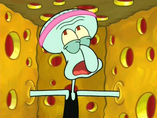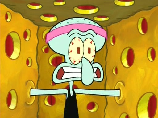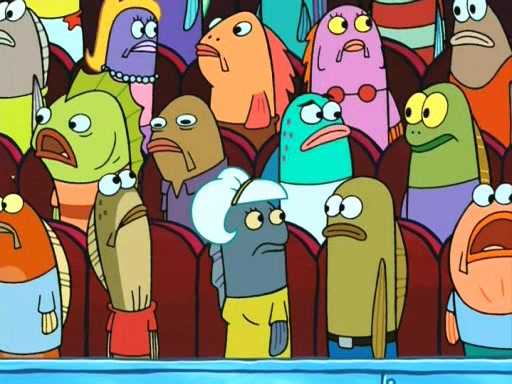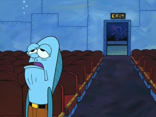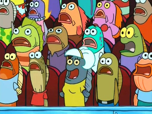 On the night of the big competition, lots of people come, as well as a coin dancer who wows the crowd and ends with a high rating. SpongeBob thinks he can't compete against that, but Squidward thinks different. When SpongeBob's up, Squidward dances, but the crowd is not enjoying it. Soon, Squidward gets a cramp in some of his tentacles, causing him to scream in pain and hold it whilst hopping around. Soon, the crowd leaves, and Fred is the last to leave. But after catching a glimpse of Squidward reacting to his cramp, he begins to call the crowd back. It isn't long before Squidward has to pull up his knee. And it isn't long when Squidward's remaining tentacles get cramped too, causing Squidward to pull that knee up too, and hold them in pain, causing SpongeBob with no arms or legs, to fall over. The crowd actually applauds at the end, which leads to SpongeBob and Squidward the trophy. SpongeBob pops out his arms and legs and begins to take the trophy, but Squidward beats him to it, causing him to have to swallow the trophy to get to Squidward. SpongeBob then says he couldn't have done it without Squidward, and pulls Squidward out of him, revealing that partnered dancers are disqualified. The trophy is confiscated from Squidward, and it turns out that literally everyone was partnered, even the coin dancer (he had someone named Pedro hidden in his hair, and he had something that popped out coins). The only individual dancer in the contest is number 52, which is indeed Patrick who also got a real cramp like Squidward did, winning him the trophy. SpongeBob says he is impressed with Patrick's new dance, whence Patrick screams before saying "Thanks."