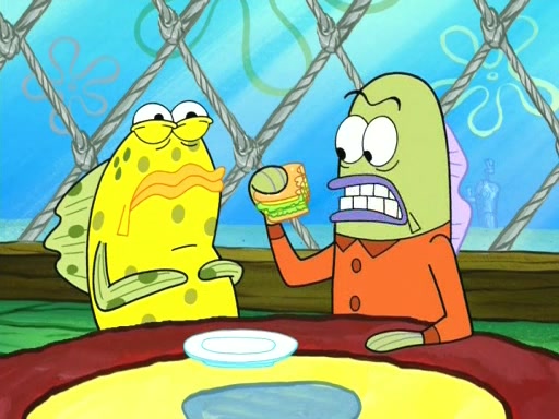 SpongeBob, Krabs & Squidward watched as the critic gave his review on the Krusty Krab, only to soil it,he said that the Krusty Krab "smelt like the rear-end of a goat. Baaaaa! Phhhpt!" as the customers heard the review they began to leave in displeasure, but Gene said that the Krusty Krab was a big success, because of the Krabby patty, and he said that SpongeBob was no square when it came to cooking, ending with a Good review, the customers came back pleased & prepared to eat.