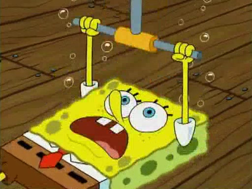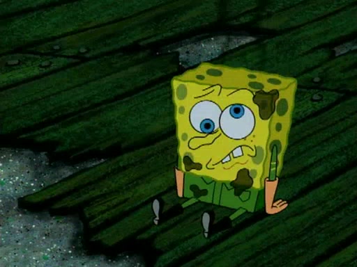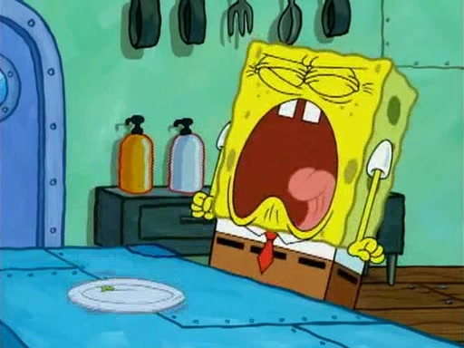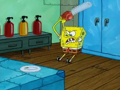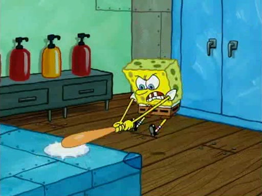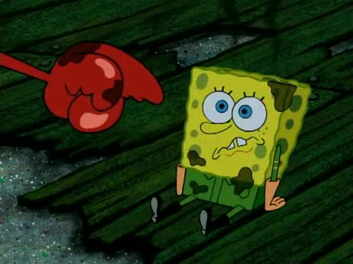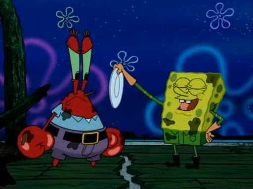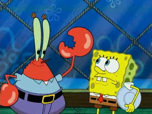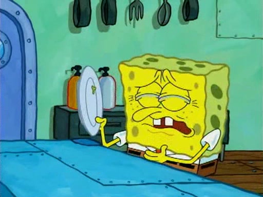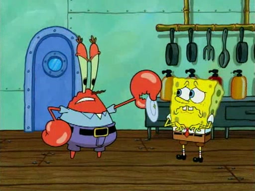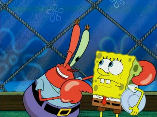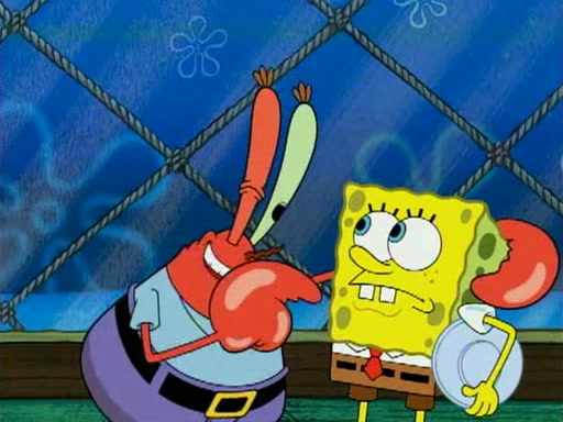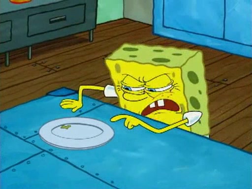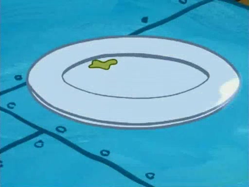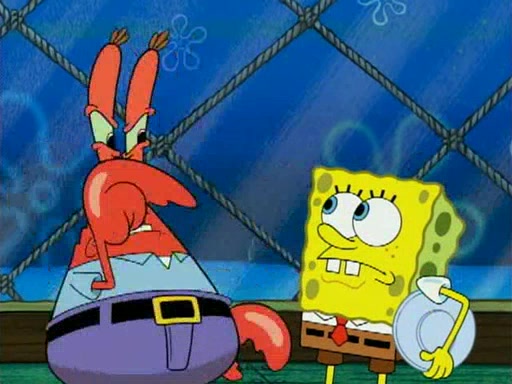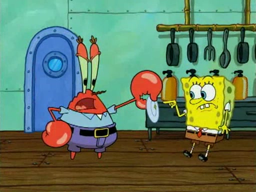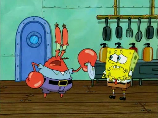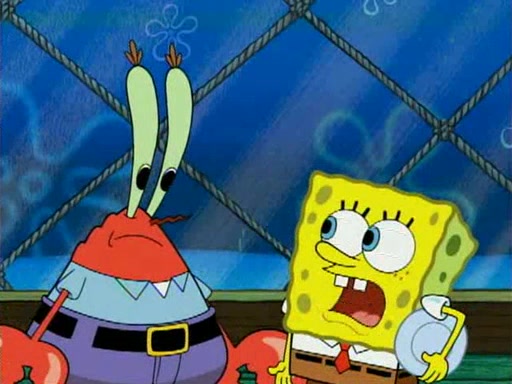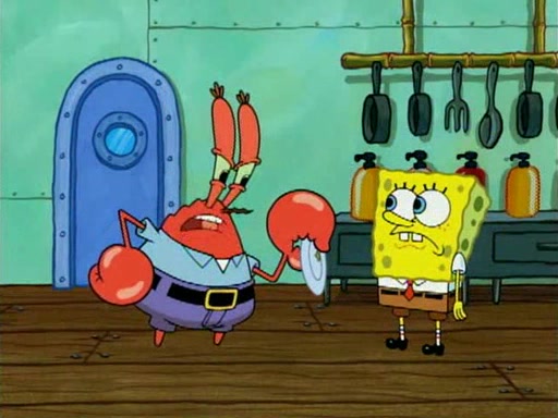 The episode starts with Mr. Krabs closing the Krusty Krab stating "Thought those deadbeats would never leave." Meanwhile, SpongeBob is in the kitchen and finishes washing the dishes. Mr. Krabs comes in and he finds a dirty spot on a plate. Mr. Krabs shows this SpongeBob and then states that SpongeBob can't leave until he gets the spot removed. Mr. Krabs tells SpongeBob to lock up when he's done. SpongeBob then reminds Mr. Krabs that when he was left alone at work, the Krusty Krab set on fire. Mr. Krabs tells SpongeBob that he removed all welding equipment from the premises so there no chance of a fire happening again. SpongeBob tries scrubbing of the spot off the plate, but it ain't working. So SpongeBob declares war. First, he uses jackhammer but SpongeBob falls over and jackhammer repeatedly smacks him in the face. Second, he tries with repeatedly banging a bat on plates which fails. Thirdly, he uses a chainsaw and repeatedly bangs on the plate. Once SpongeBob is out of breath, he gets a tank and shoots a pink sponge on the plate. Since that fails, SpongeBob spits on the plate and it STILL doesn't work. SpongeBob states "I got to finish this."
