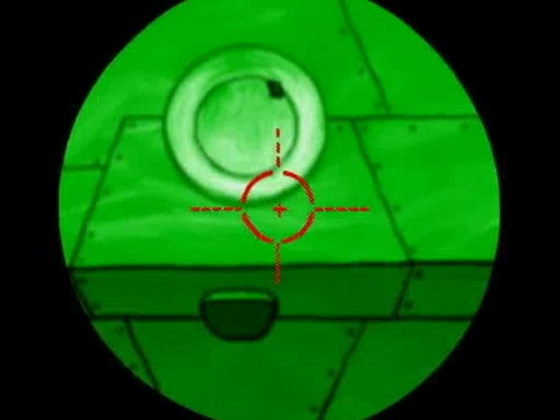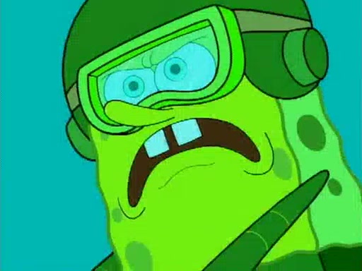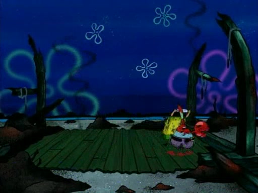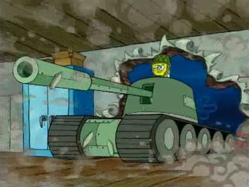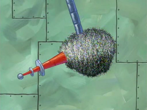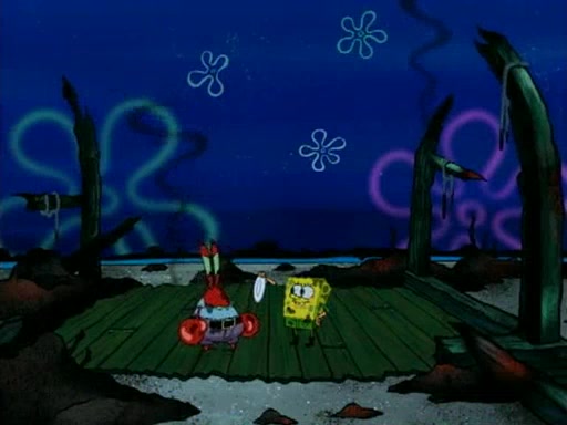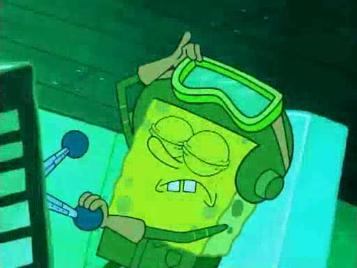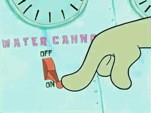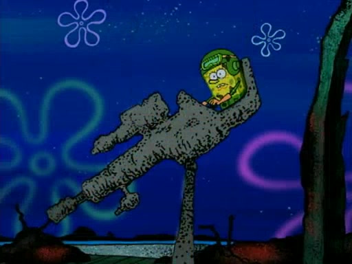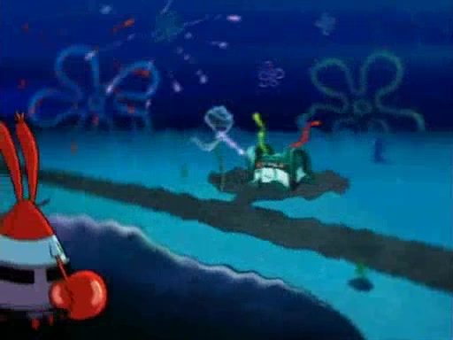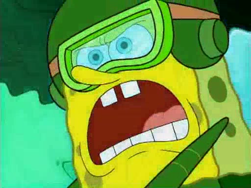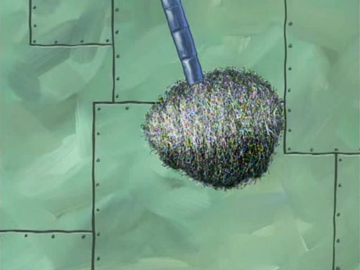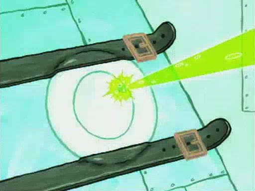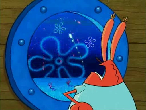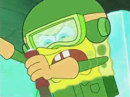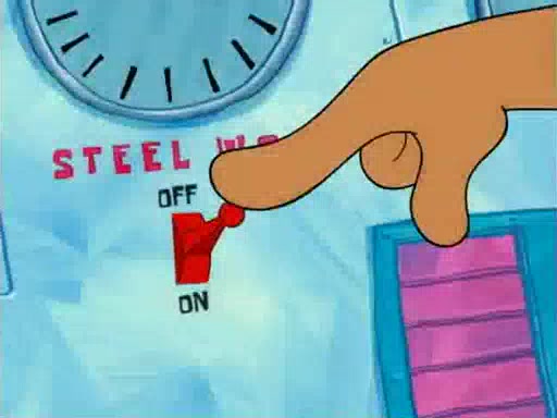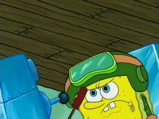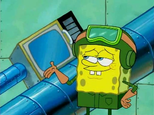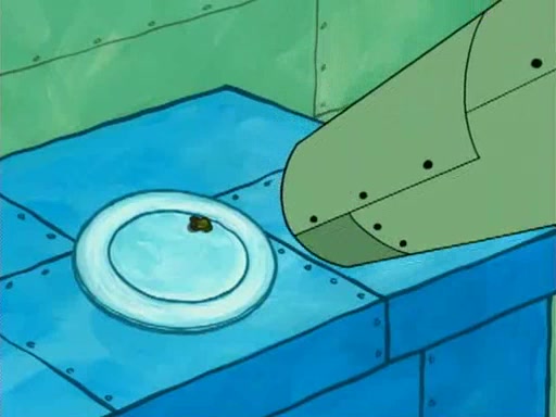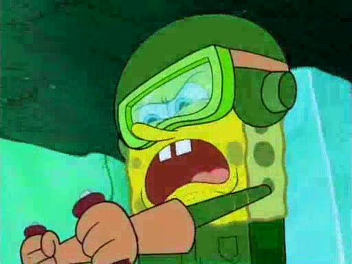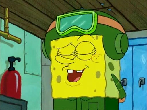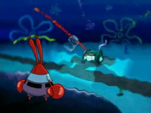 SpongeBob soon comes back, dressed in an army outfit and introduces the dirty spot to the Spot-Master 6000. SpongeBob first shows the spot the microwave-powered laser particle beam. Then, he shows the spot the laser-guided high pressure water cannon. Finally, SpongeBob shows the spot a specially woven metal alloy ingeniously combined with state of the art cleaning materials. He calls it steel wool. And it comes with a laser. SpongeBob asks the spot "Any last words?" After hearing nothing from the plate, SpongeBob starts up Spot-Master 6000 and turns on the particle beam and the water cannon. Since it's not working, he turns on the steel wool laser. While this is happening, the Krusty Krab shakes, lights are shining out of it and Mr. Krabs can see it from his home. Mr. Krabs looks through his window and first thinks it has nothing to do with SpongeBob.
