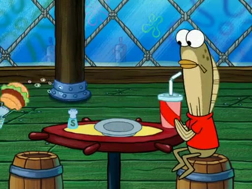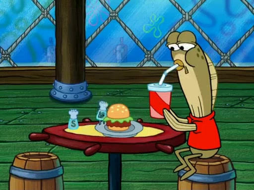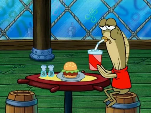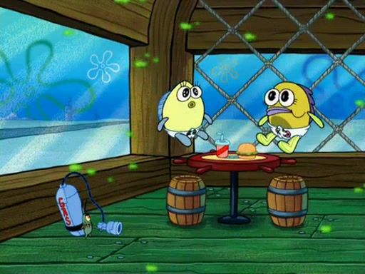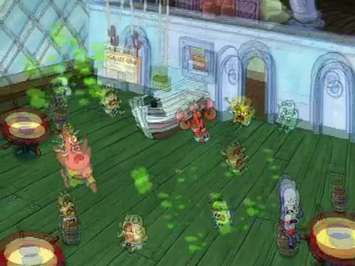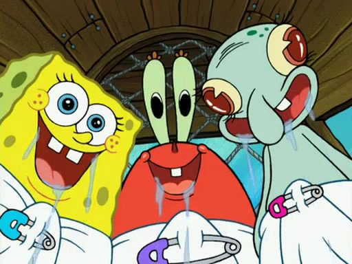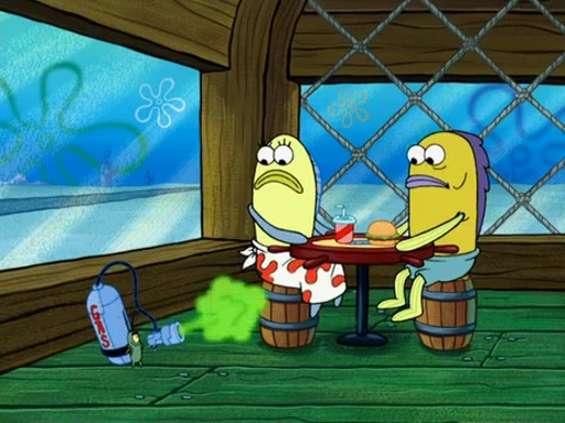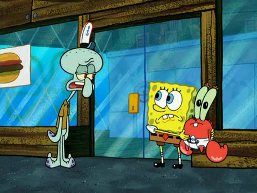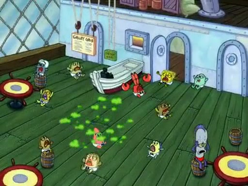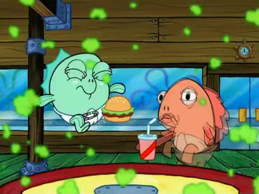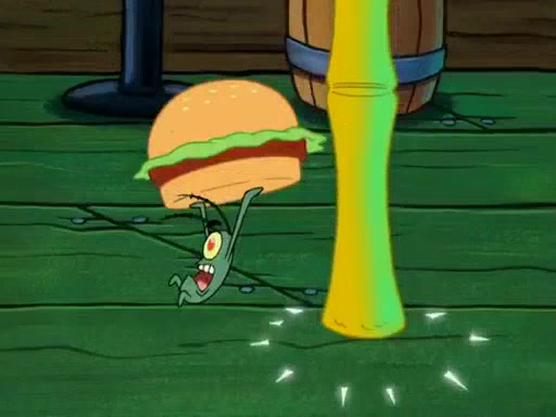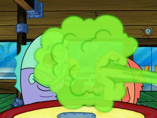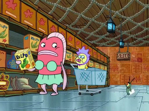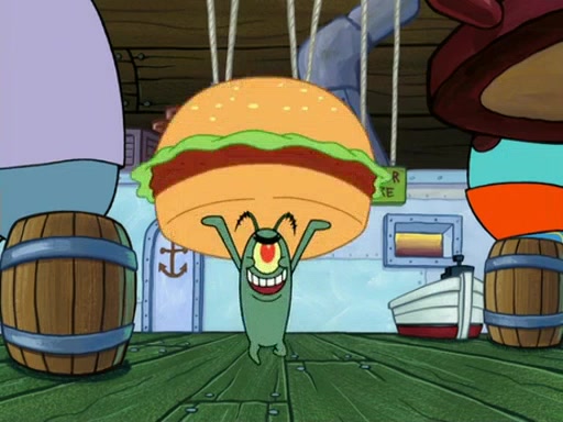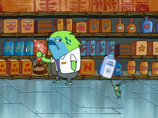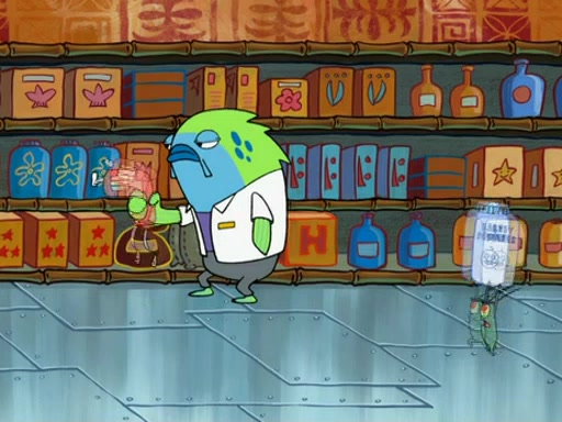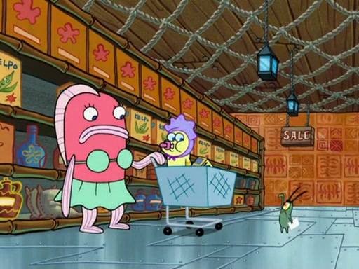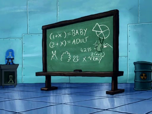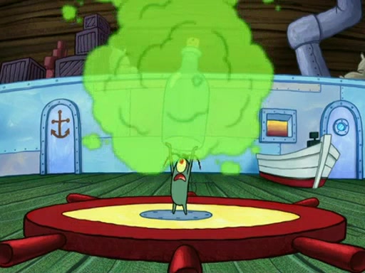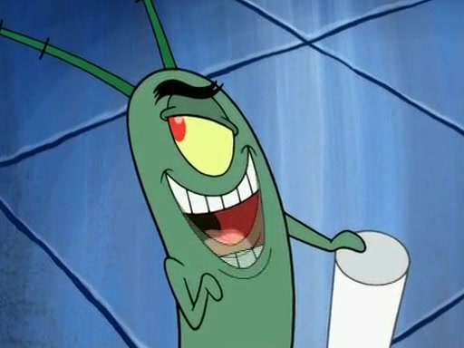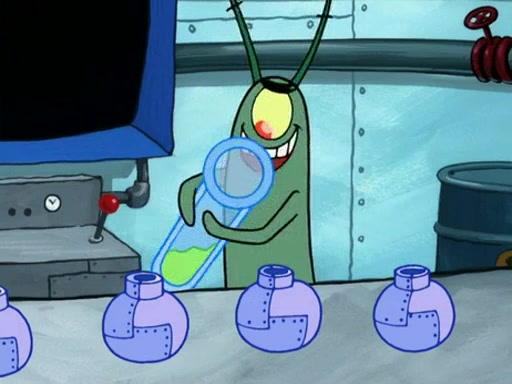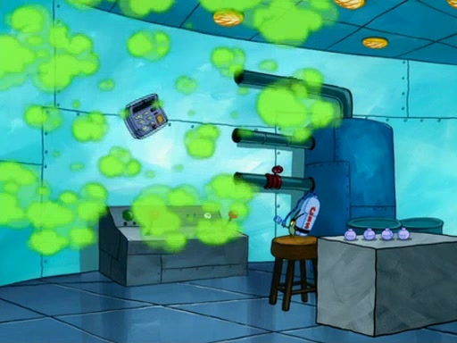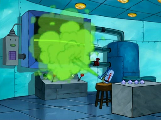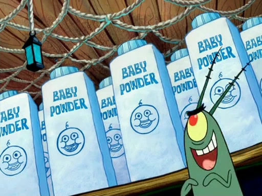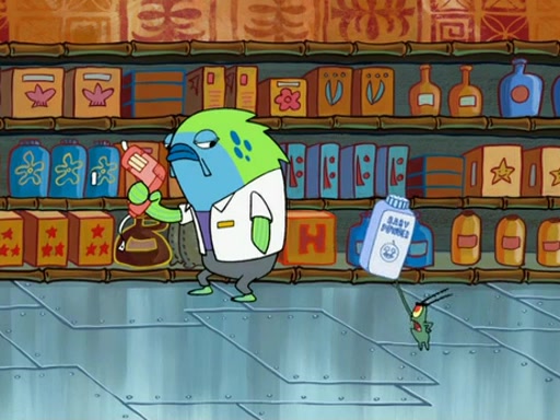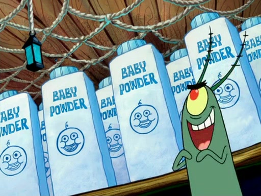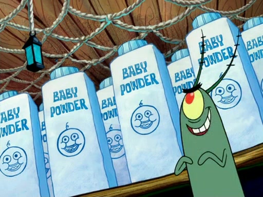He then goes to Barg'N-Mart which he buys baby powder and then goes back to complete the experiment. Using Karen as a test subject, it works. He then returns to the Krusty Krab and sprays all the customers, including SpongeBob, Patrick, Squidward, and Mr. Krabs and they never change back to adults again. Plankton is about to get the formula when he gets beaten up by the babies.