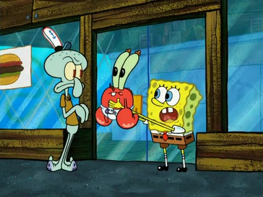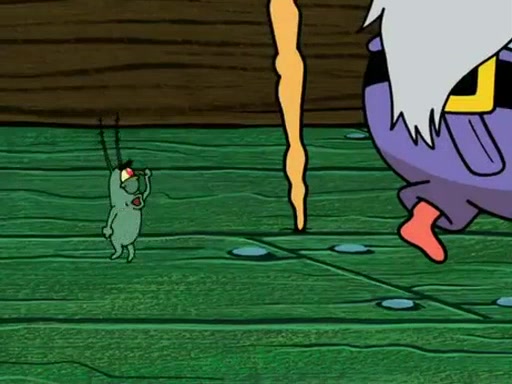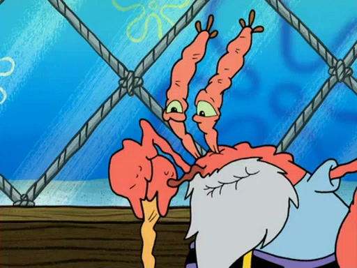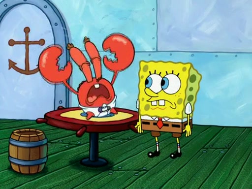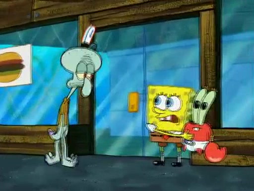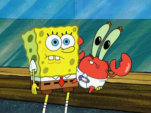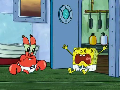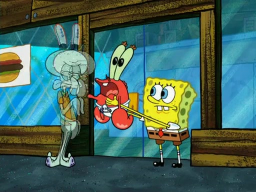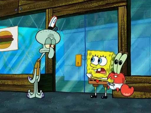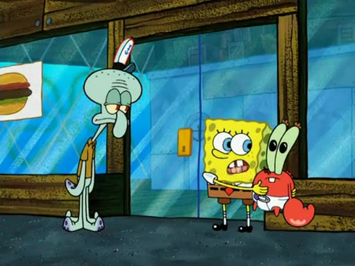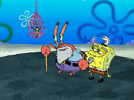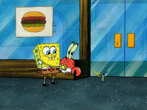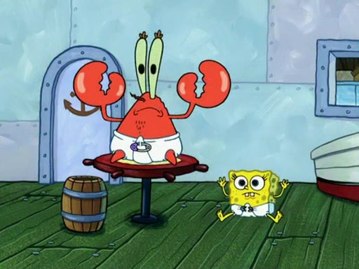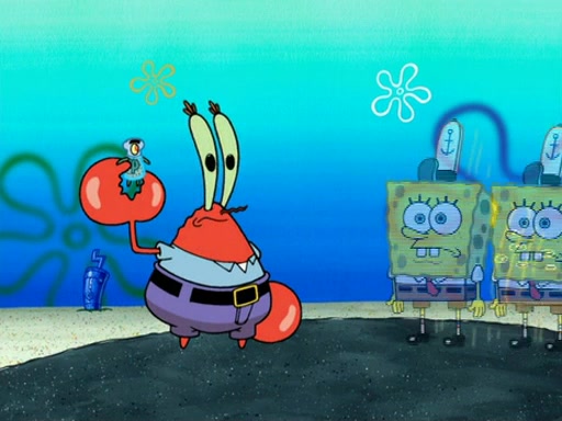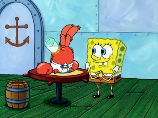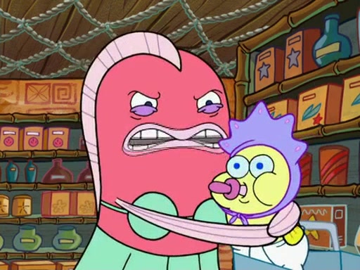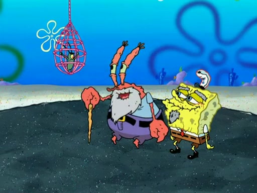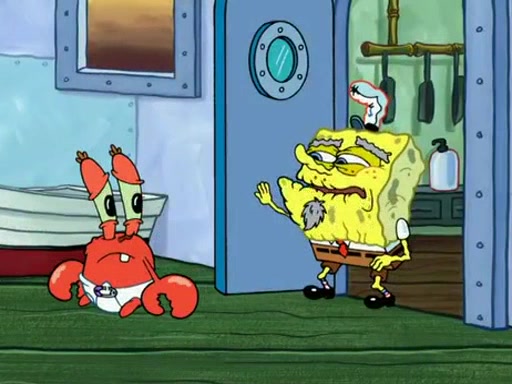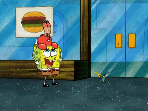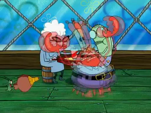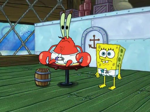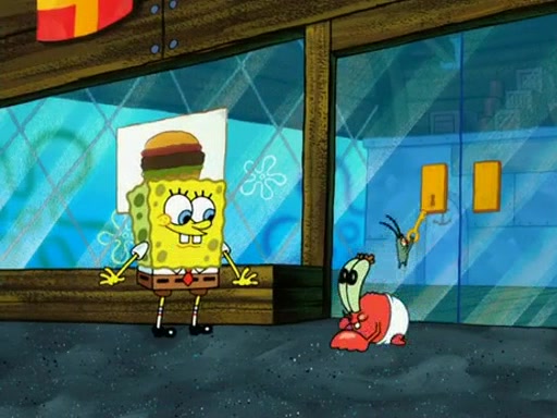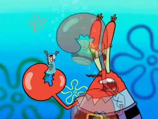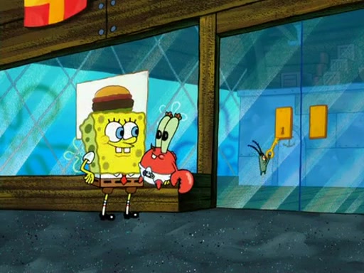 Meanwhile, Plankton sprays Baby Krabs and SpongeBob but Mr. Krabs is now an adult and SpongeBob is a baby. Plankton squirts SpongeBob and he is now an adult again. The same thing happens again, and Plankton thinks it was not right. He gets launched out of the Krusty Krab by Mr. Krabs again. Later, Plankton uses a new spray and sprays Mr. Krabs again. However, Mr. Krabs is now elderly, much to Plankton's dismay, thinking it was a baby at first.