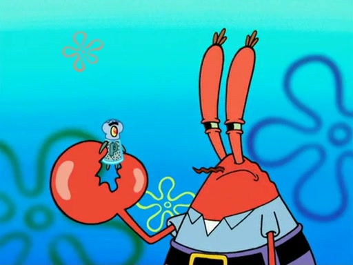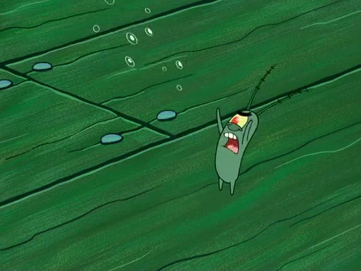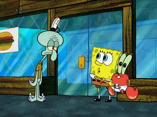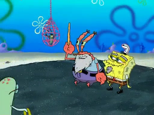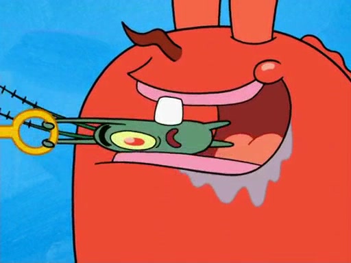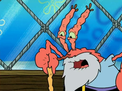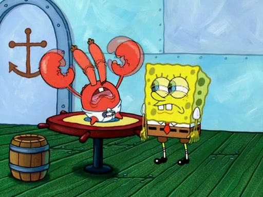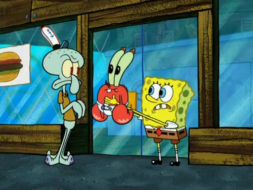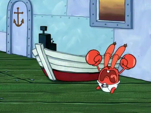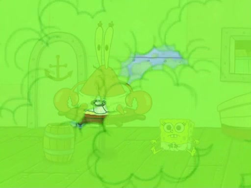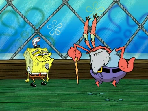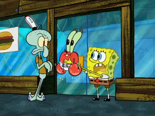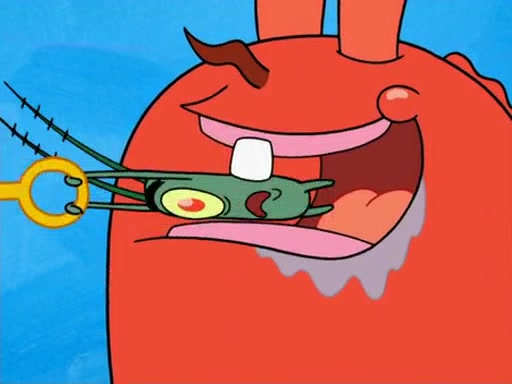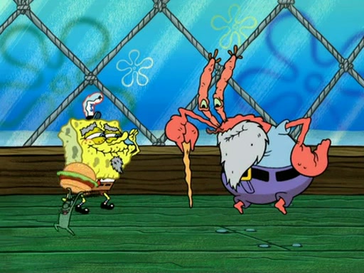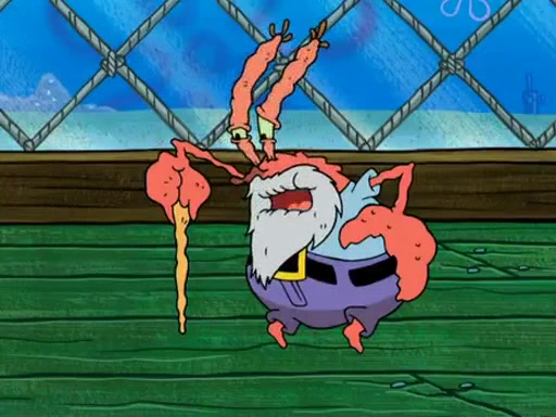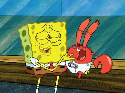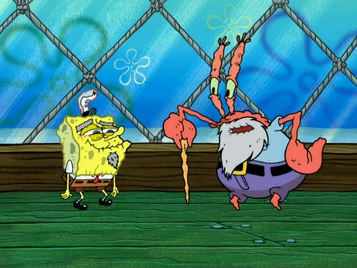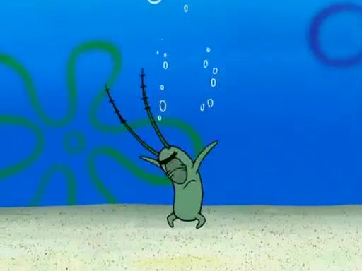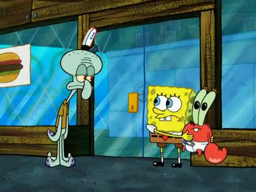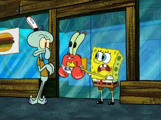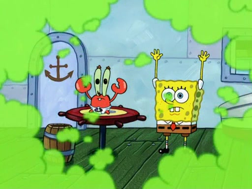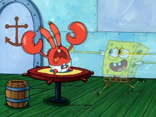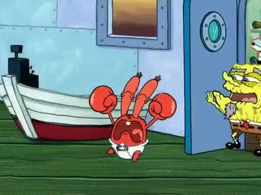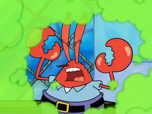 Meanwhile, Plankton sprays Baby Krabs and SpongeBob but Mr. Krabs is now an adult and SpongeBob is a baby. Plankton squirts SpongeBob and he is now an adult again. The same thing happens again, and Plankton thinks it was not right. He gets launched out of the Krusty Krab by Mr. Krabs again. Later, Plankton uses a new spray and sprays Mr. Krabs again. However, Mr. Krabs is now elderly, much to Plankton's dismay, thinking it was a baby at first.