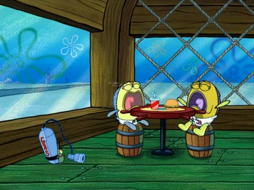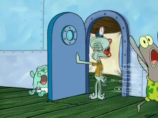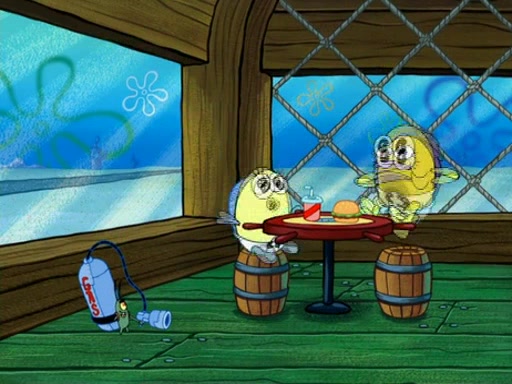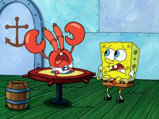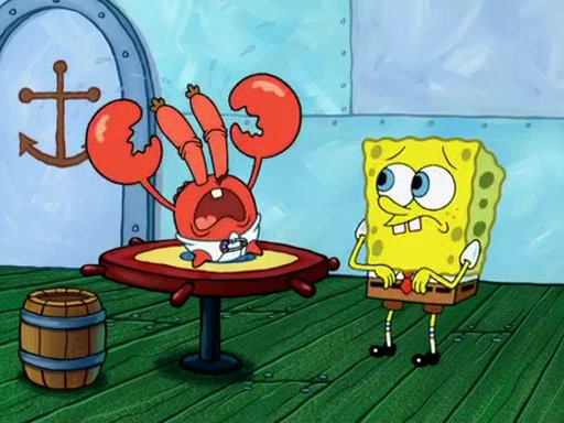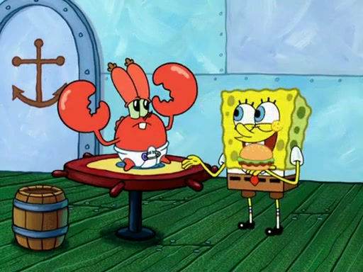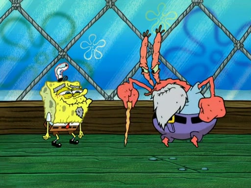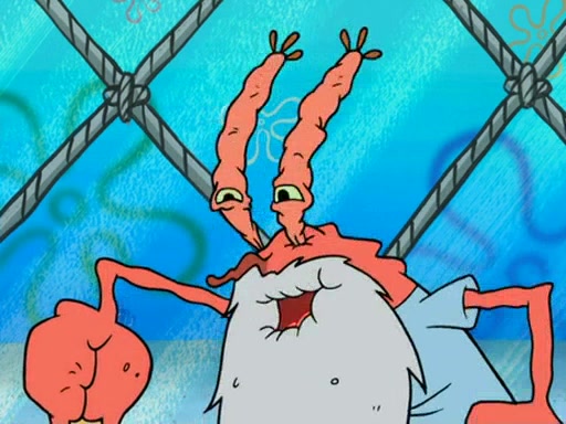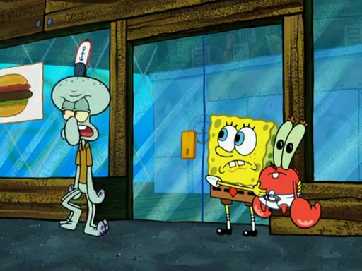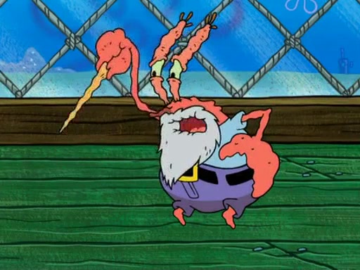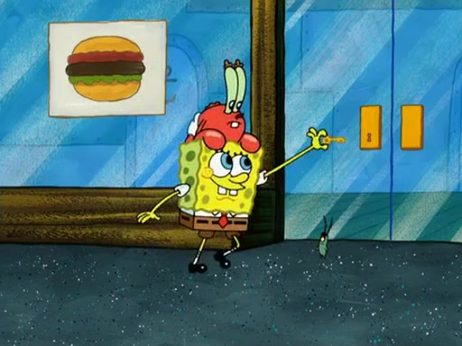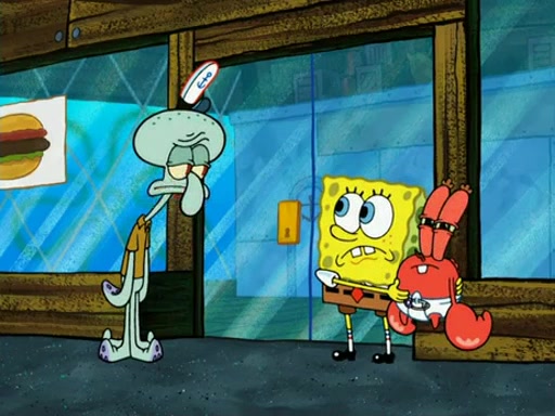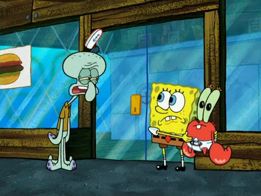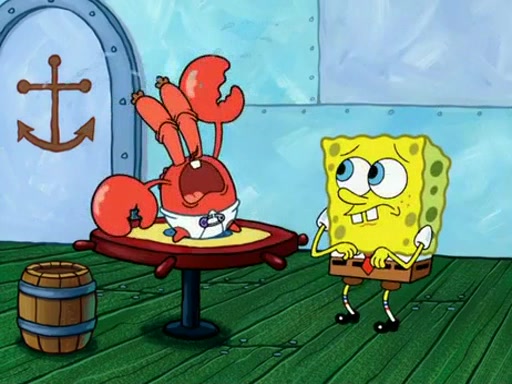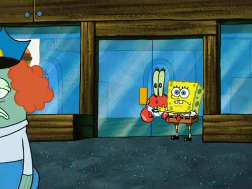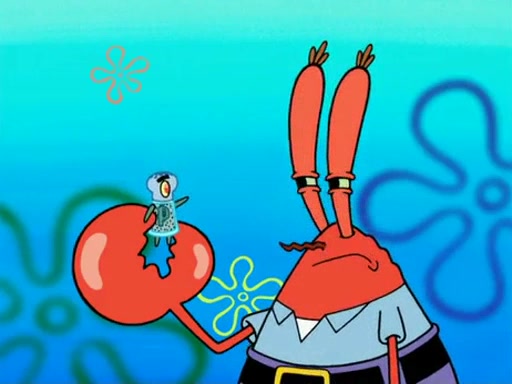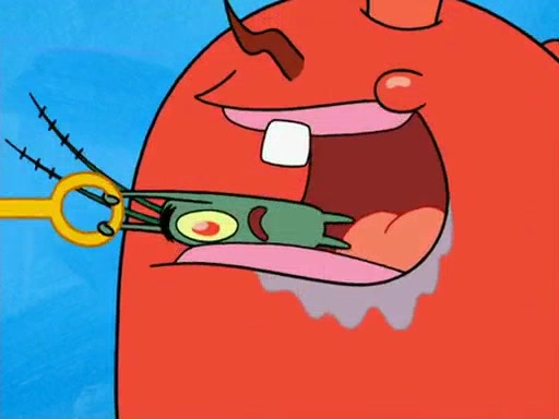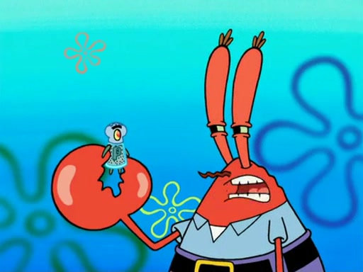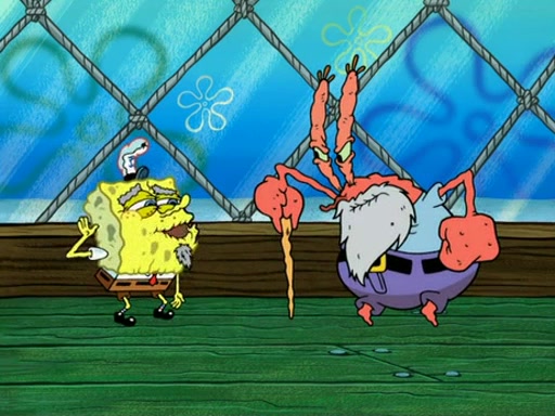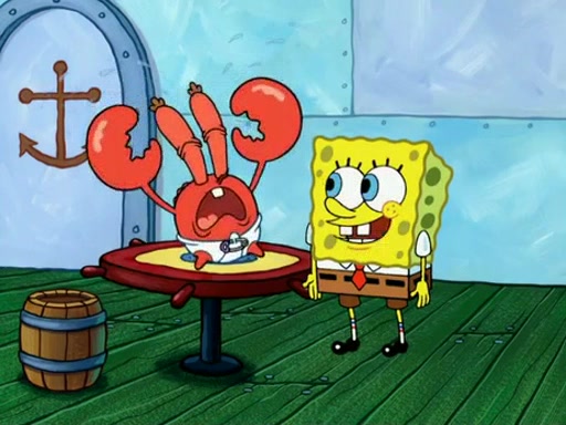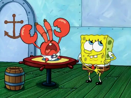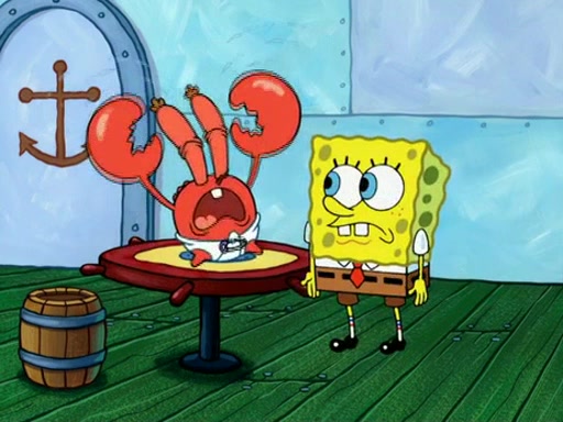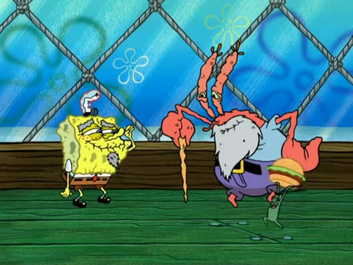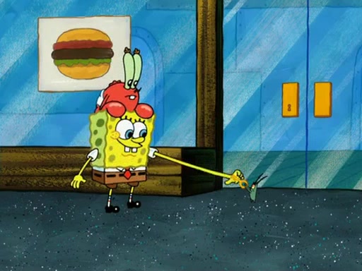 Meanwhile, Plankton sprays Baby Krabs and SpongeBob but Mr. Krabs is now an adult and SpongeBob is a baby. Plankton squirts SpongeBob and he is now an adult again. The same thing happens again, and Plankton thinks it was not right. He gets launched out of the Krusty Krab by Mr. Krabs again. Later, Plankton uses a new spray and sprays Mr. Krabs again. However, Mr. Krabs is now elderly, much to Plankton's dismay, thinking it was a baby at first.