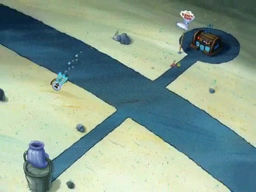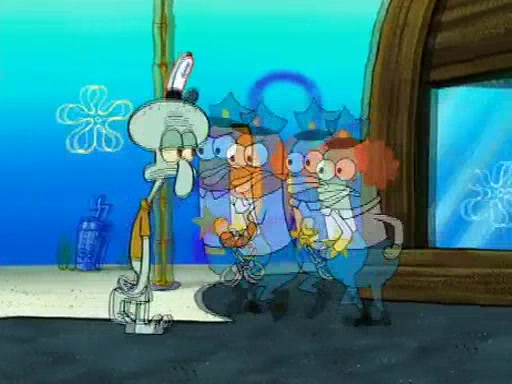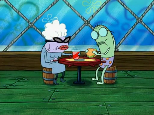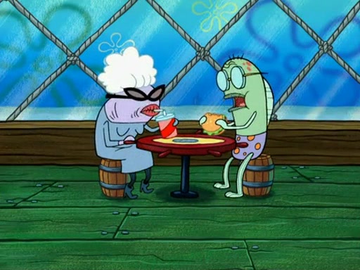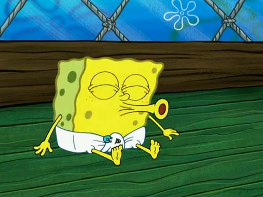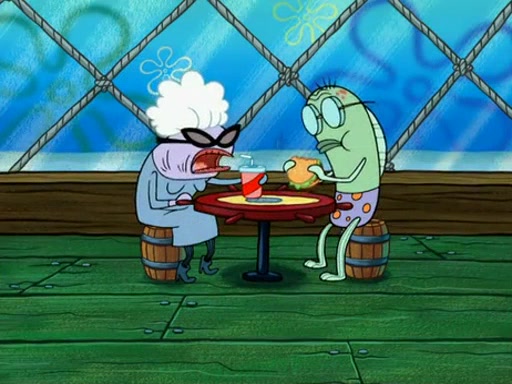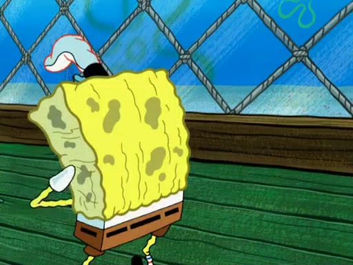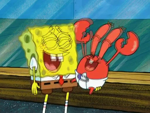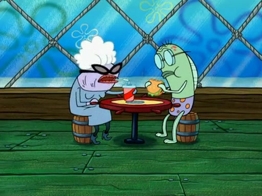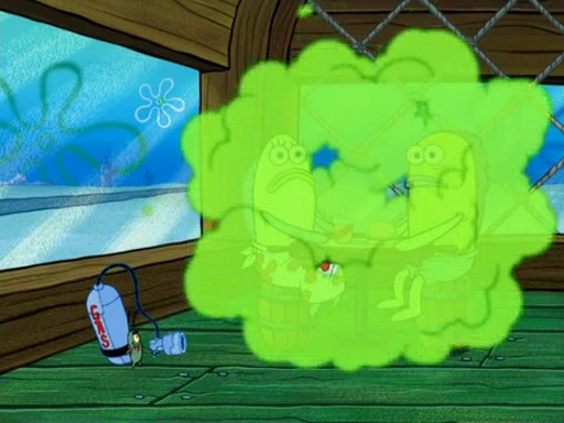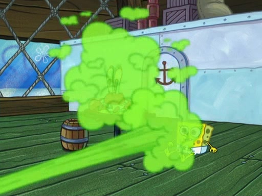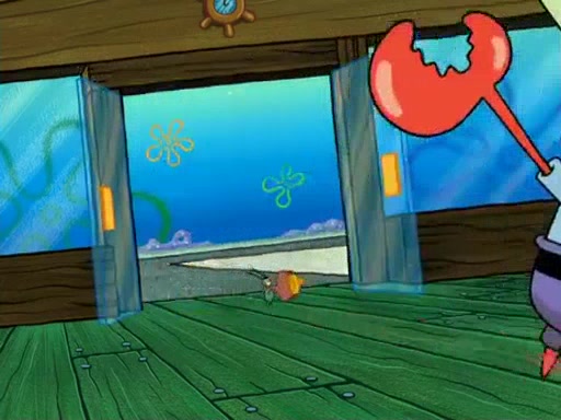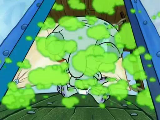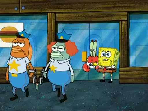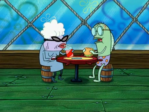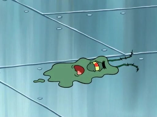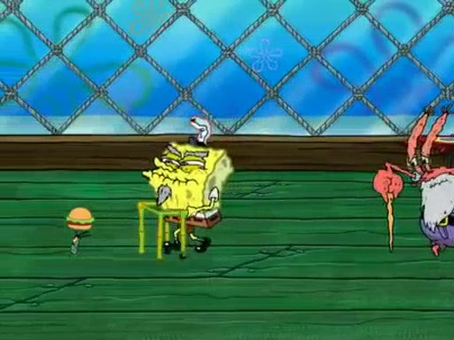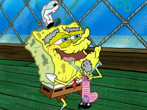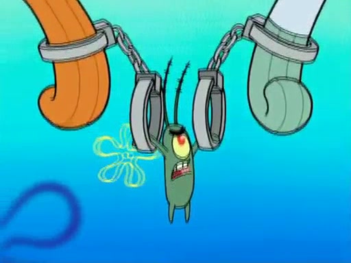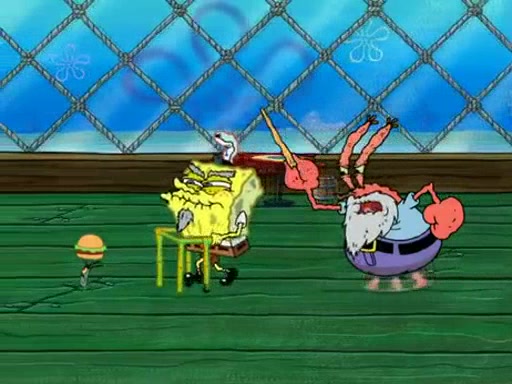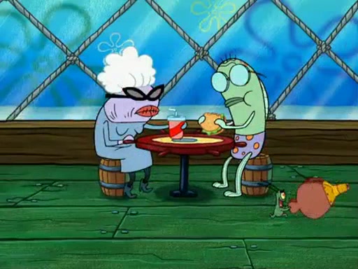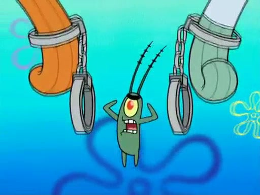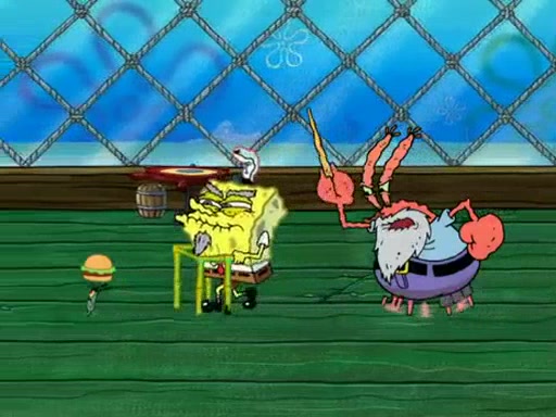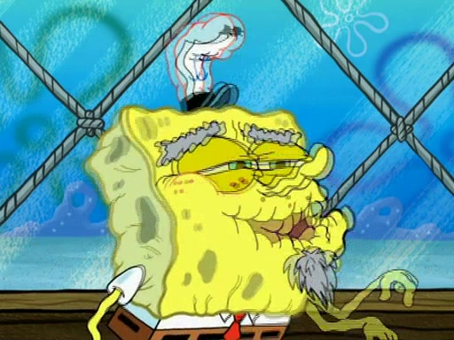Soon, SpongeBob appears out of nowhere and says a speech about caring for Senior Citizens. However, Plankton sprays him as well. Then, he realizes that this was Senior Citizen Spray, but then says that they cannot catch him. SpongeBob and Mr. Krabs then trap Plankton by knitting a net, getting hit one by one by senior citizens.