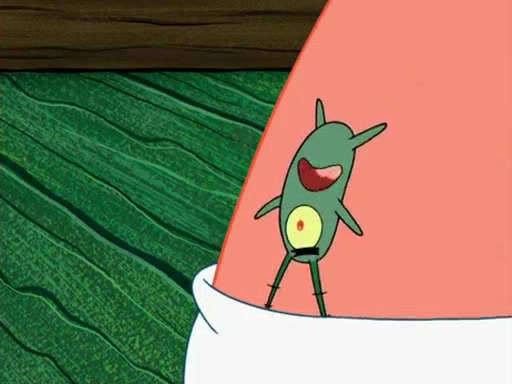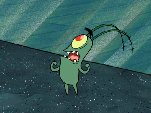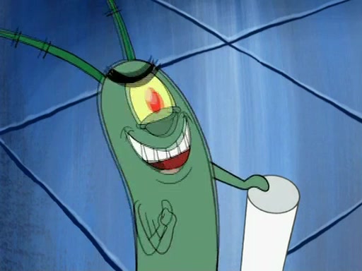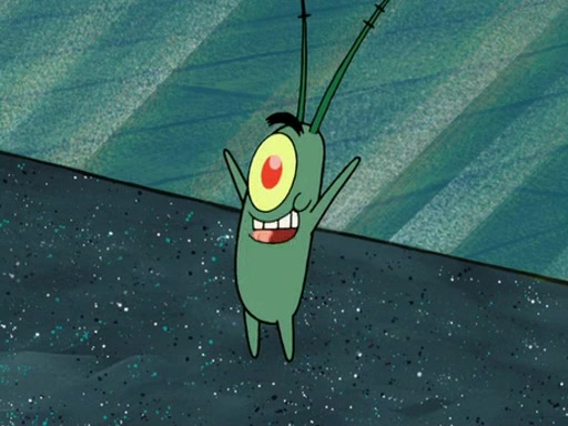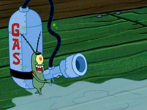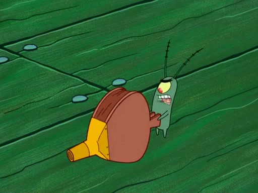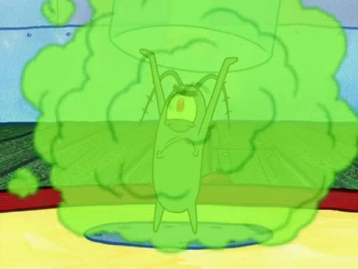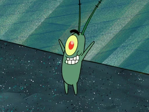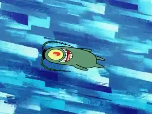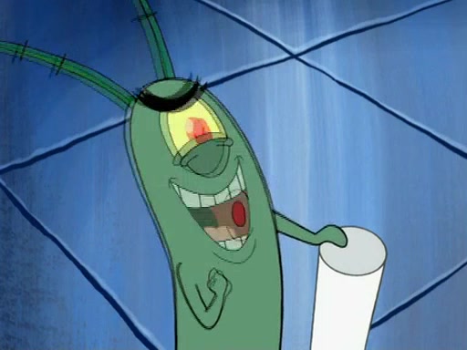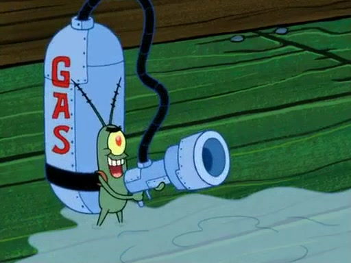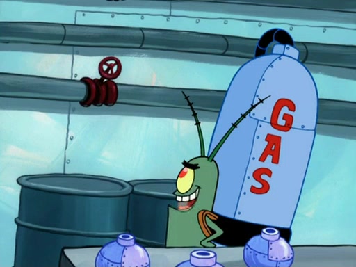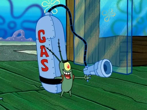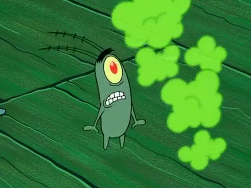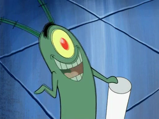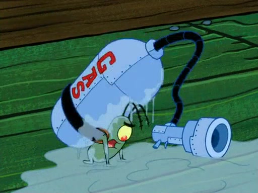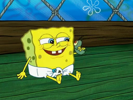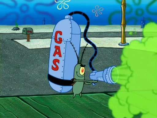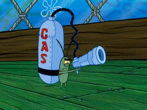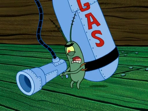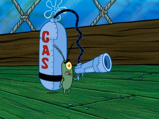 Baby SpongeBob then bashes the Goo Goo Gas canister, much to Plankton's dismay. But, Baby SpongeBob accidentally playing with the gas and flies in the air, turning Plankton into a microscopic baby. In the end of the episode, Plankton says "Ahem, Momma's evil little genius needs a diaper!"
