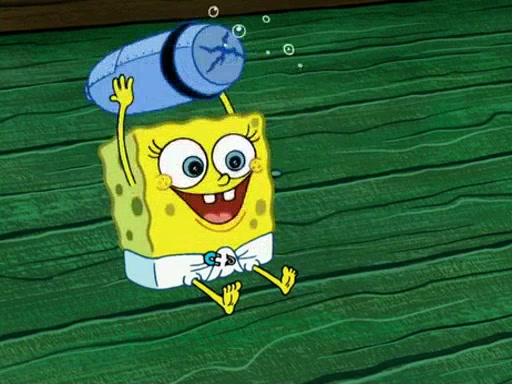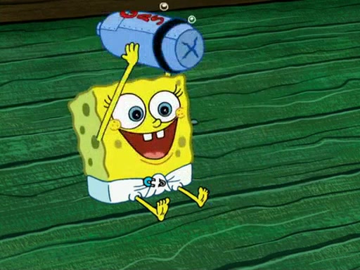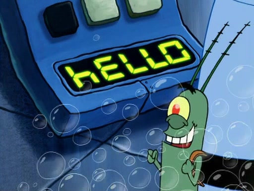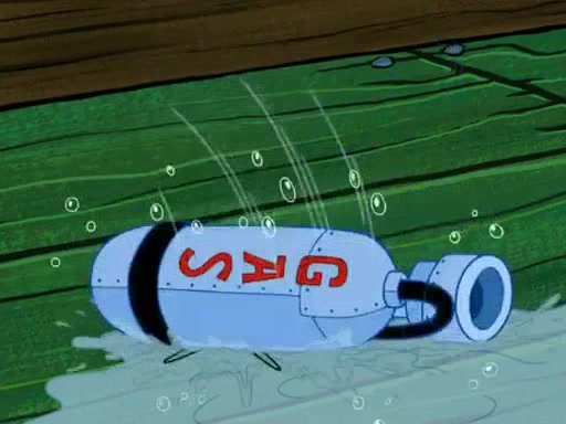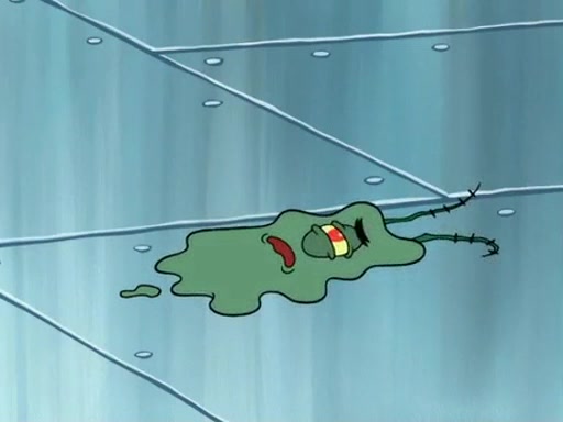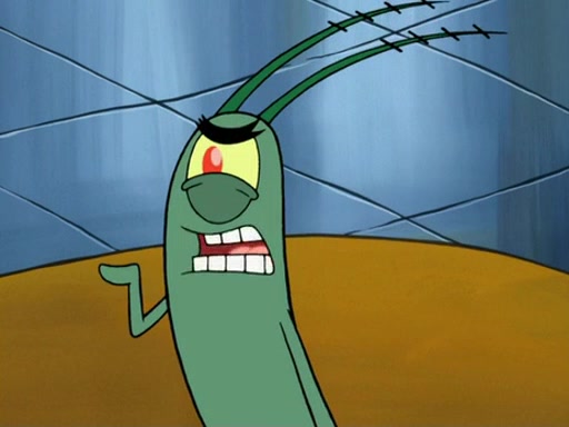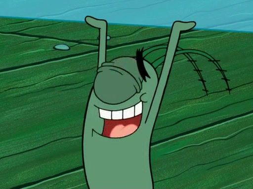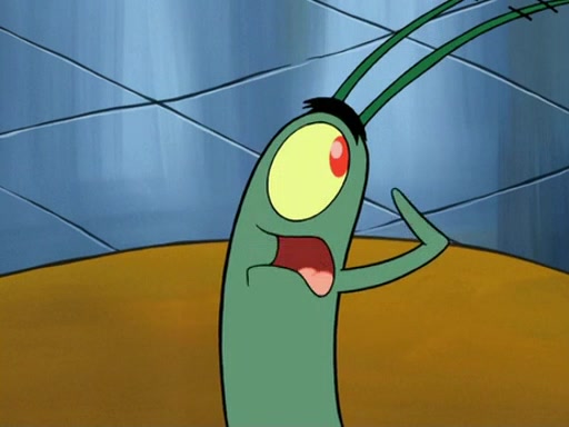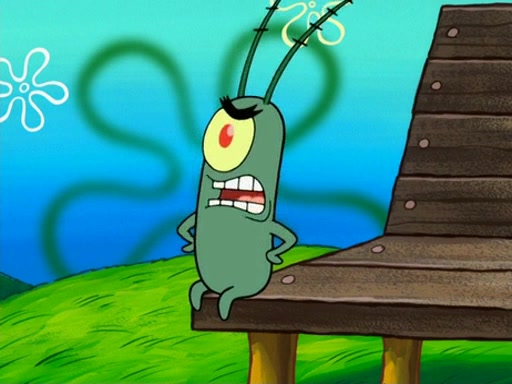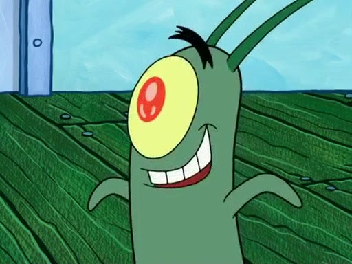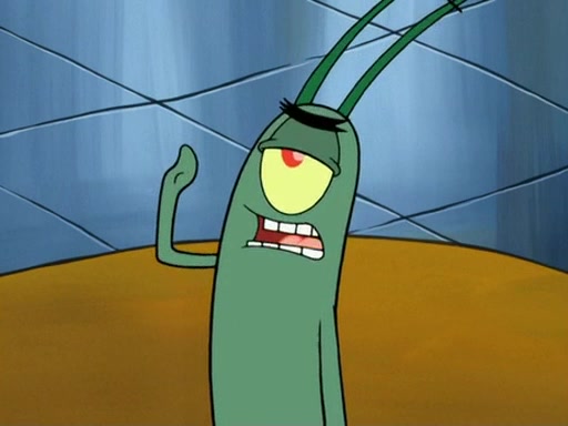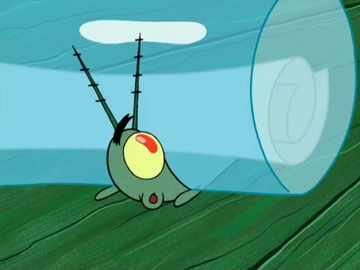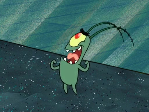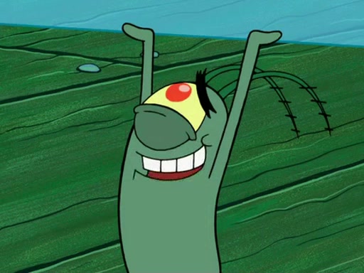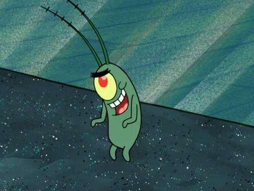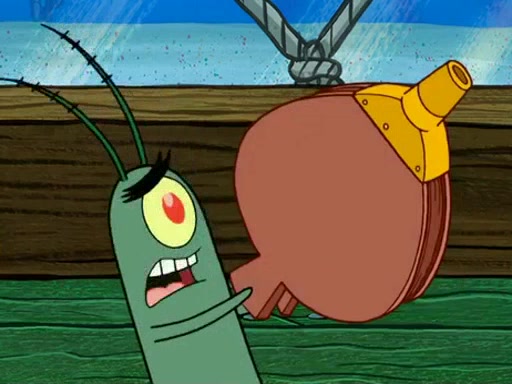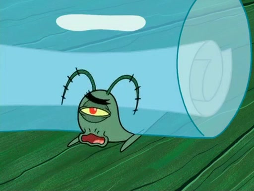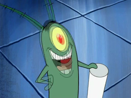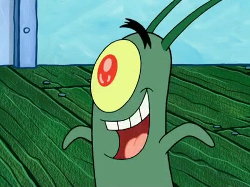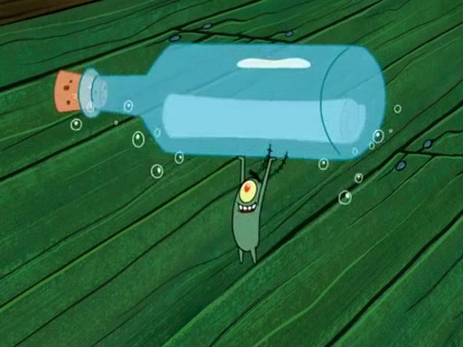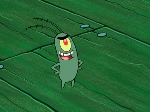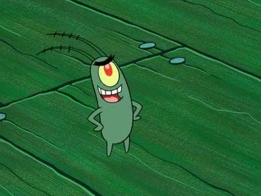Baby SpongeBob then bashes the Goo Goo Gas canister, much to Plankton's dismay. But, Baby SpongeBob accidentally playing with the gas and flies in the air, turning Plankton into a microscopic baby. In the end of the episode, Plankton says "Ahem, Momma's evil little genius needs a diaper!"