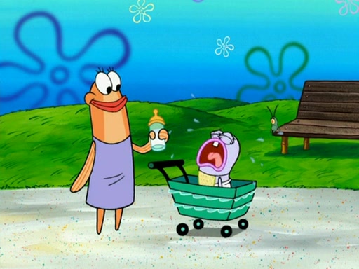 The scene starts with Plankton (disguised as a pepper shaker) taking a Krabby Patty but is easily caught by Mr. Krabs. As he is lamenting his failure on a bench in the park, Plankton then hears a woman saying that she can take her baby's milk away from him and he cannot do a thing about it. This makes Plankton realize he will turn Mr. Krabs into a baby.