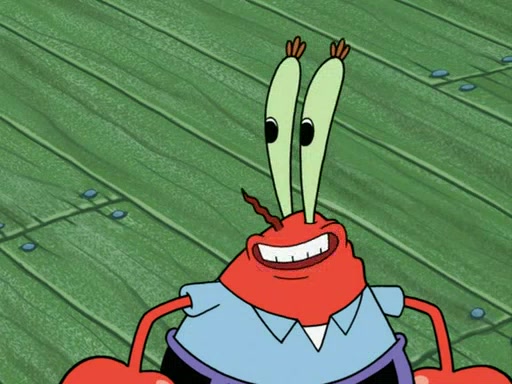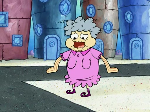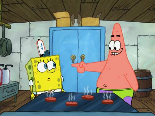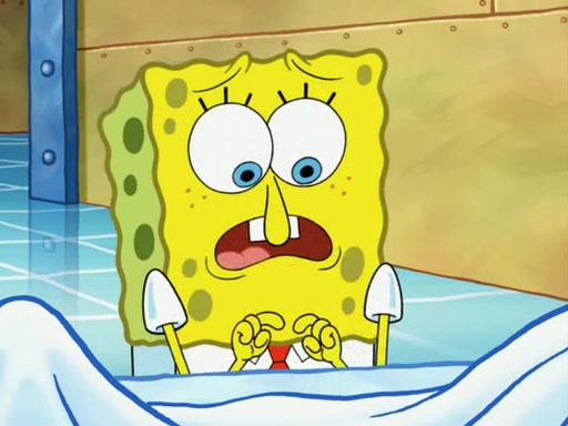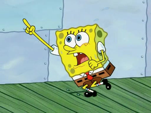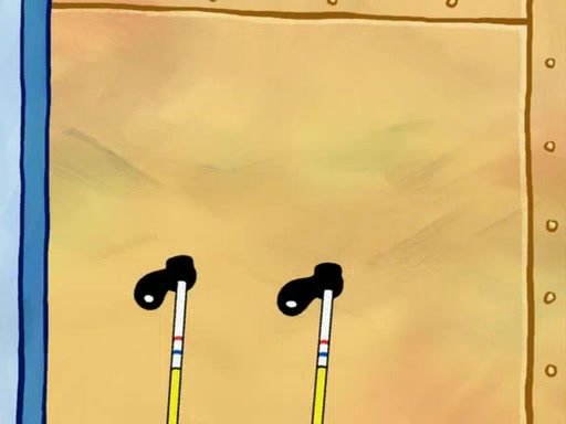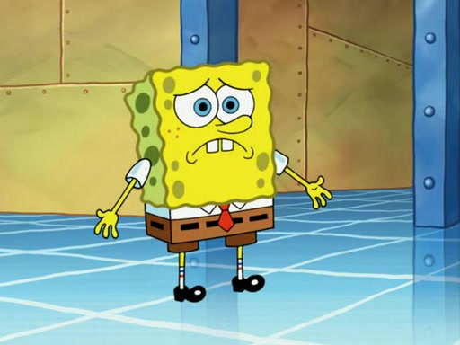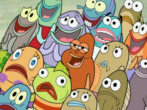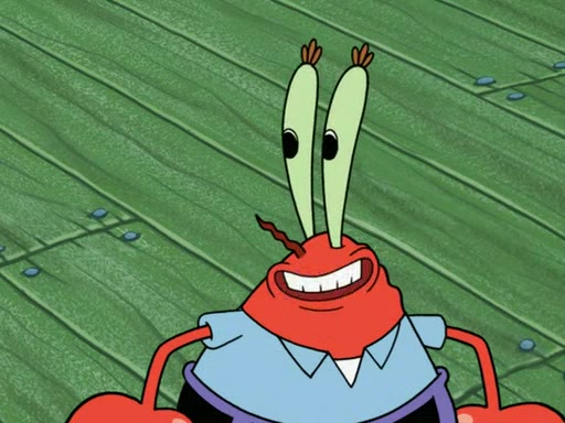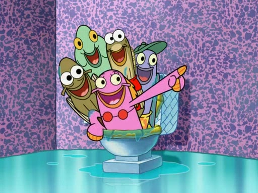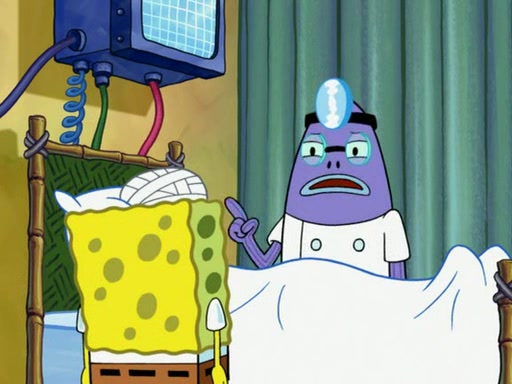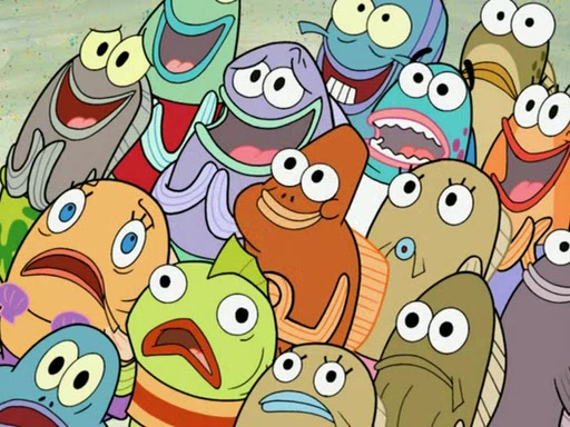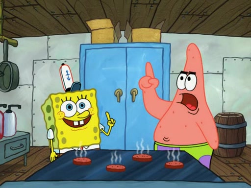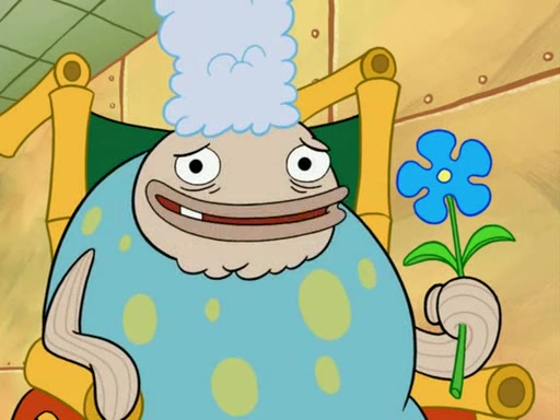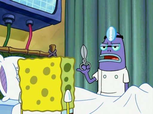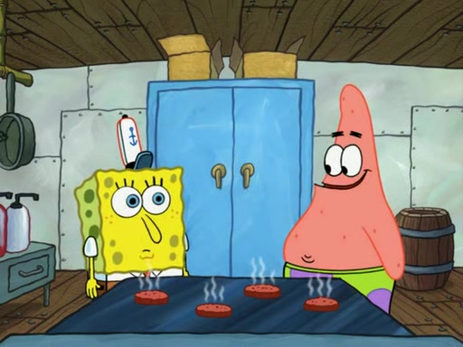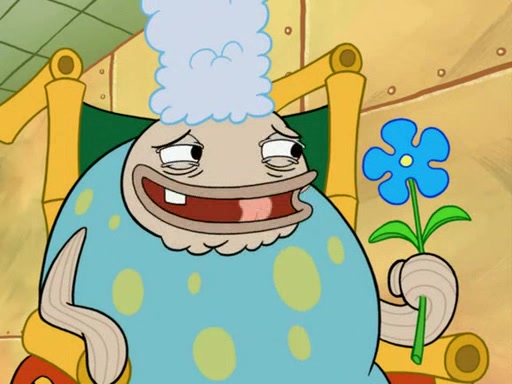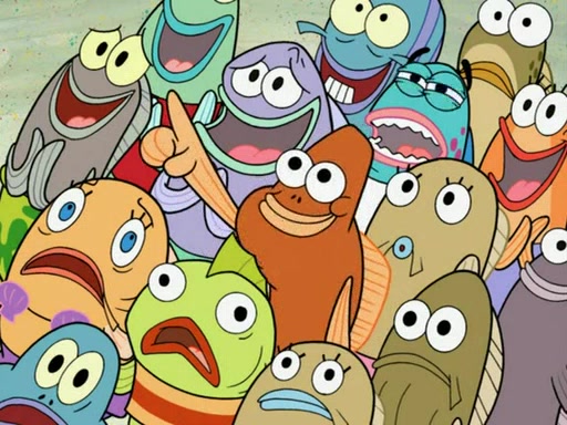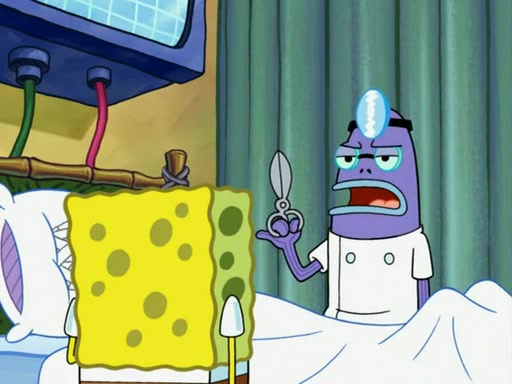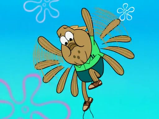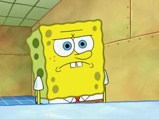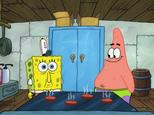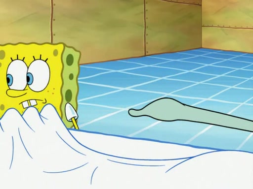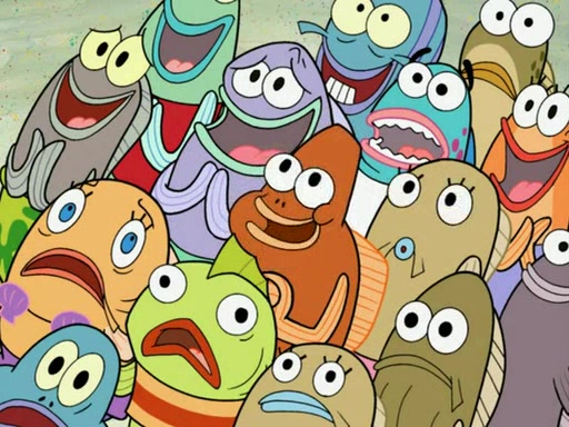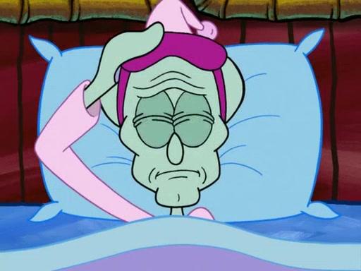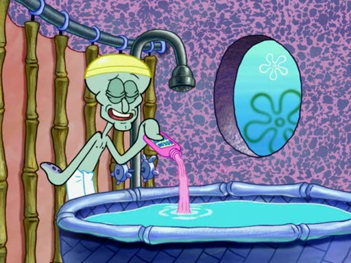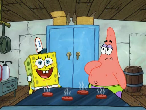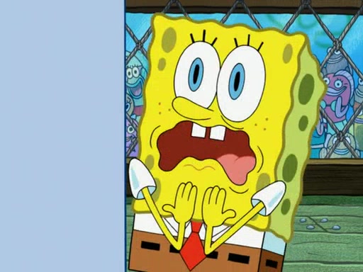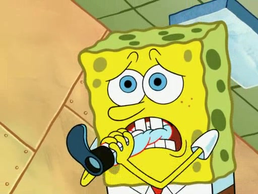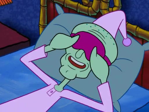 But all that changes when Squidward's fans go crazy and taking his stuff and won't leave him alone. Everything is too much for Squidward so he goes to SpongeBob for help. Squidward wants to become his normal self, so he and SpongeBob races to Krusty Krab with the crowd following them. Mr. Krabs becomes overjoyed to see everyone at the entrance, and begins to name all the prices. While he does that, Squidward tells SpongeBob to slam the door against his face in order to make him normal again. SpongeBob doesn't want to do it, but Squidward threatens to hurt SpongeBob if he doesn't hurt him. So he begins to slam the door against Squidward's face repeatedly, but it only makes Squidward even more handsome. Suddenly, the flying fish's other bowling shoe, falls out of the top, and SpongeBob, who was alarmed by it, pushes Squidward out of the way. SpongeBob's push sends Squidward flying dramatically and causes him to hit a pole, while the shoe just bounces off of SpongeBob's head. The blow from the pole causes Squidward's face to become normal again. The crowd, who is disappointed to see Squidward not handsome anymore, begins to walk away miserably, but Mr. Krabs, who is unhappy to see his beloved customers go away, tries to return Squidward's handsomeness by slamming the door repeatedly against his face.