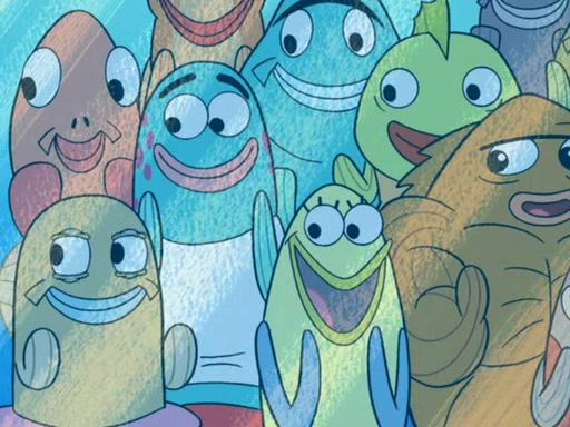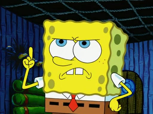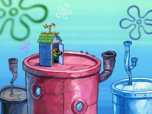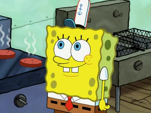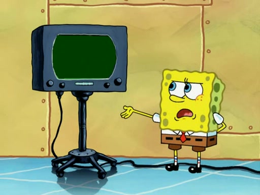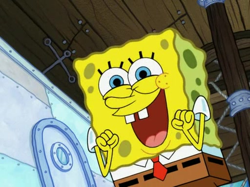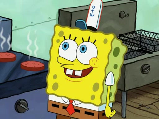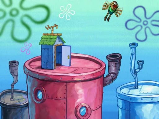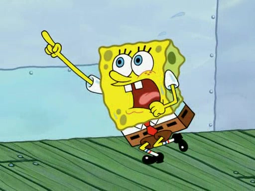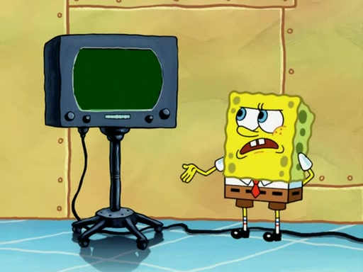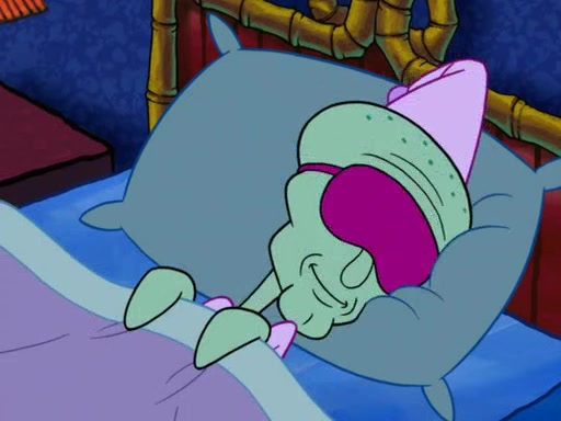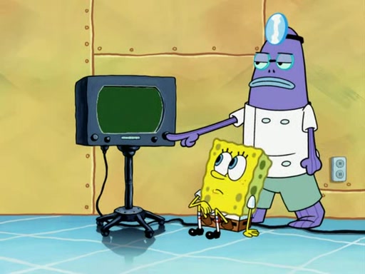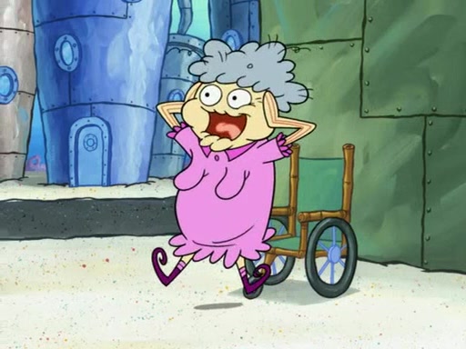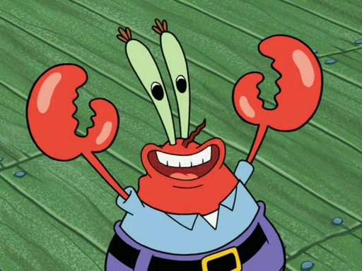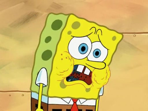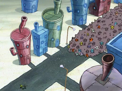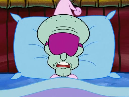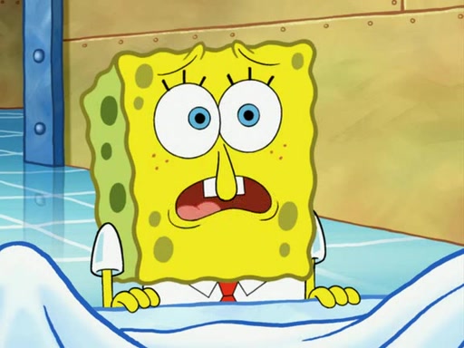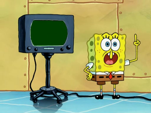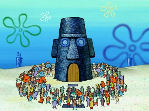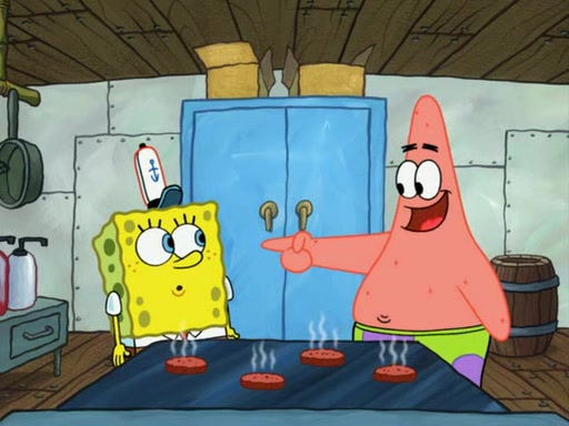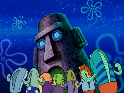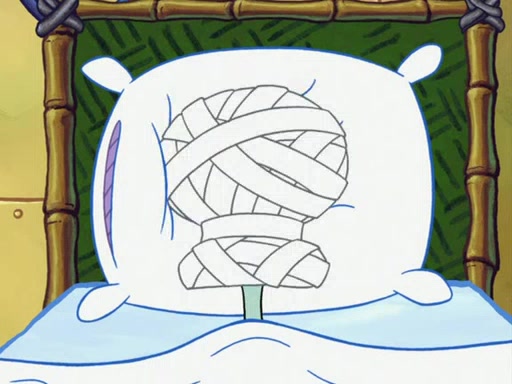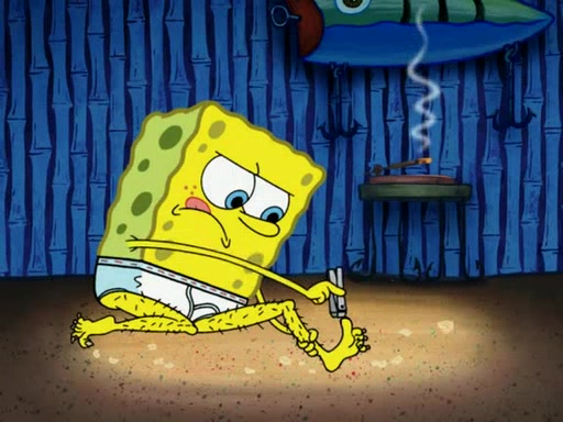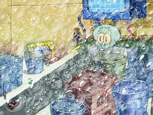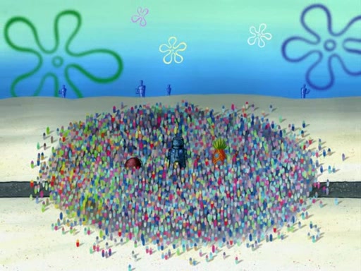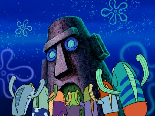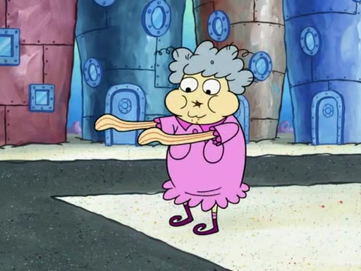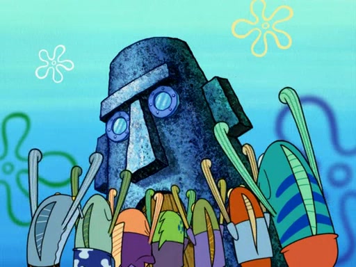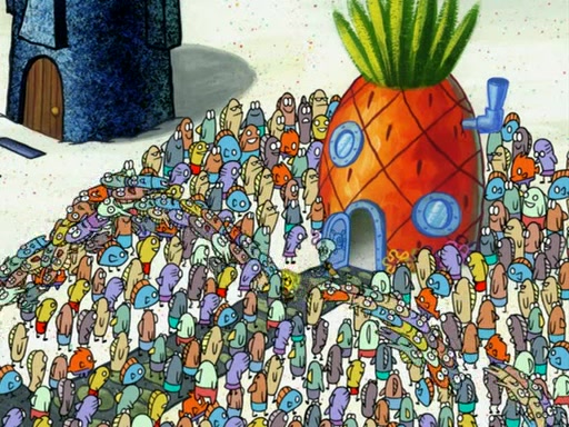 But all that changes when Squidward's fans go crazy and taking his stuff and won't leave him alone. Everything is too much for Squidward so he goes to SpongeBob for help. Squidward wants to become his normal self, so he and SpongeBob races to Krusty Krab with the crowd following them. Mr. Krabs becomes overjoyed to see everyone at the entrance, and begins to name all the prices. While he does that, Squidward tells SpongeBob to slam the door against his face in order to make him normal again. SpongeBob doesn't want to do it, but Squidward threatens to hurt SpongeBob if he doesn't hurt him. So he begins to slam the door against Squidward's face repeatedly, but it only makes Squidward even more handsome. Suddenly, the flying fish's other bowling shoe, falls out of the top, and SpongeBob, who was alarmed by it, pushes Squidward out of the way. SpongeBob's push sends Squidward flying dramatically and causes him to hit a pole, while the shoe just bounces off of SpongeBob's head. The blow from the pole causes Squidward's face to become normal again. The crowd, who is disappointed to see Squidward not handsome anymore, begins to walk away miserably, but Mr. Krabs, who is unhappy to see his beloved customers go away, tries to return Squidward's handsomeness by slamming the door repeatedly against his face.