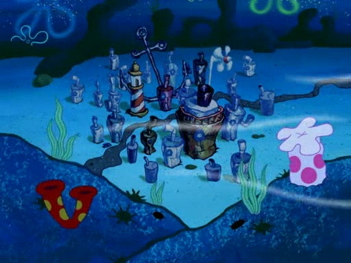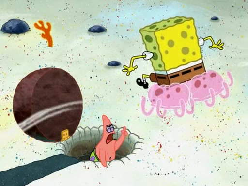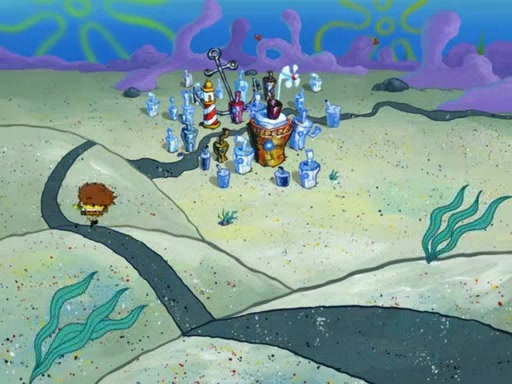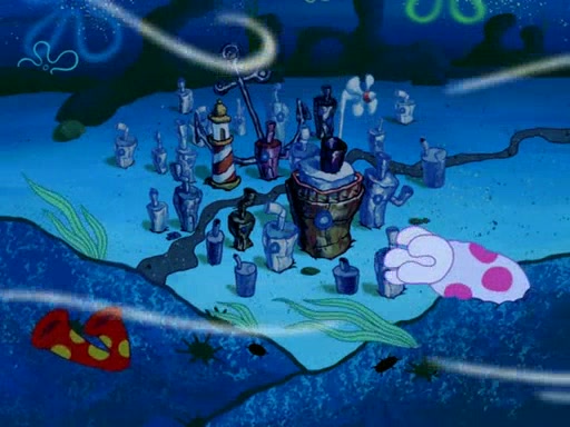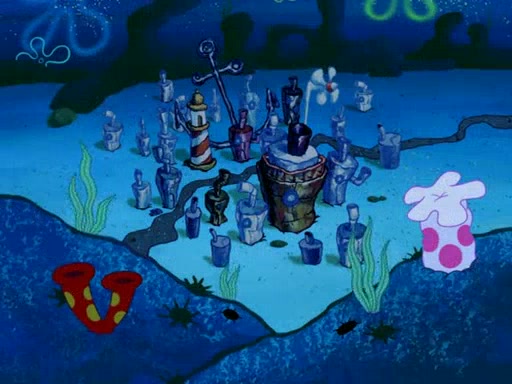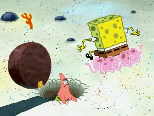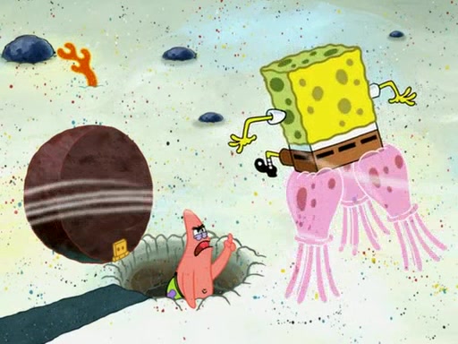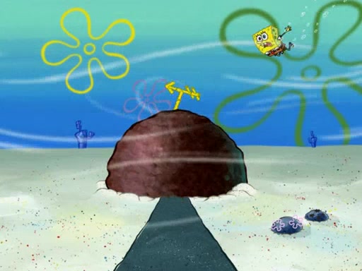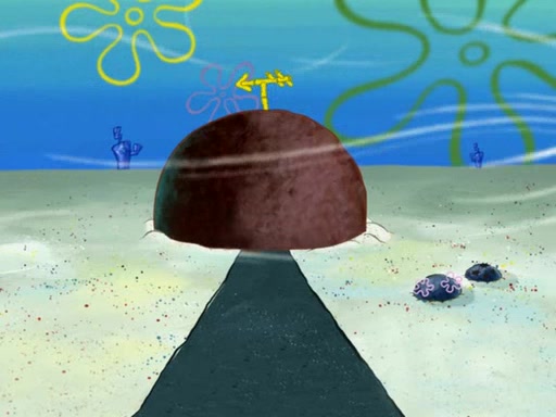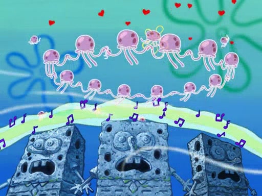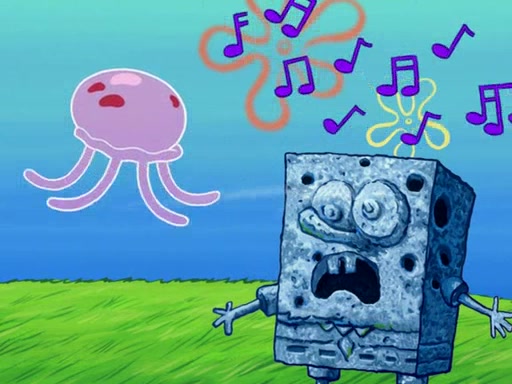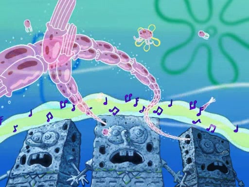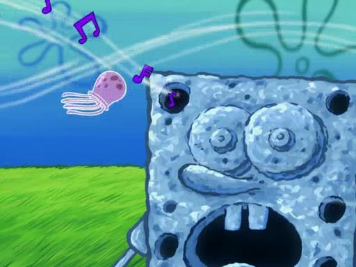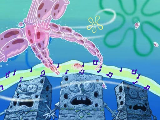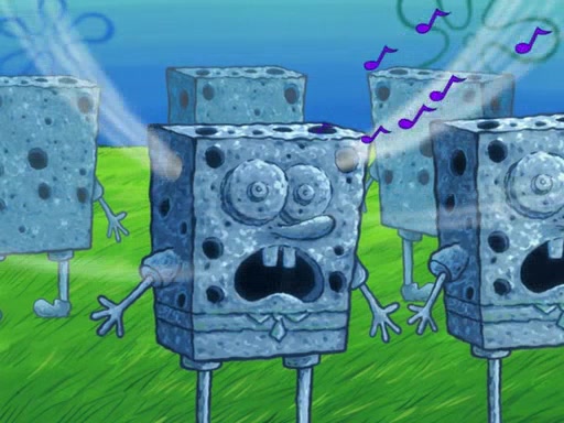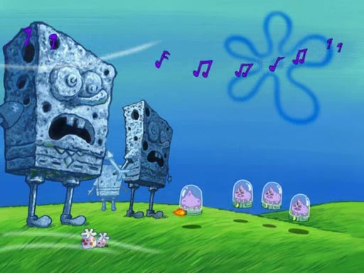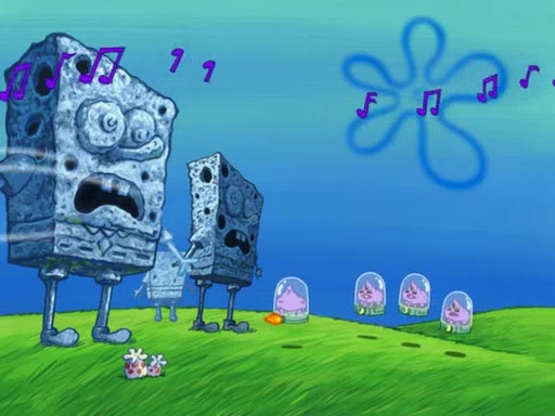 SpongeBob carries the stone replica of himself outside the cave, but the jellyfish end up hating the music produced by the replica. SpongeBob is now worried that he will never be able to go back to Bikini Bottom again. He goes back to the cave, but finally realizes that bigger stones can produce better and louder music than himself.