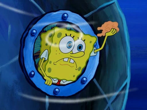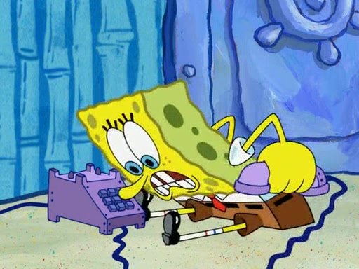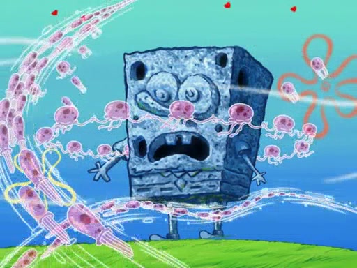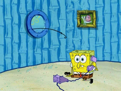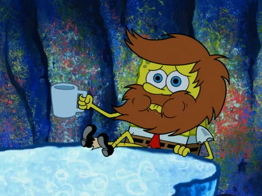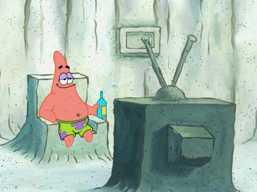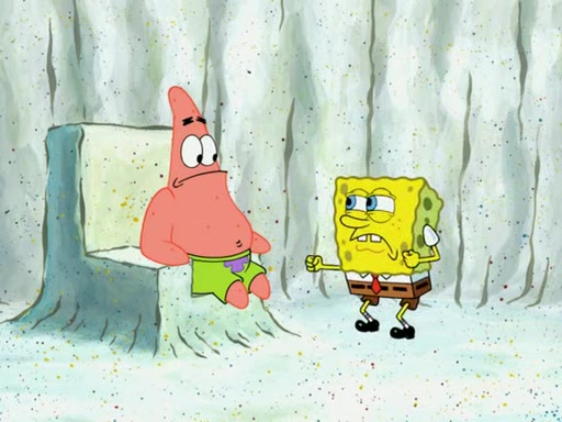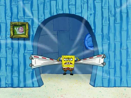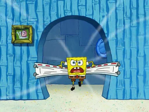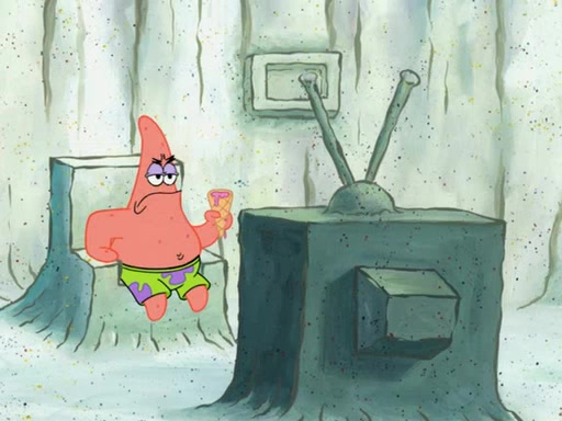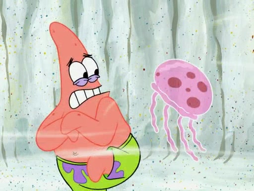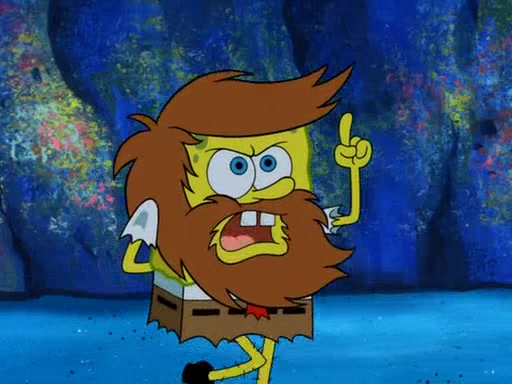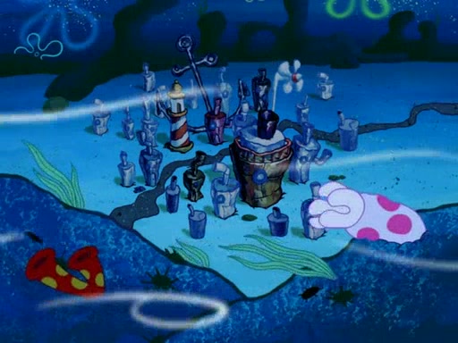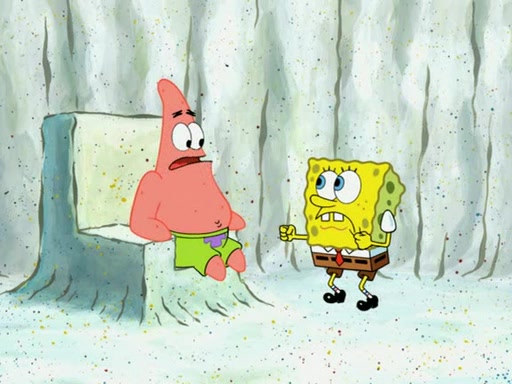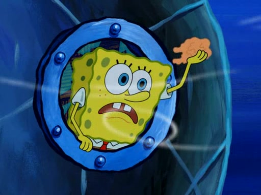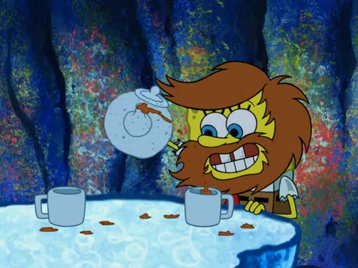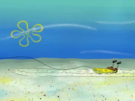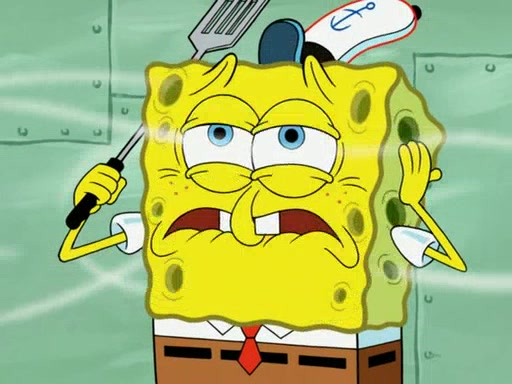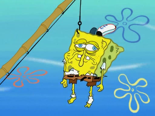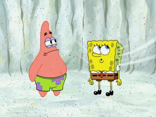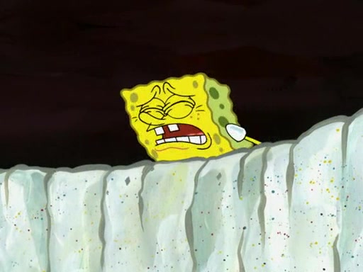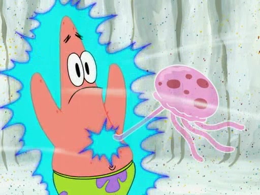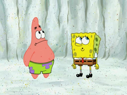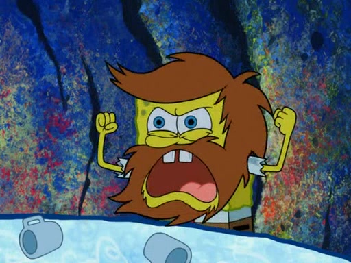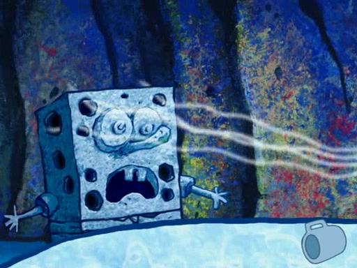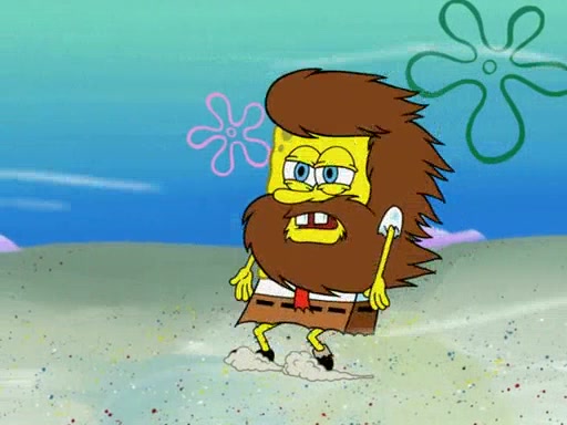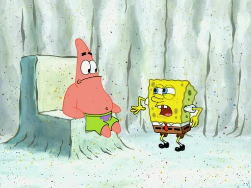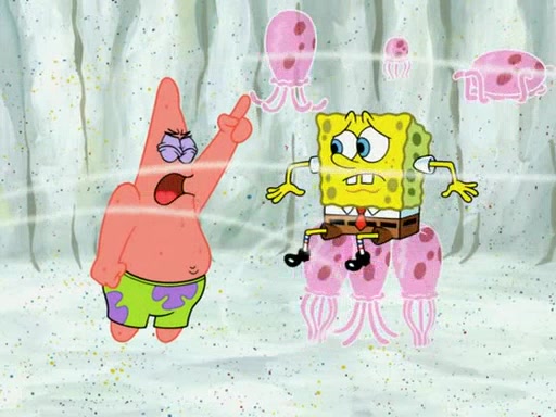 Still being pursued by the swarm of jellyfish, SpongeBob runs to hide in Patrick’s house; however, a jellyfish enters and stings Patrick, making him throw SpongeBob out. Finally, the wind stops, but the jellyfish then begin to sting SpongeBob, forcing him to take refuge in a cave. With that, he starts building a stone replica of himself to alleviate his days of solitude. After a decade, the storm is still there, and SpongeBob had grown a beard and finished the replica. He gives his inanimate companion tea and sugar and talks to it about how the jellyfish keep bothering him due to the music produced when wind blows through his holes. Then, SpongeBob has an idea!