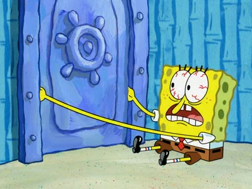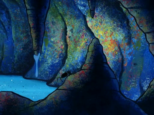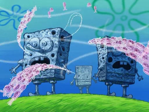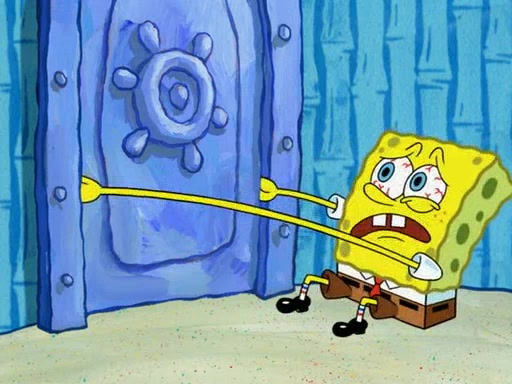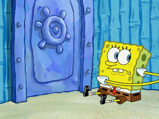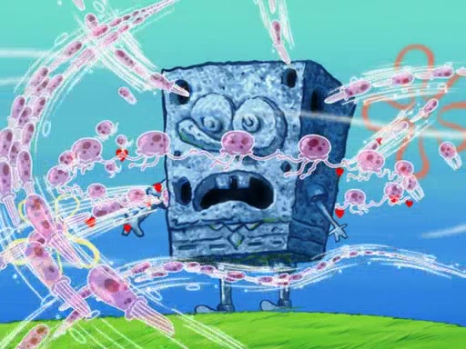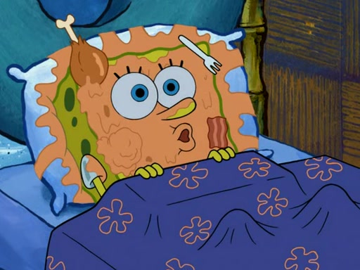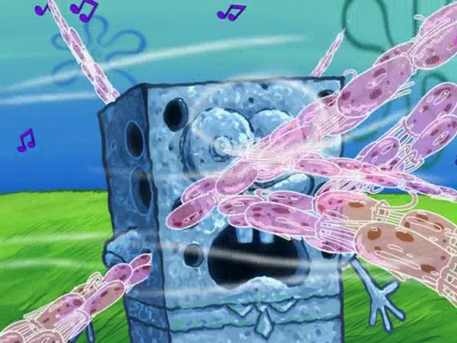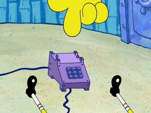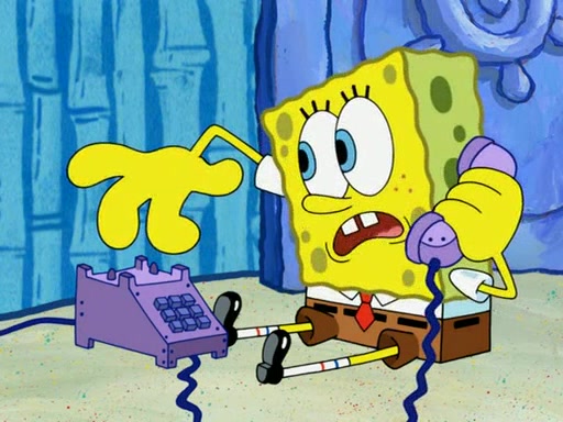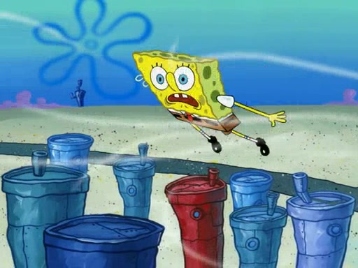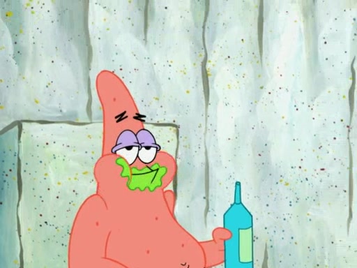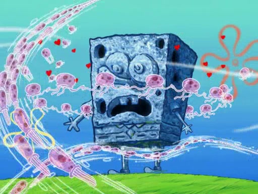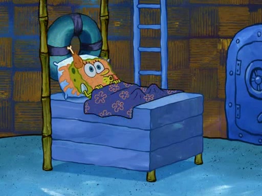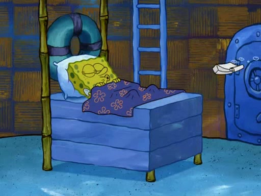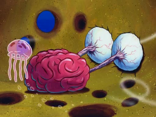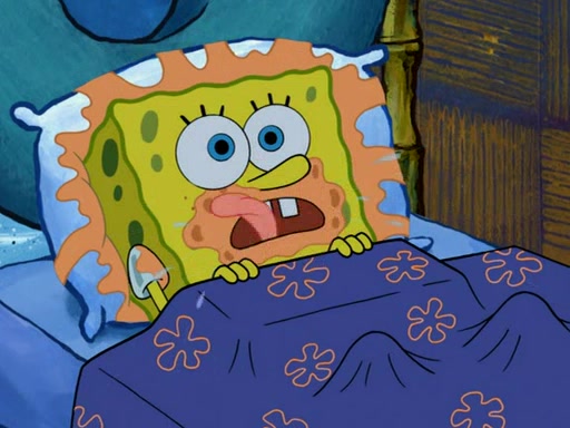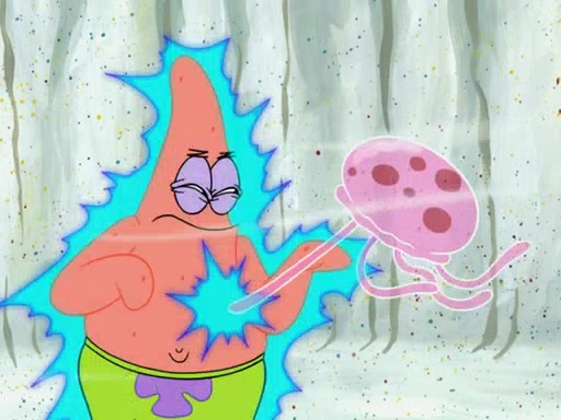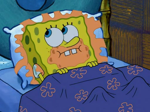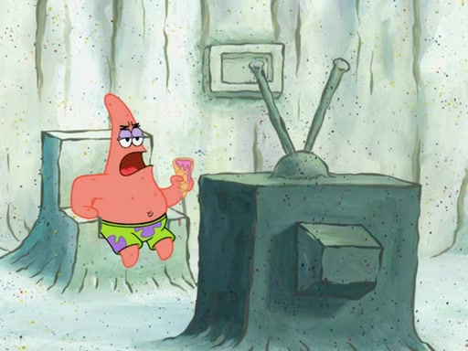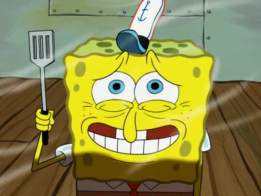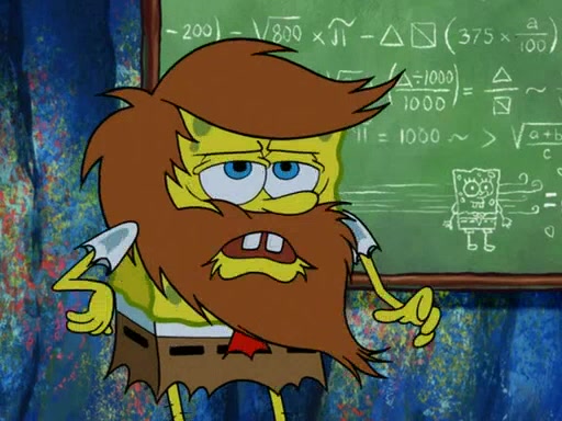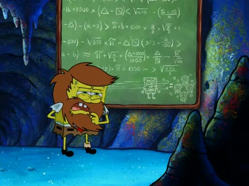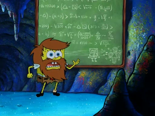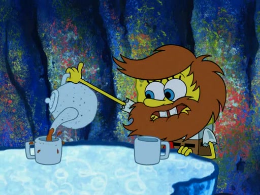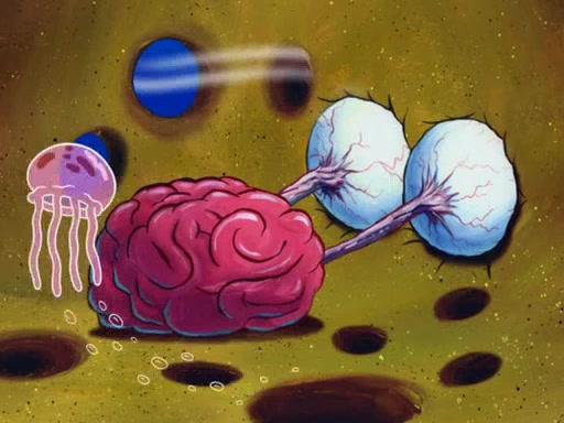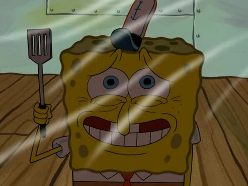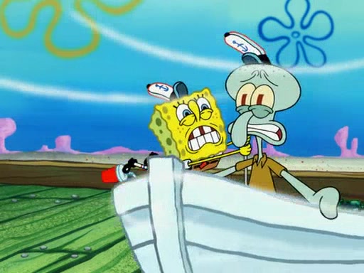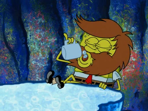 Still being pursued by the swarm of jellyfish, SpongeBob runs to hide in Patrick’s house; however, a jellyfish enters and stings Patrick, making him throw SpongeBob out. Finally, the wind stops, but the jellyfish then begin to sting SpongeBob, forcing him to take refuge in a cave. With that, he starts building a stone replica of himself to alleviate his days of solitude. After a decade, the storm is still there, and SpongeBob had grown a beard and finished the replica. He gives his inanimate companion tea and sugar and talks to it about how the jellyfish keep bothering him due to the music produced when wind blows through his holes. Then, SpongeBob has an idea!