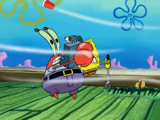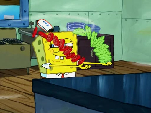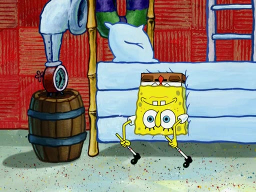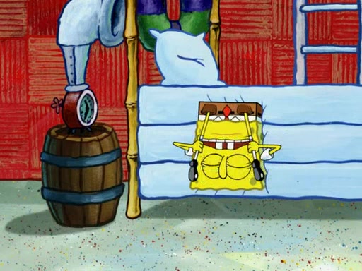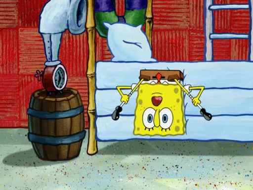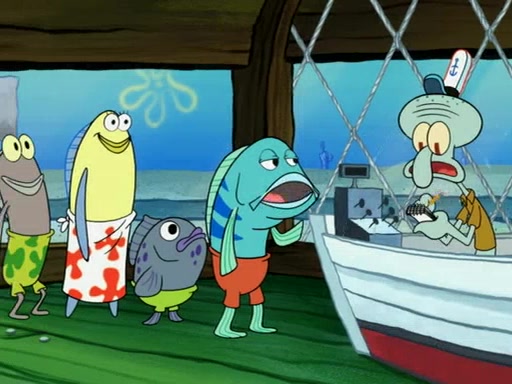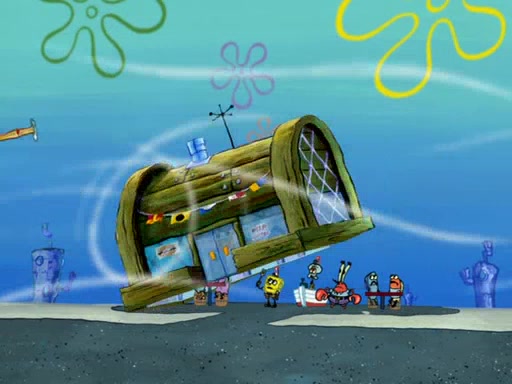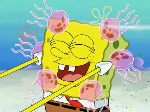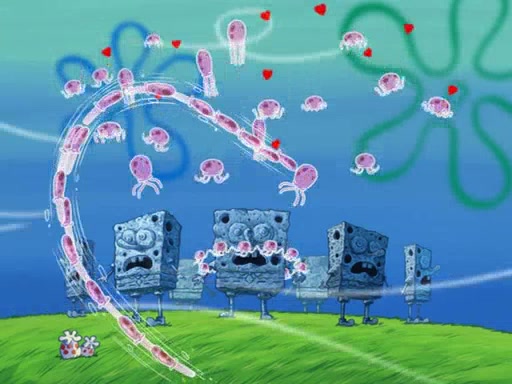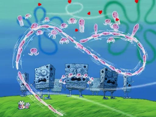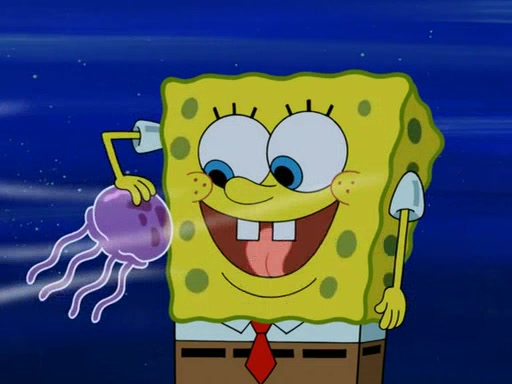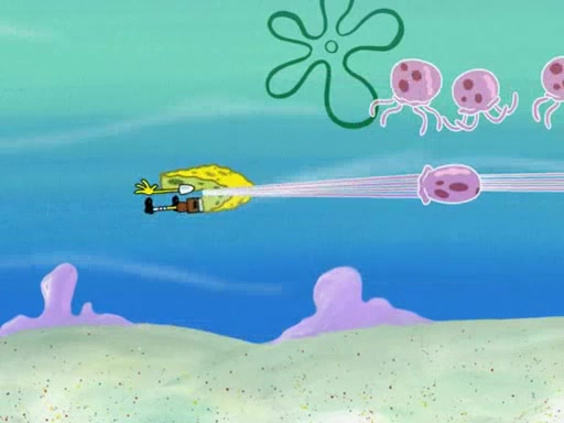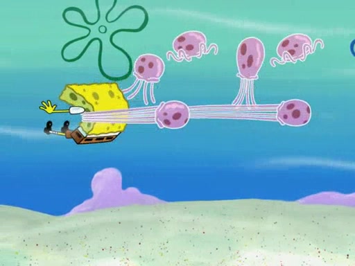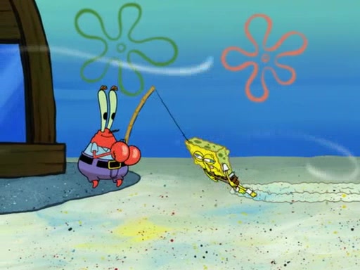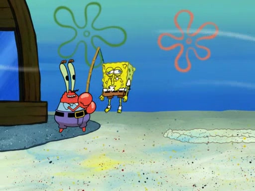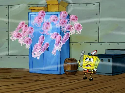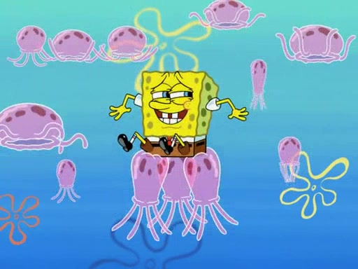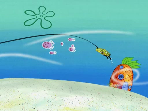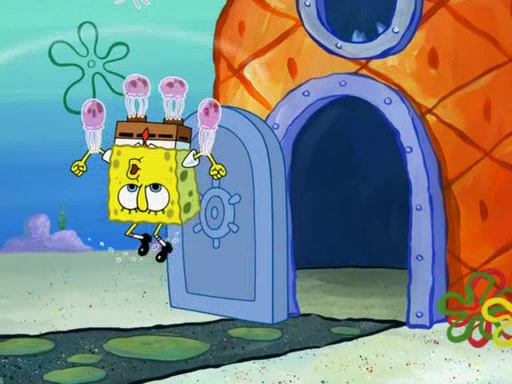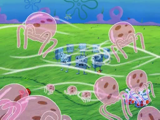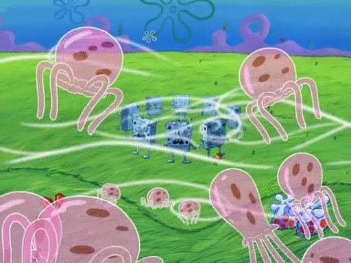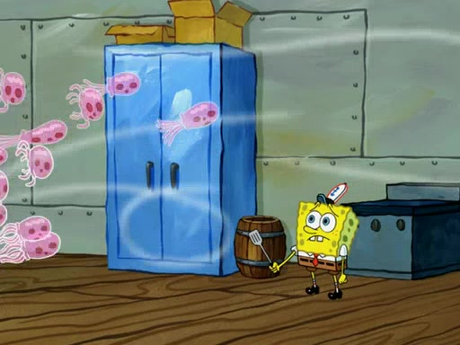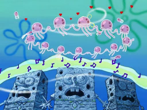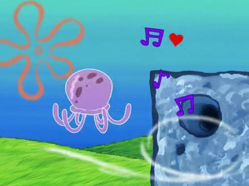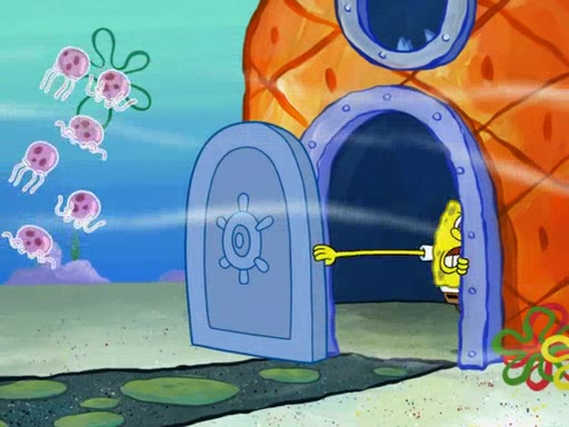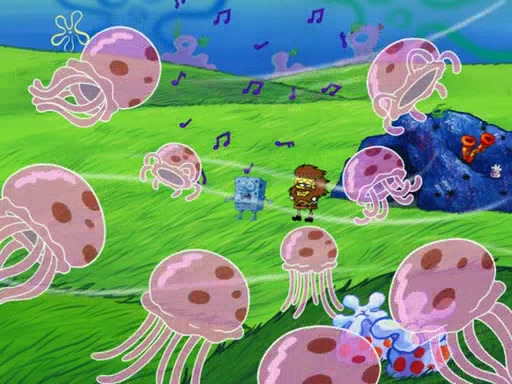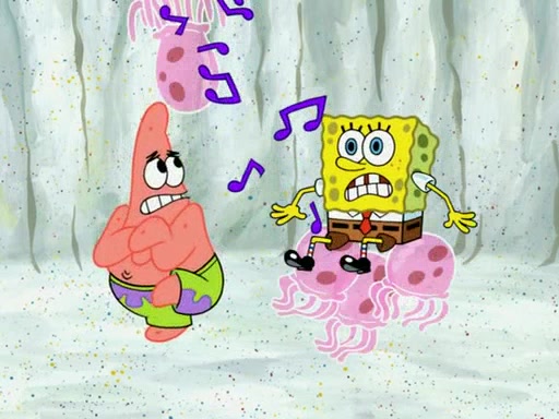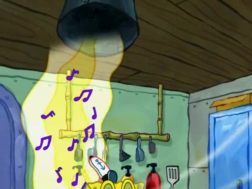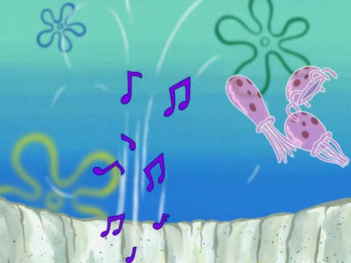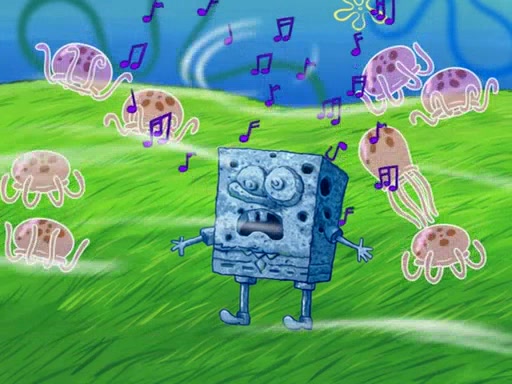 The next morning, SpongeBob tries to go to work, but the jellyfish swarm him, wanting to play. Eventually, Mr. Krabs is forced to bring him in with a fishing rod, and as SpongeBob goes to make Krabby Patties, the window abruptly opens. As the breeze blows through SpongeBob's pores and produces the melodious tune once again, the jellyfish chase him.